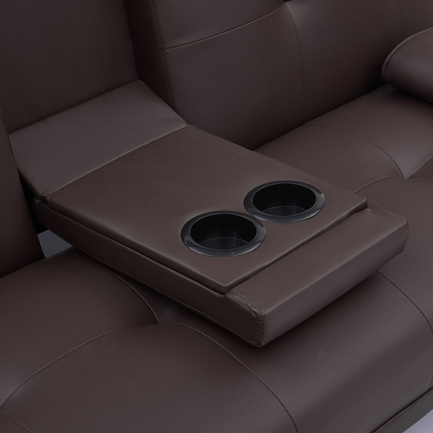 Divano letto a due posti in similpelle marrone con portabicchieri