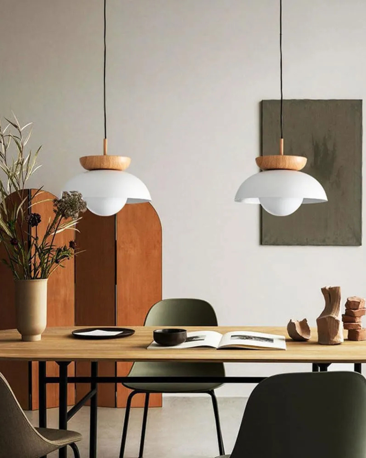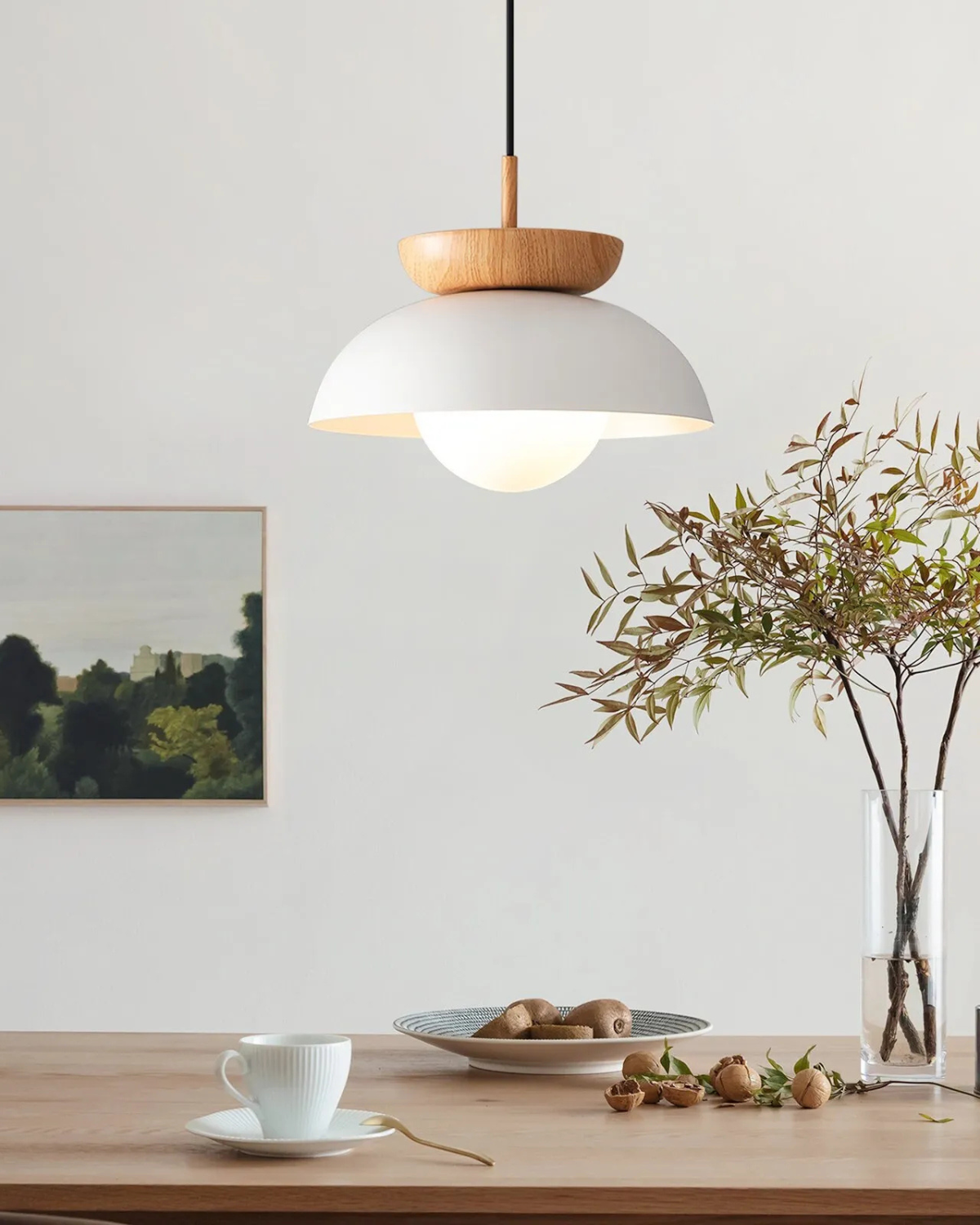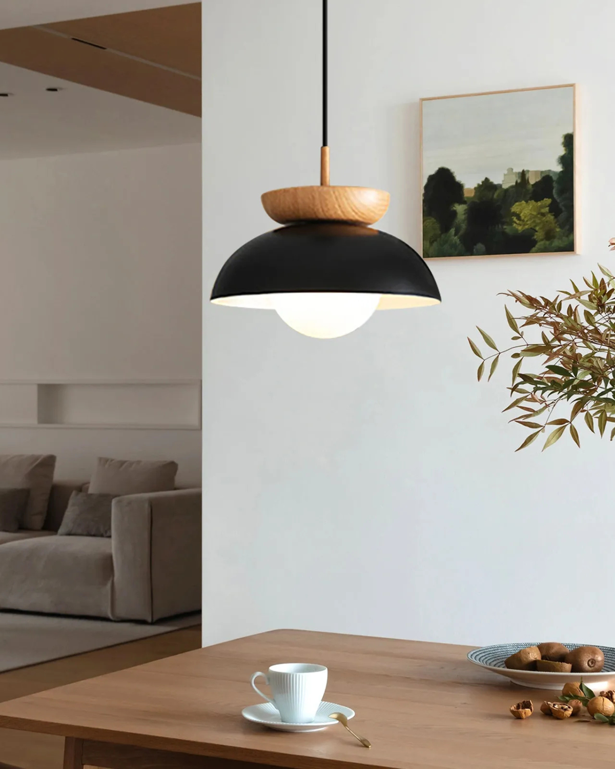 Valorizza il tuo spazio con La Clairée , una lampada a sospensione che fonde perfettamente un design minimalista con un'eleganza senza tempo. Caratterizzata da un paralume metallico a cupola abbinato a un elemento in legno naturale, questa lampada incarna la filosofia Japandi, dove la semplicità scandinava incontra la tranquillità giapponese.