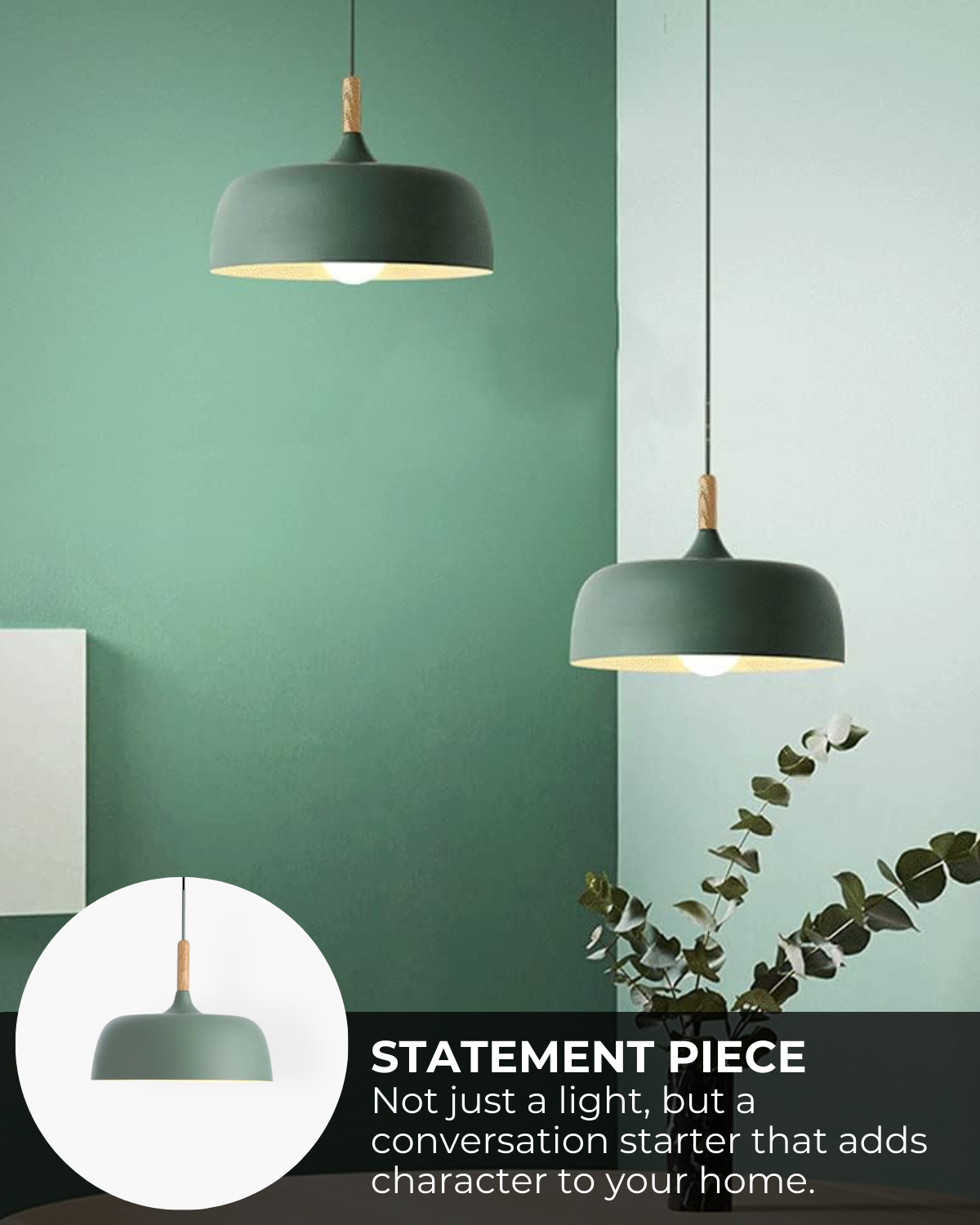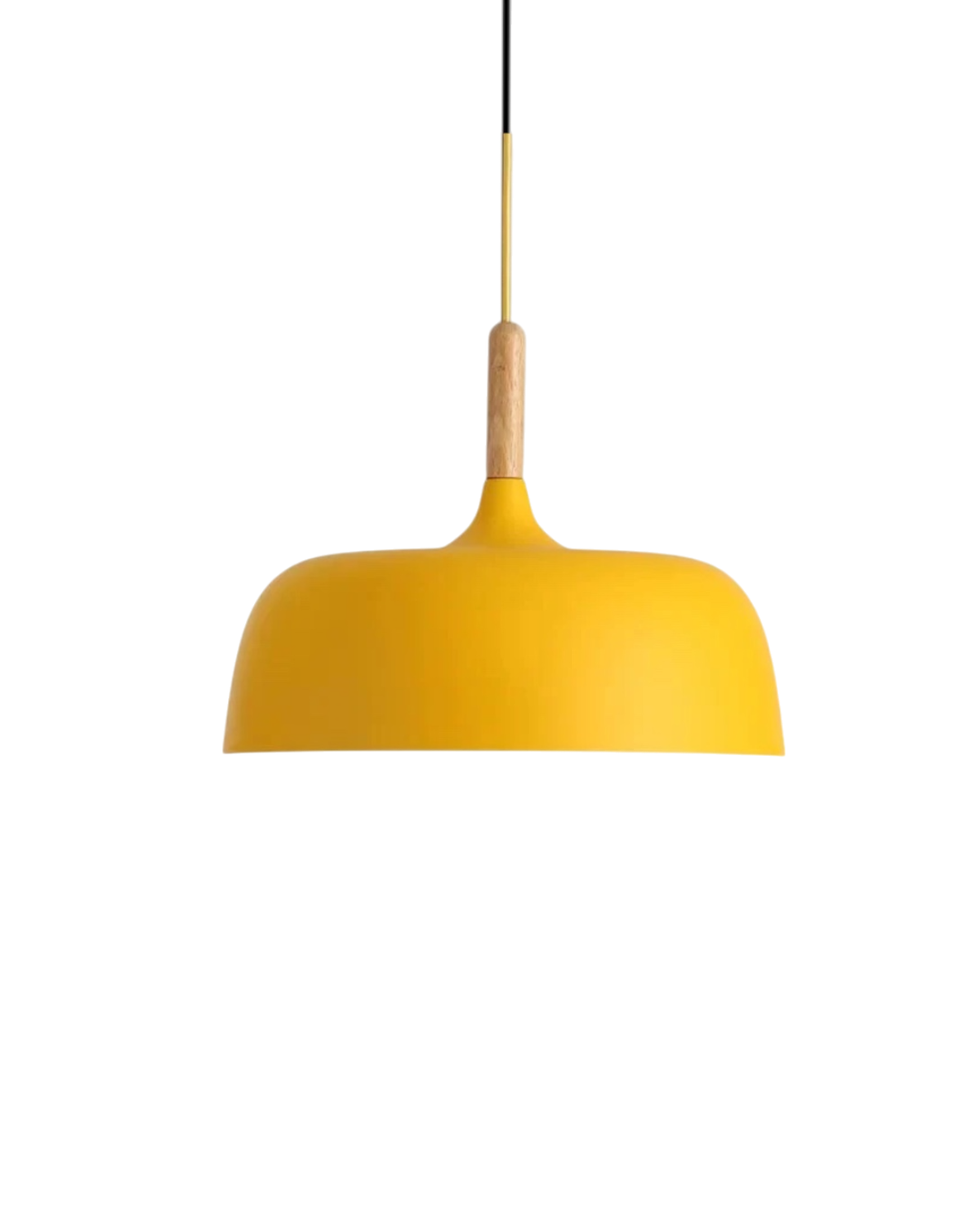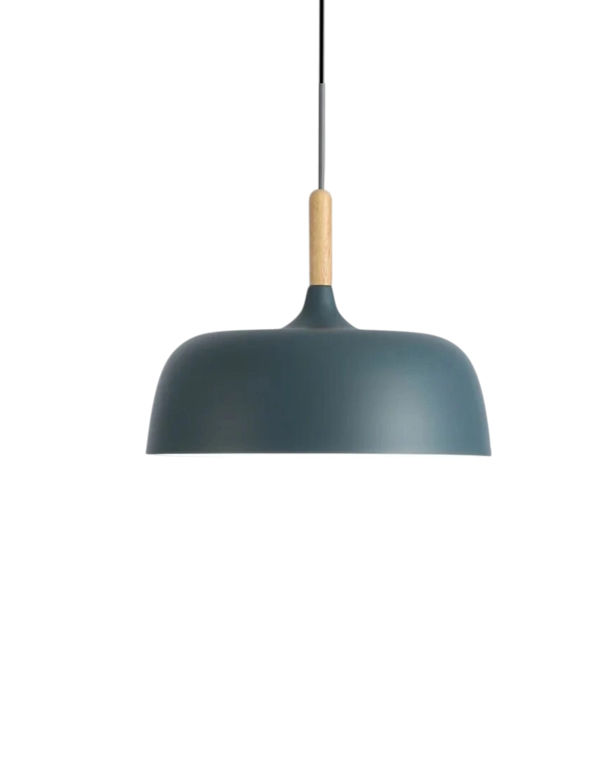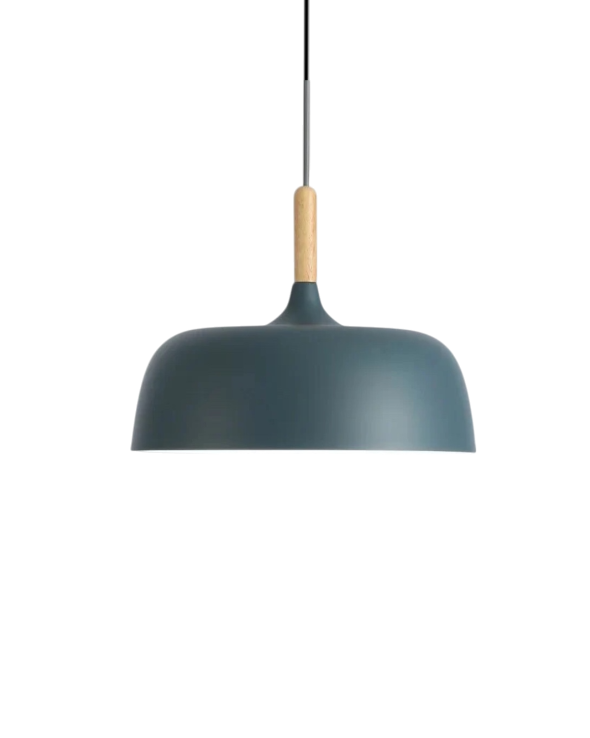 L'Éclat Éthéré è un capolavoro di sobria eleganza, che coniuga il minimalismo moderno con una raffinatezza senza tempo. Questa lampada a sospensione presenta un paralume opaco elegantemente curvo abbinato a un elemento in legno naturale, creando un'armoniosa combinazione di texture che trasuda raffinatezza.