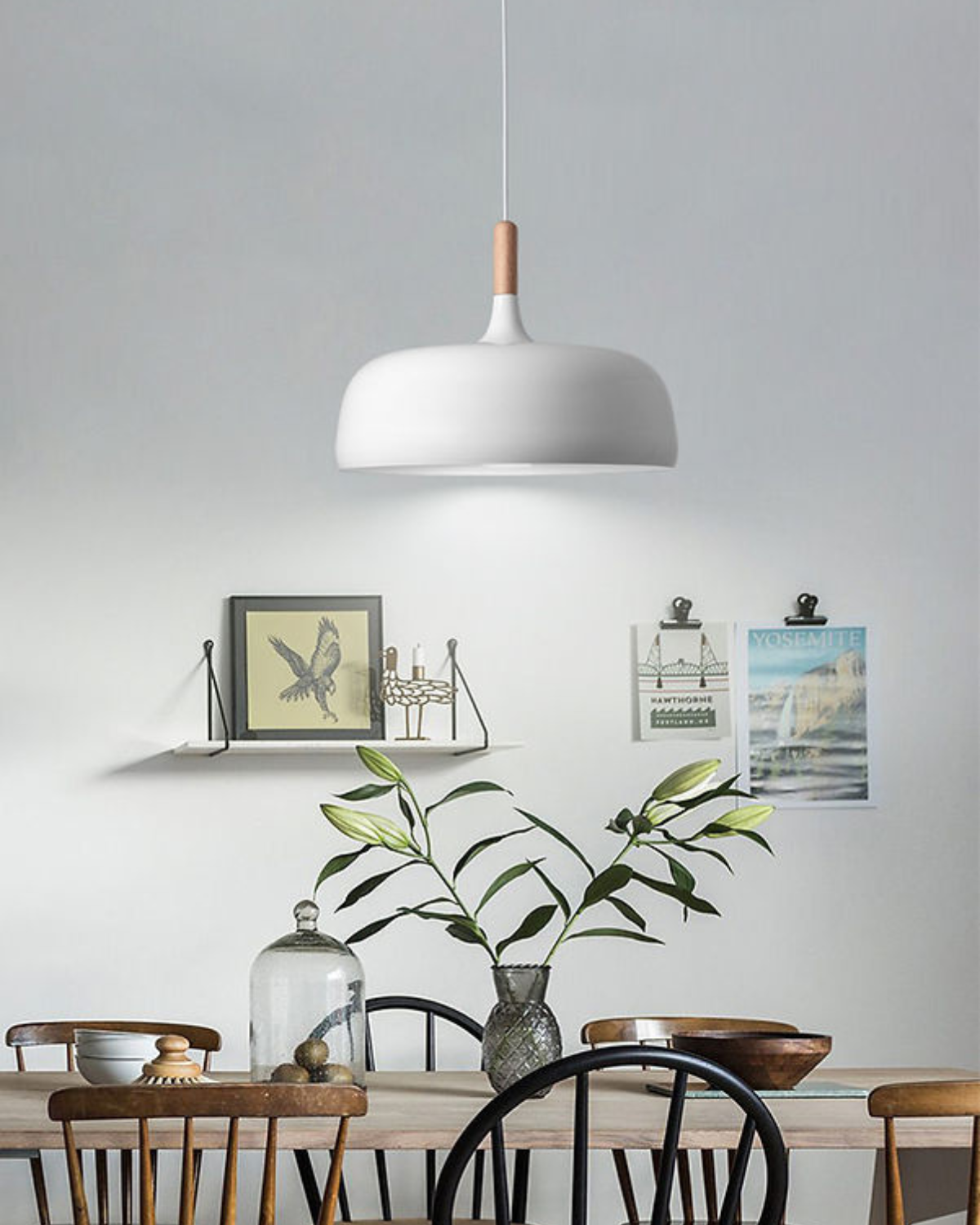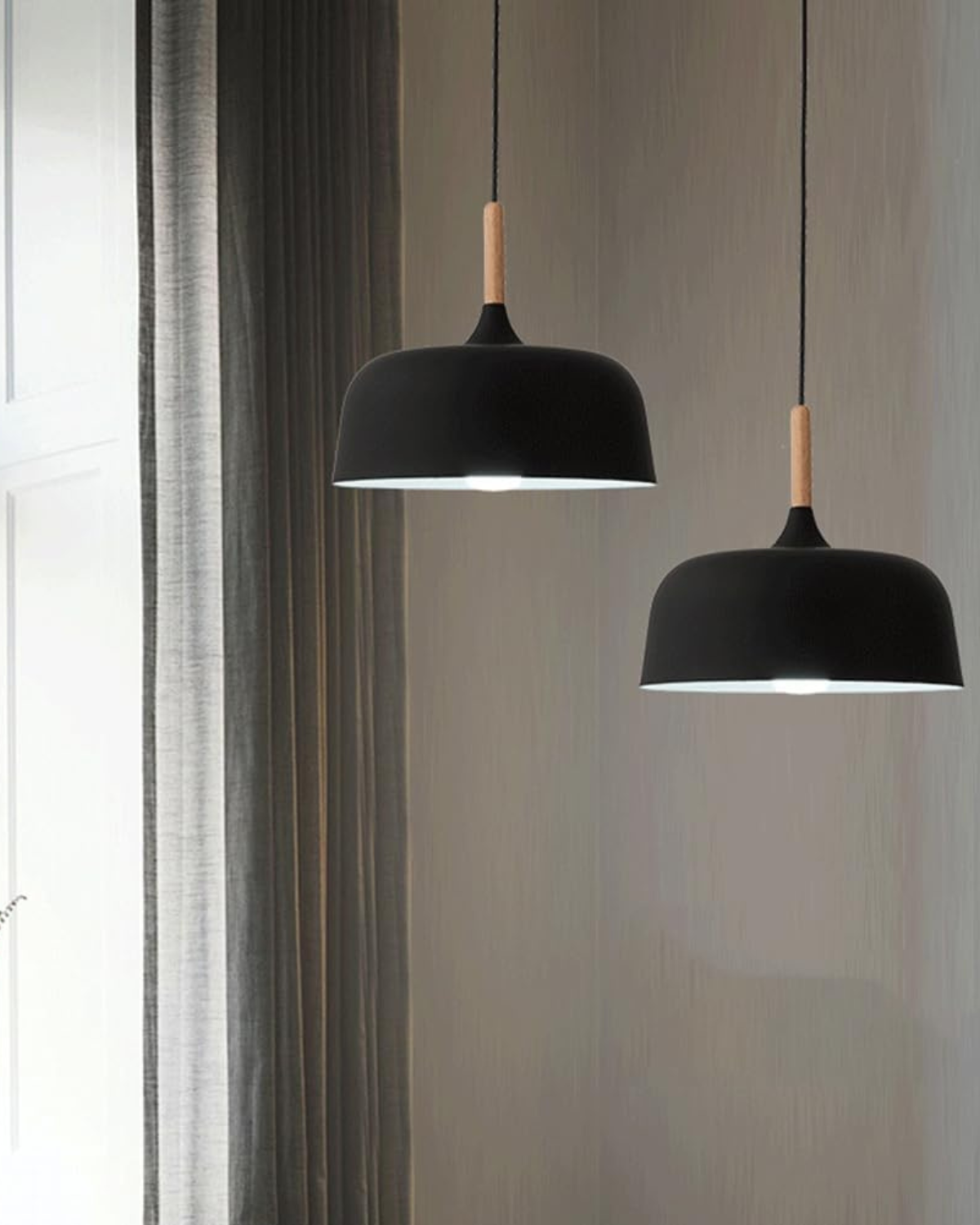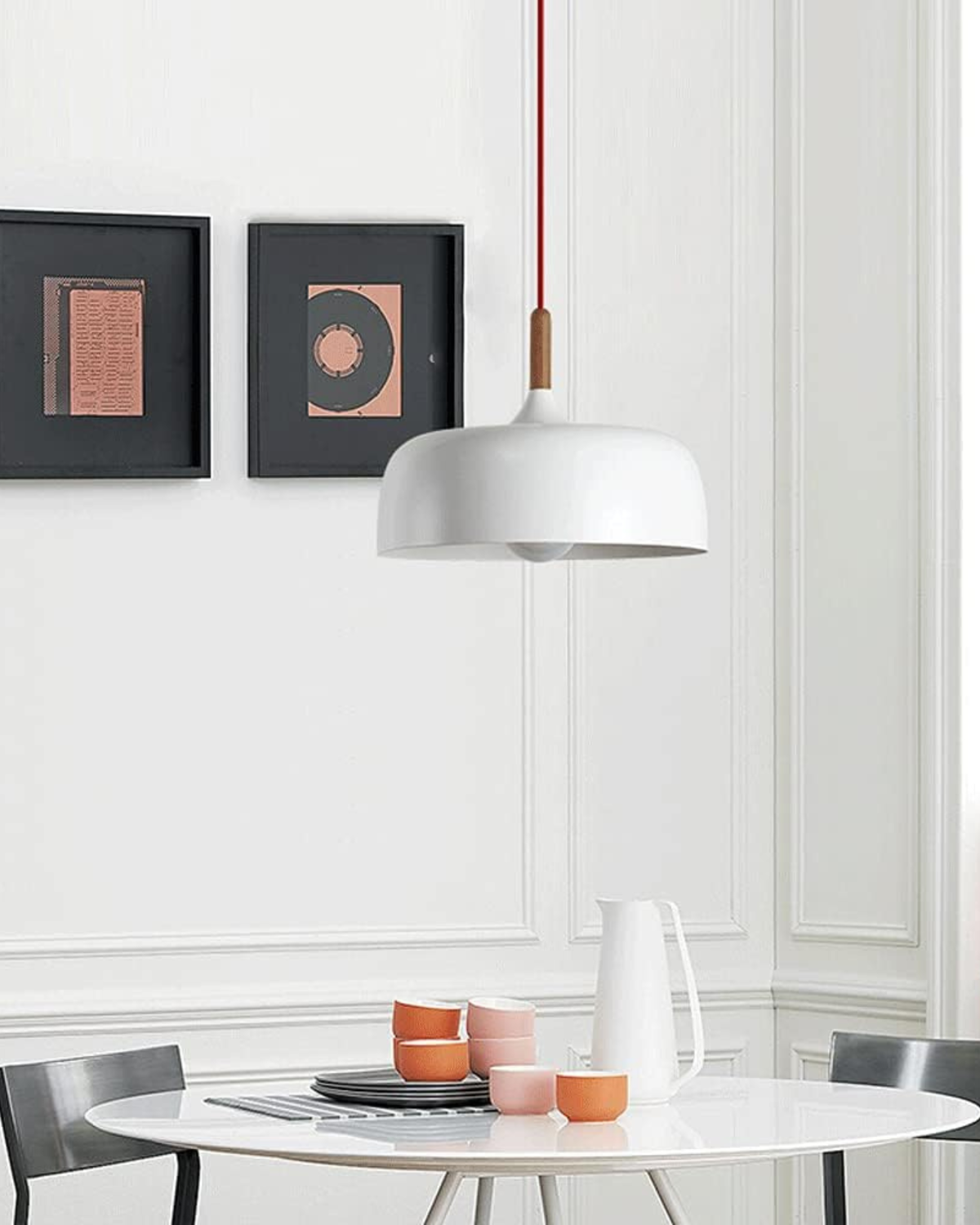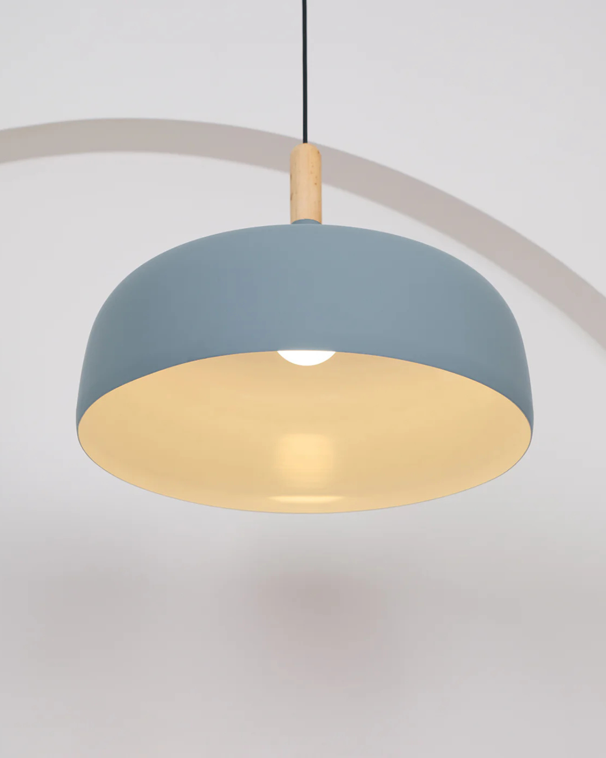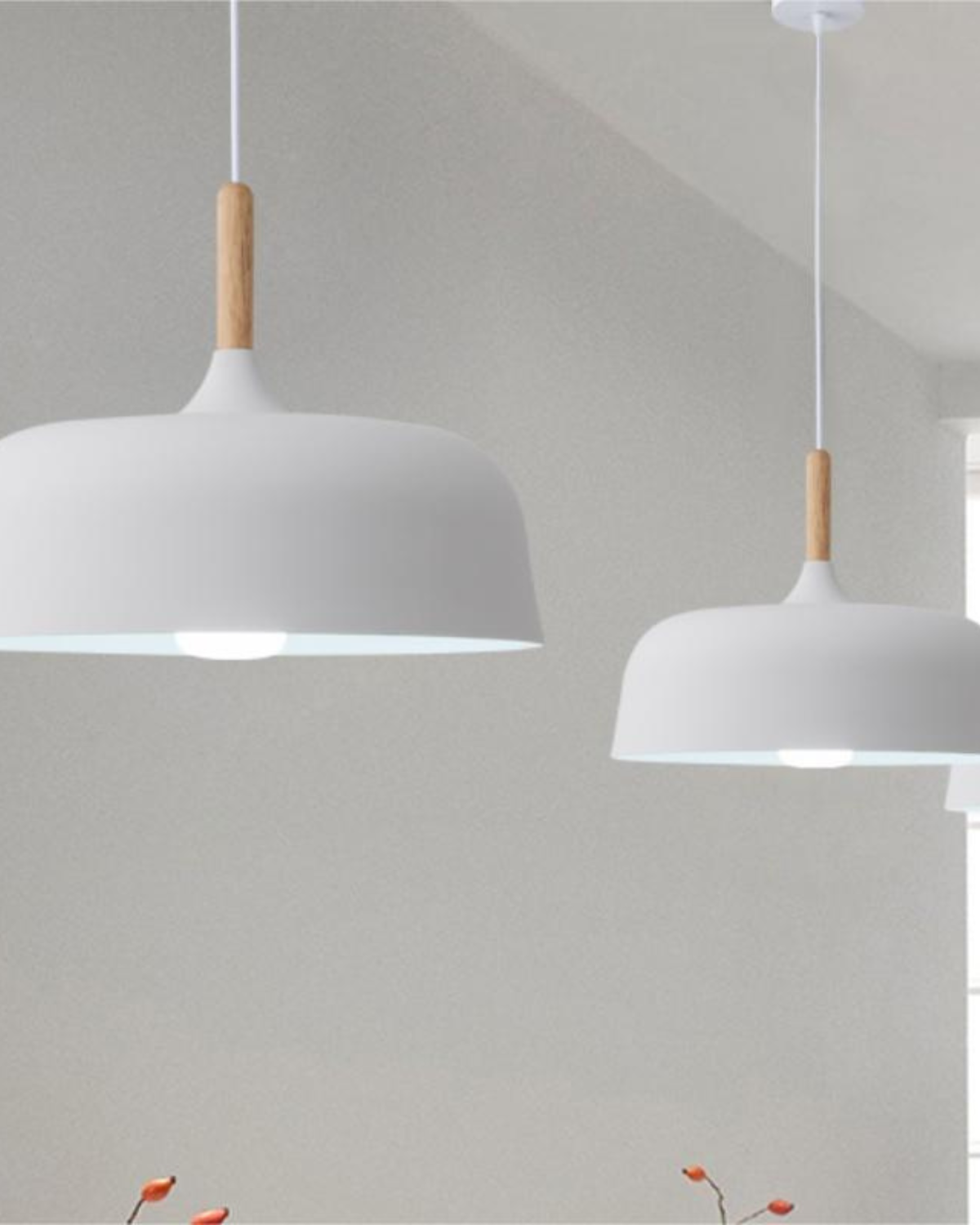 L'Éclat Éthéré è un capolavoro di sobria eleganza, che coniuga il minimalismo moderno con una raffinatezza senza tempo. Questa lampada a sospensione presenta un paralume opaco elegantemente curvo abbinato a un elemento in legno naturale, creando un'armoniosa combinazione di texture che trasuda raffinatezza.