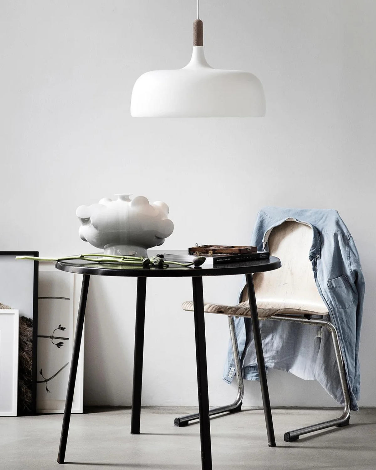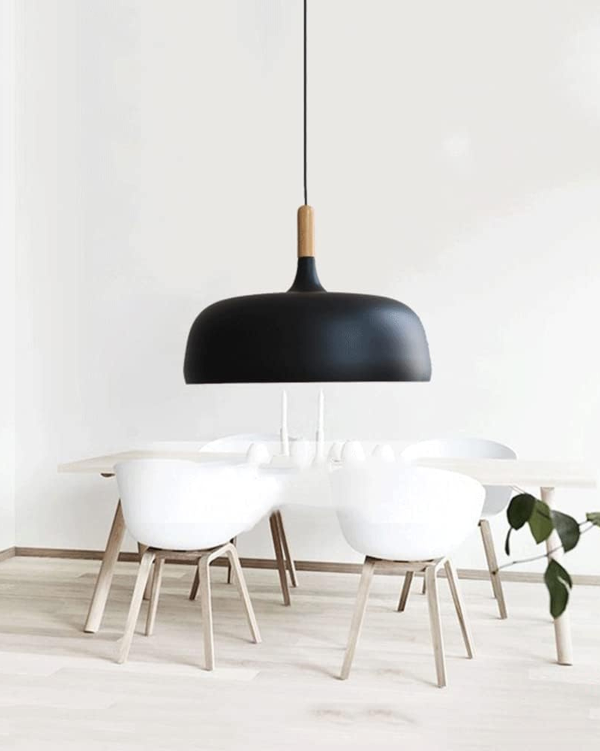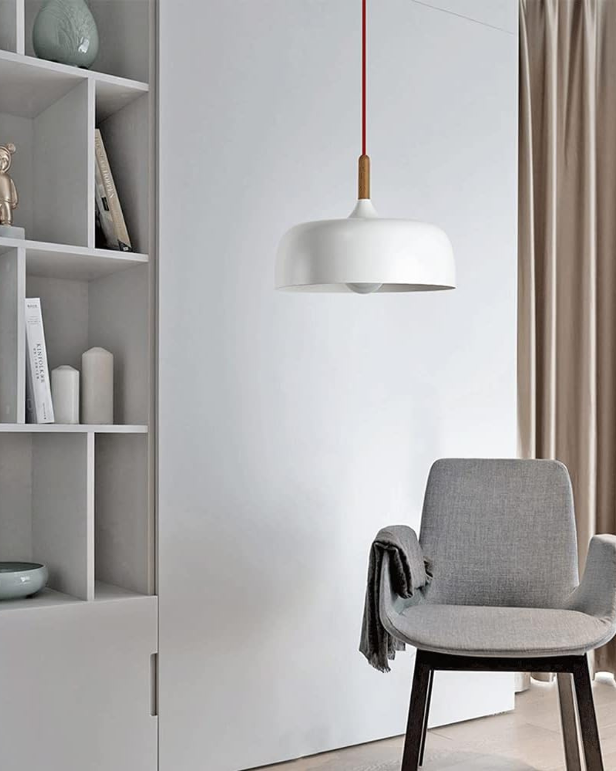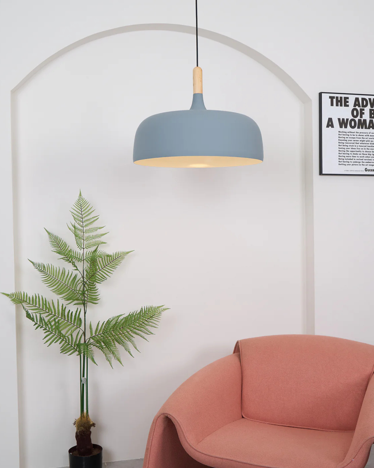 L'Éclat Éthéré è un capolavoro di sobria eleganza, che coniuga il minimalismo moderno con una raffinatezza senza tempo. Questa lampada a sospensione presenta un paralume opaco elegantemente curvo abbinato a un elemento in legno naturale, creando un'armoniosa combinazione di texture che trasuda raffinatezza.