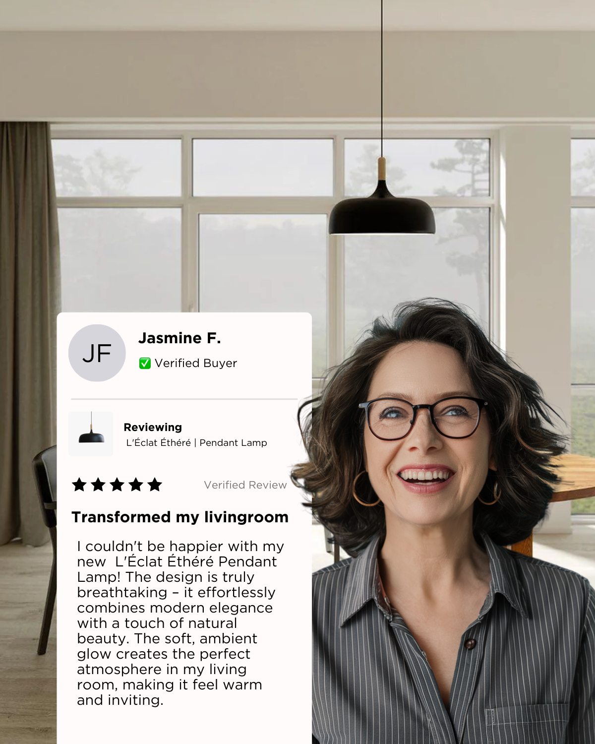 Che sia sospesa sopra un tavolo da pranzo, in un accogliente angolo lettura o come elemento centrale di un moderno spazio abitativo, L'Éclat Éthéré aggiunge un tocco di lussuosa semplicità alla tua casa.