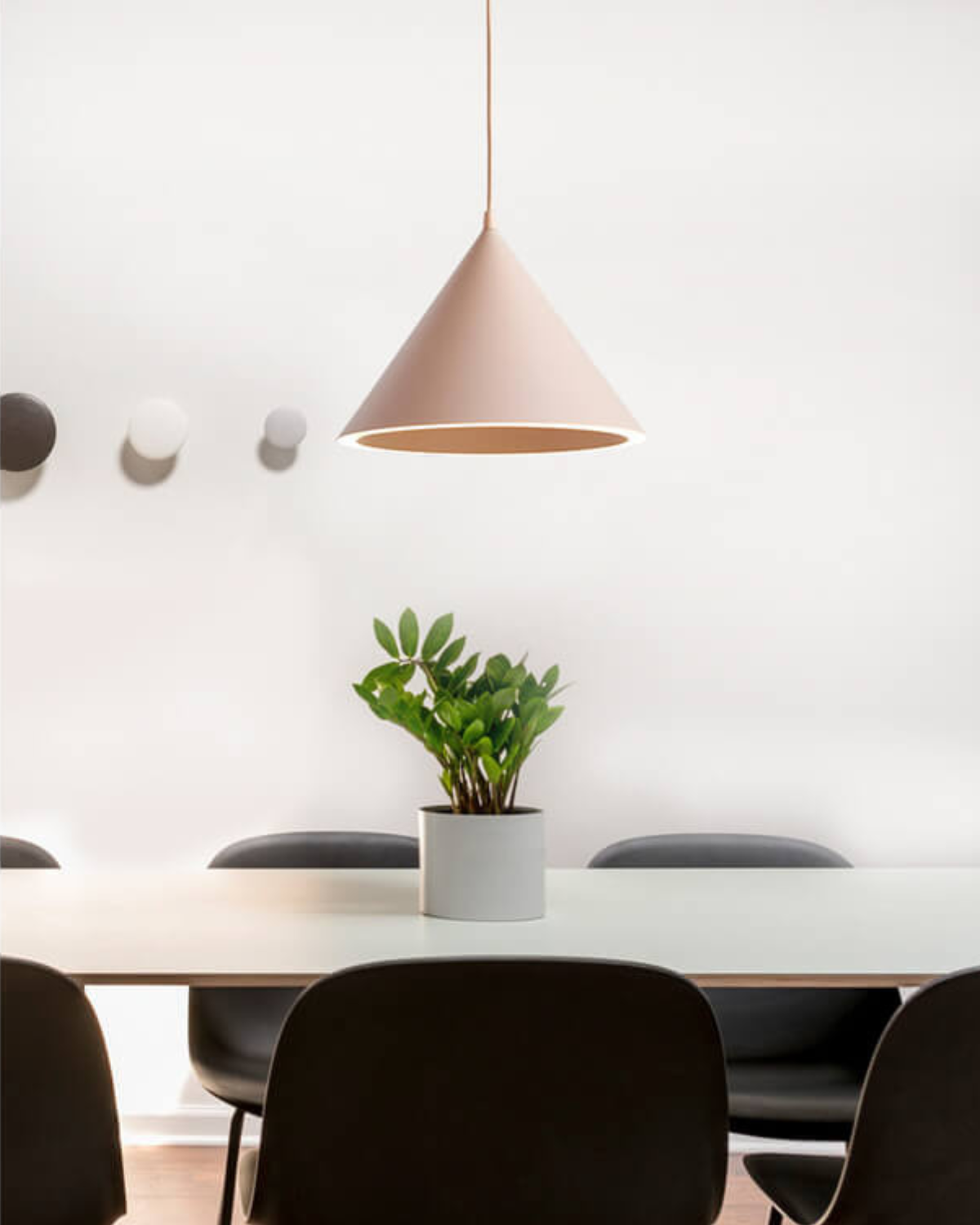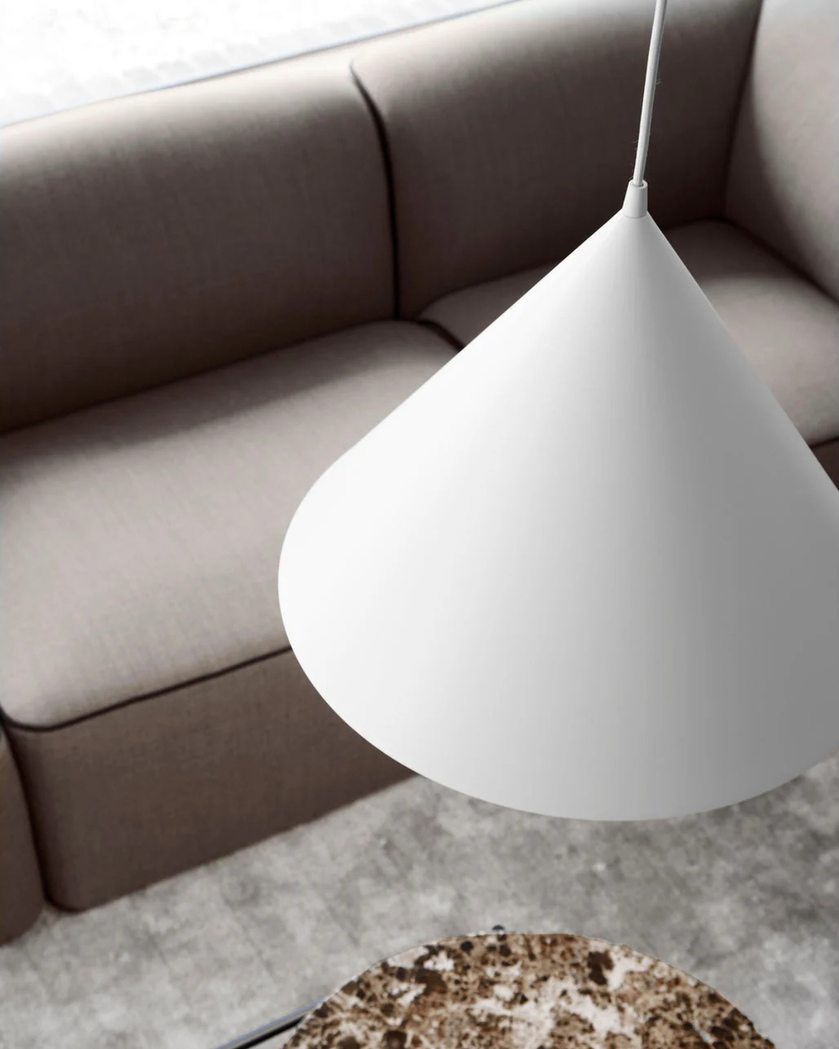 Capolavoro di design minimalista, L'Éclat Vif incarna un'eleganza senza tempo e una raffinatezza moderna. Con la sua elegante silhouette conica e la finitura opaca impeccabilmente liscia, questa lampada a sospensione rappresenta il perfetto equilibrio tra forma e funzione.