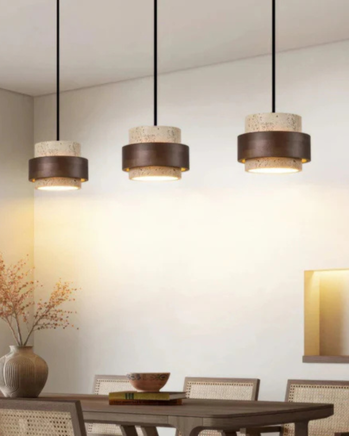 Incarnazione di eleganza moderna e design senza tempo, la lampada a sospensione L'Embrun dona un tocco di raffinata raffinatezza a qualsiasi spazio. Ispirata alla delicata foschia del mare, la sua forma splendidamente scolpita combina un sorprendente contrasto di toni caldi e terrosi con linee eleganti e minimaliste. La pietra naturale testurizzata e i ricchi dettagli in legno offrono un'armoniosa fusione di natura e lusso, mentre la morbida luce sotto il paralume accuratamente realizzato illumina la casa con una luce calda e invitante.