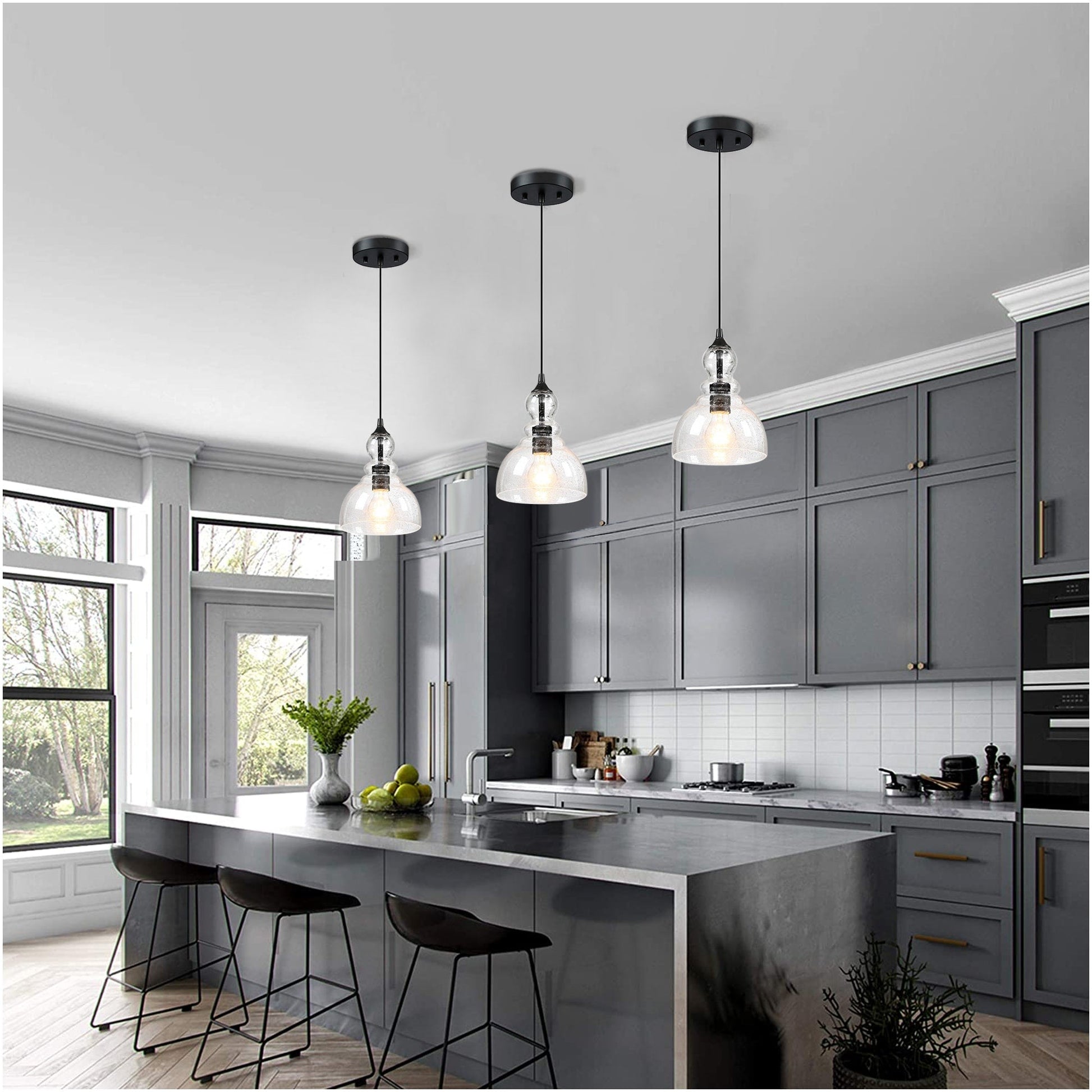 La confezione da 3 lampade a sospensione in vetro trasparente a goccia per isola da cucina è realizzata in metallo e vetro. Caratterizzata da linee pulite e un design raffinato, questa lampada a sospensione si adatta perfettamente ai tuoi interni. Il paralume in vetro trasparente creerà un'atmosfera elegante e raffinata nella tua stanza. Le luci soffuse sono piacevoli alla vista e sono compatibili con qualsiasi tipo di lampadina E26 (NOTA: la lampadina non è inclusa). La lampada a sospensione in vetro trasparente è perfetta per cucina, soggiorno, sala da pranzo, bar, caffetteria e ristorante.