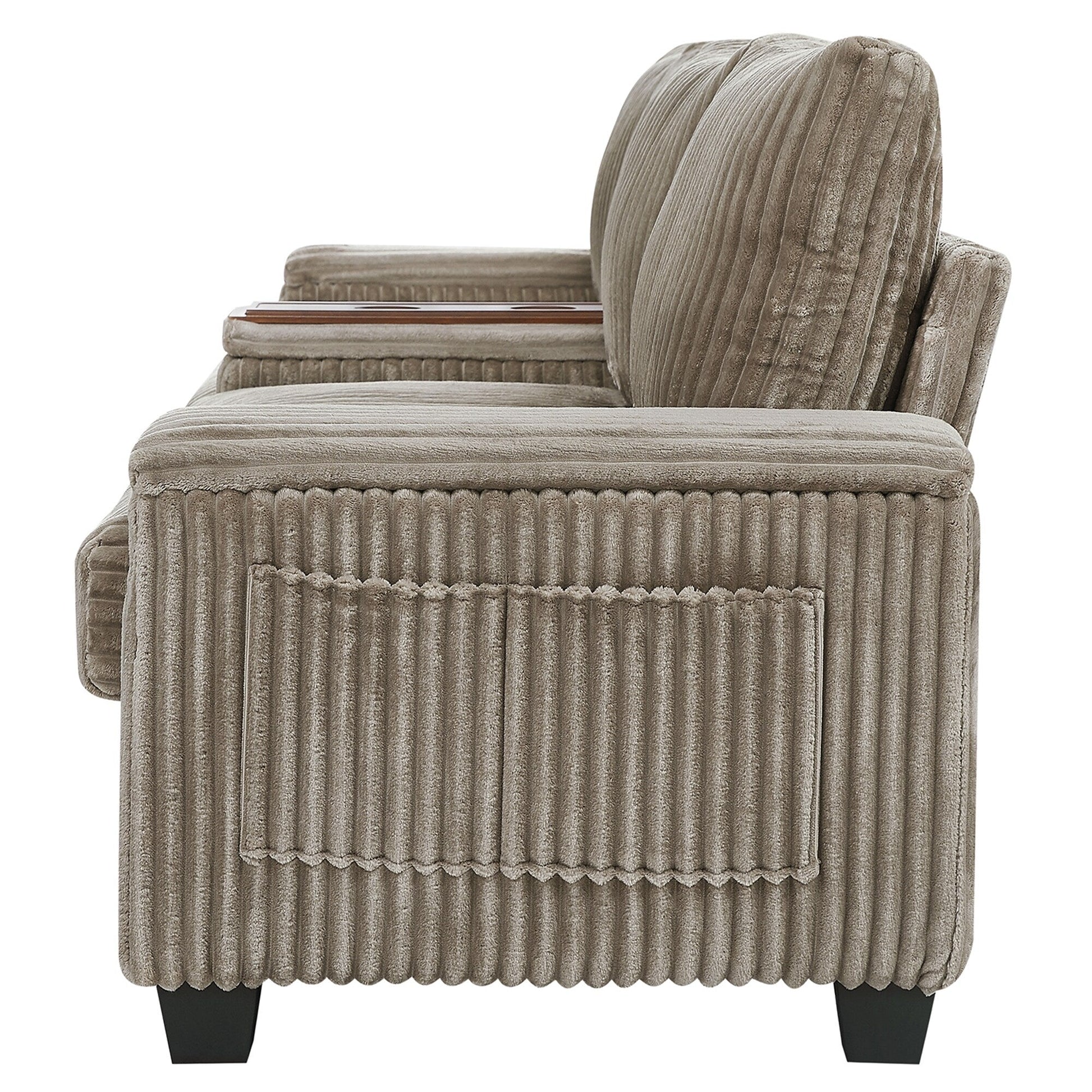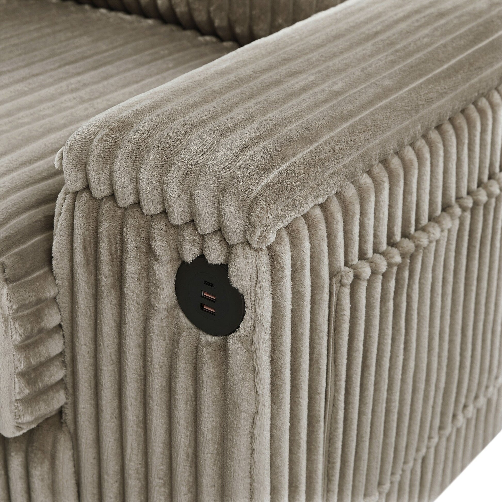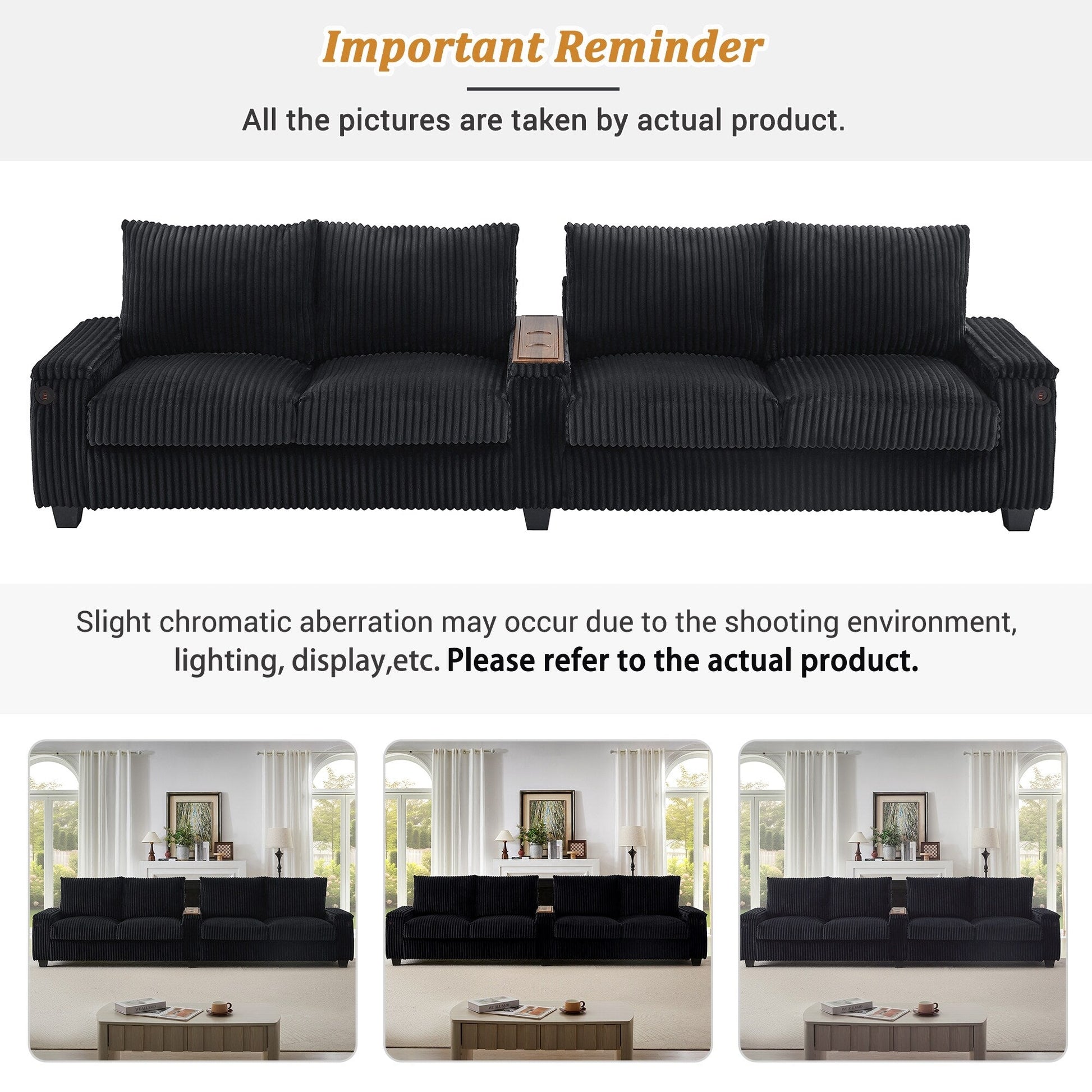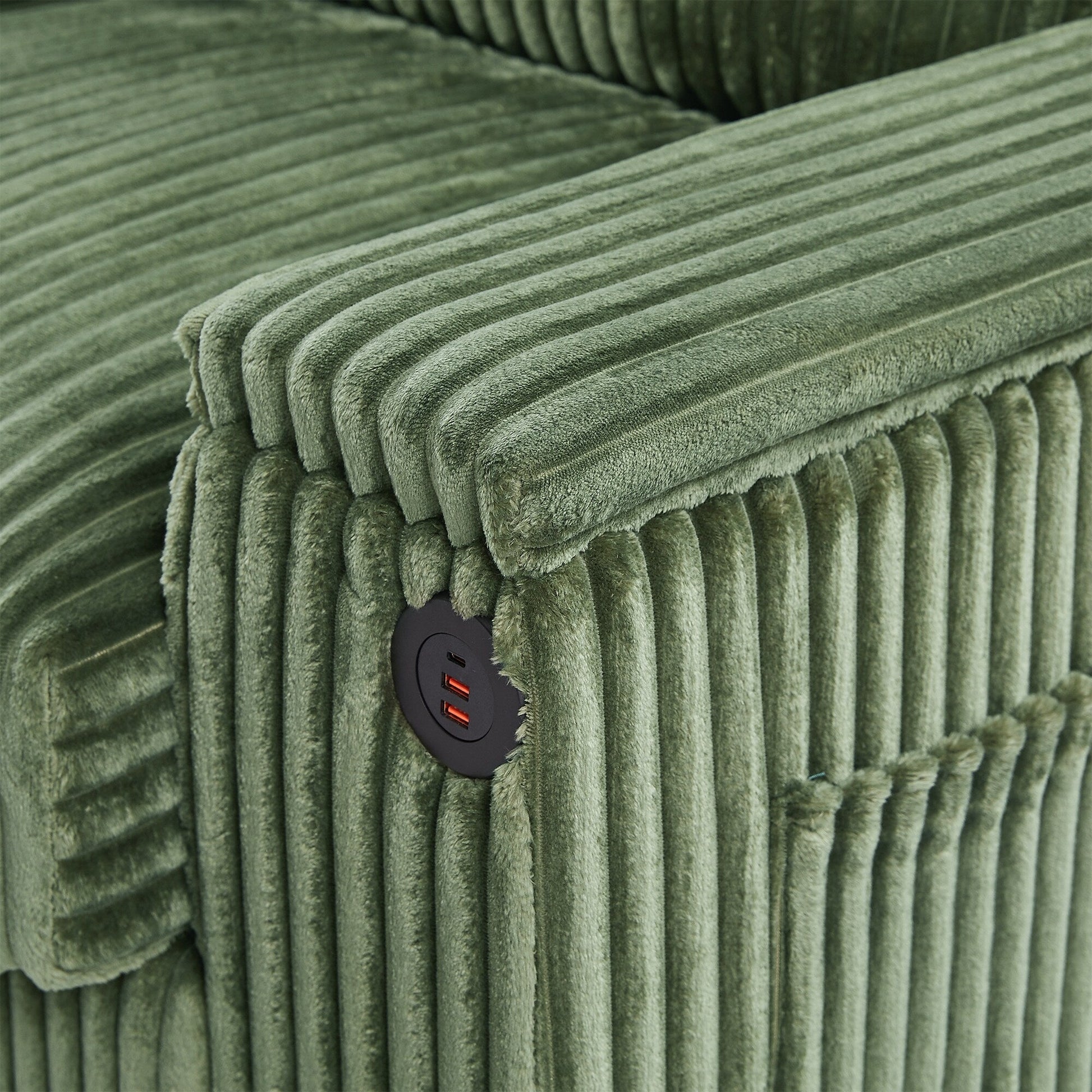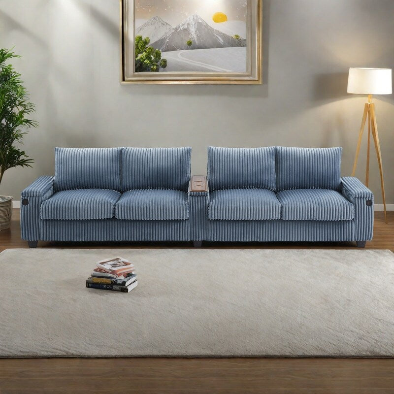 Divano a 4 posti in velluto a coste 133 con porte USB, portabicchieri ribaltabili e spazio nascosto