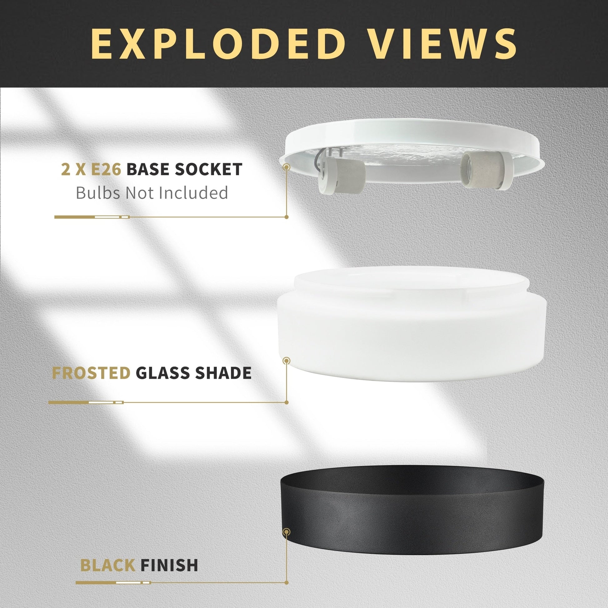 Plafoniera a filo a 2 luci con paralume in vetro smerigliato - 12,0 pollici LX 12,0 pollici WX 3,5 pollici H