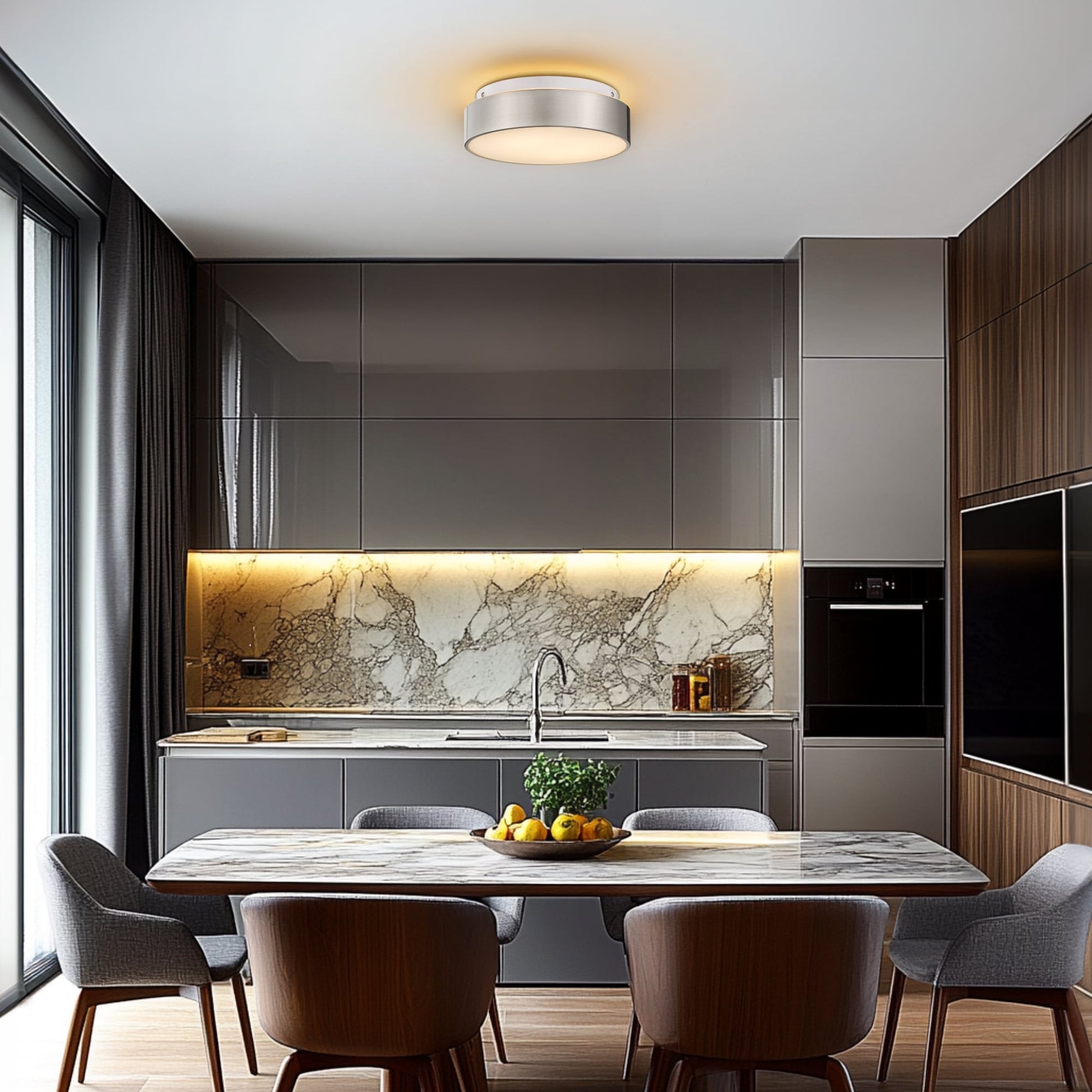 Questa plafoniera a filo è realizzata con una struttura in metallo di alta qualità e vetro satinato, resistente e antiriflesso. La forma semplice e il design con finitura in ottone dorato si abbinano perfettamente a qualsiasi arredamento. La plafoniera a semi-filo non solo fornisce illuminazione, ma migliora anche l'atmosfera della tua vita. La plafoniera è perfetta per cucina, bagno, camera da letto, soggiorno, sala da pranzo, studio, veranda e ingresso, ecc.