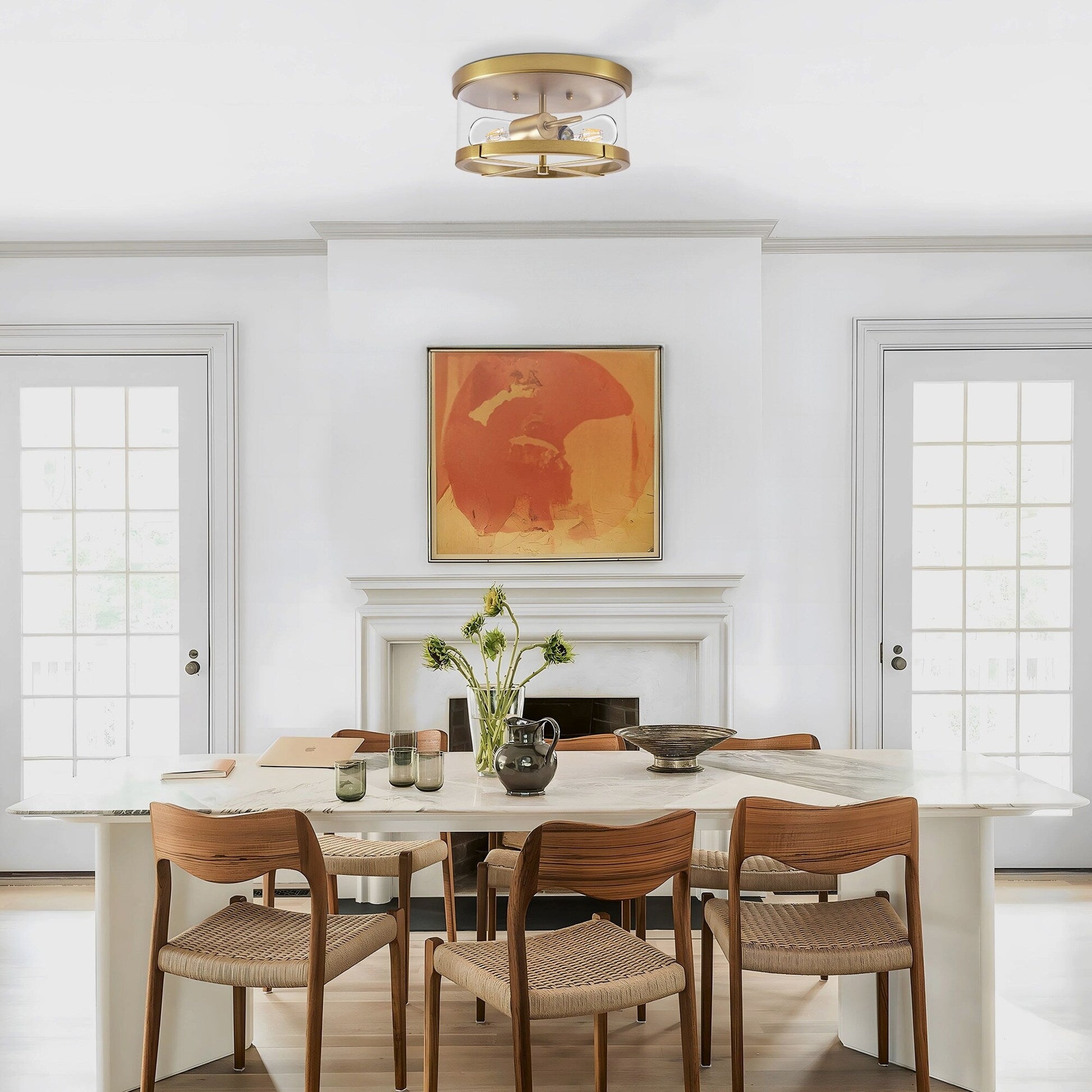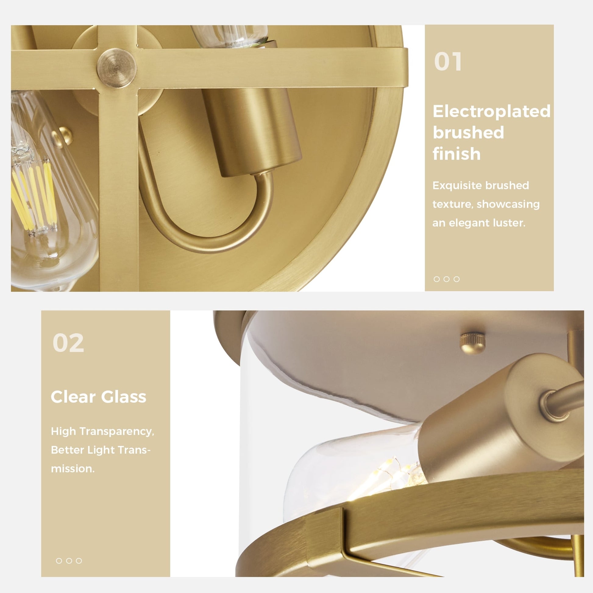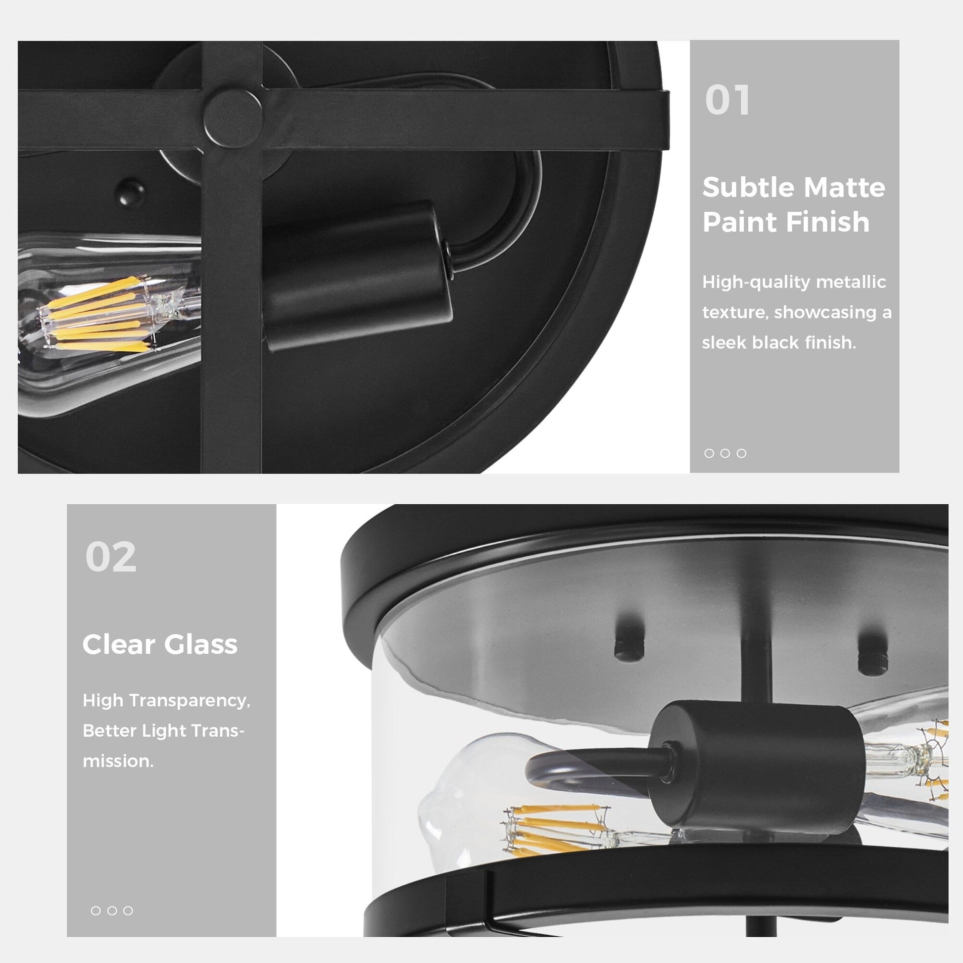 Plafoniera a 2 luci in vetro trasparente con montaggio a filo e struttura in metallo