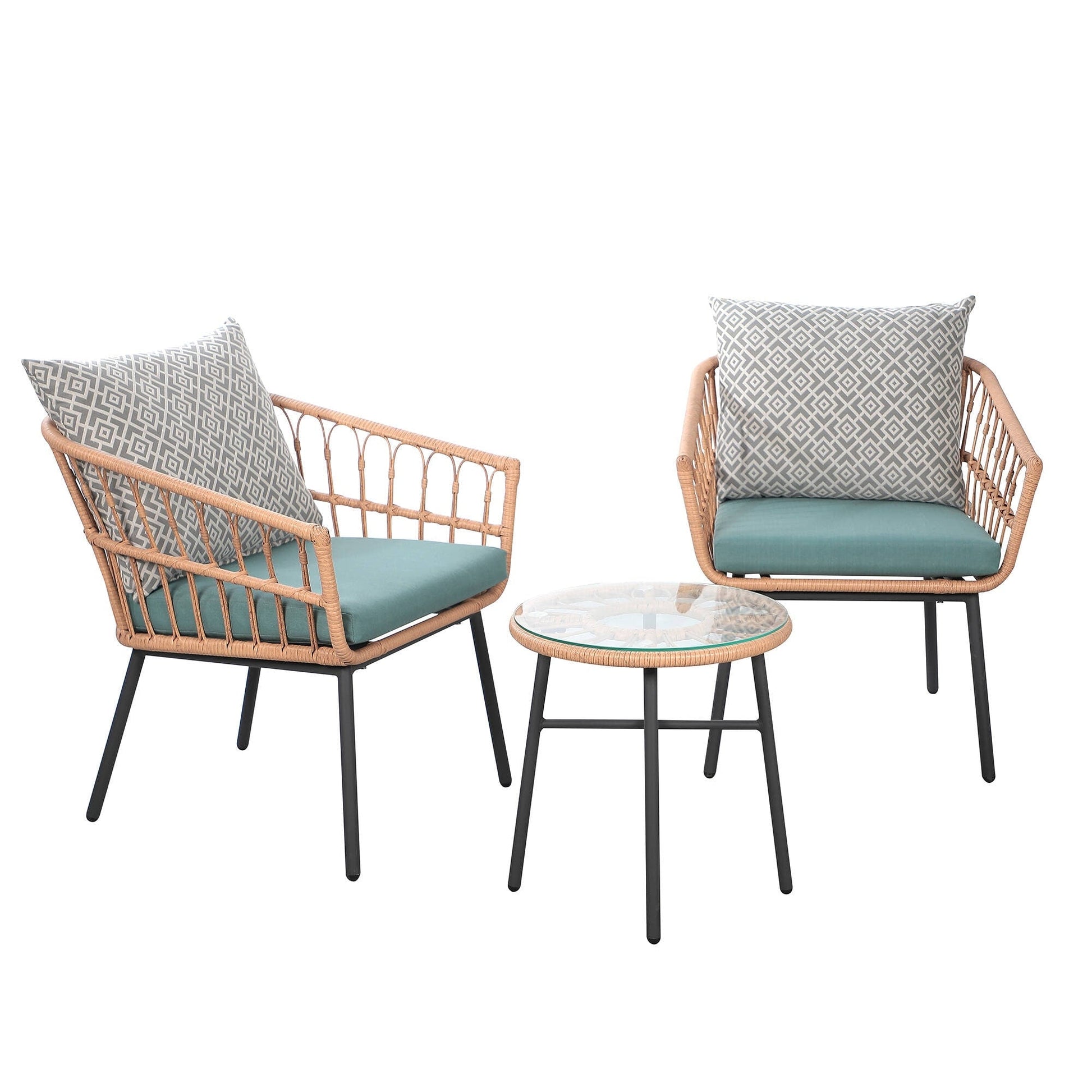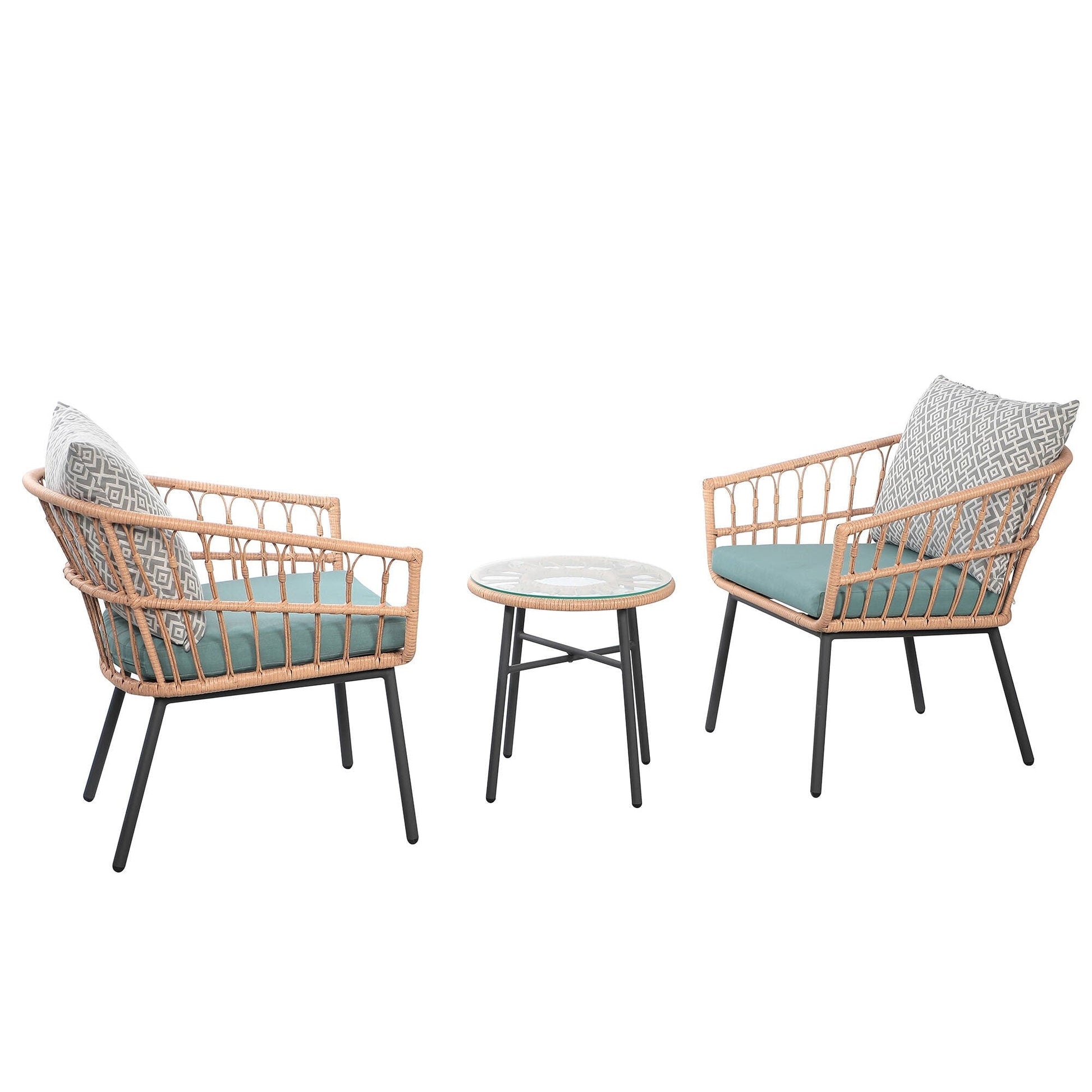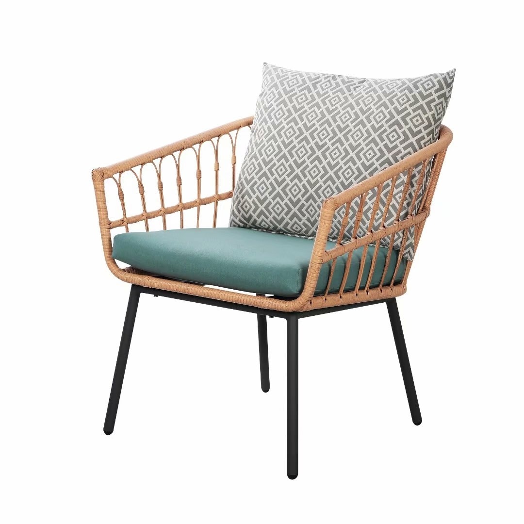 Set da bistrot in vimini per esterni, 3 pezzi, con cuscini