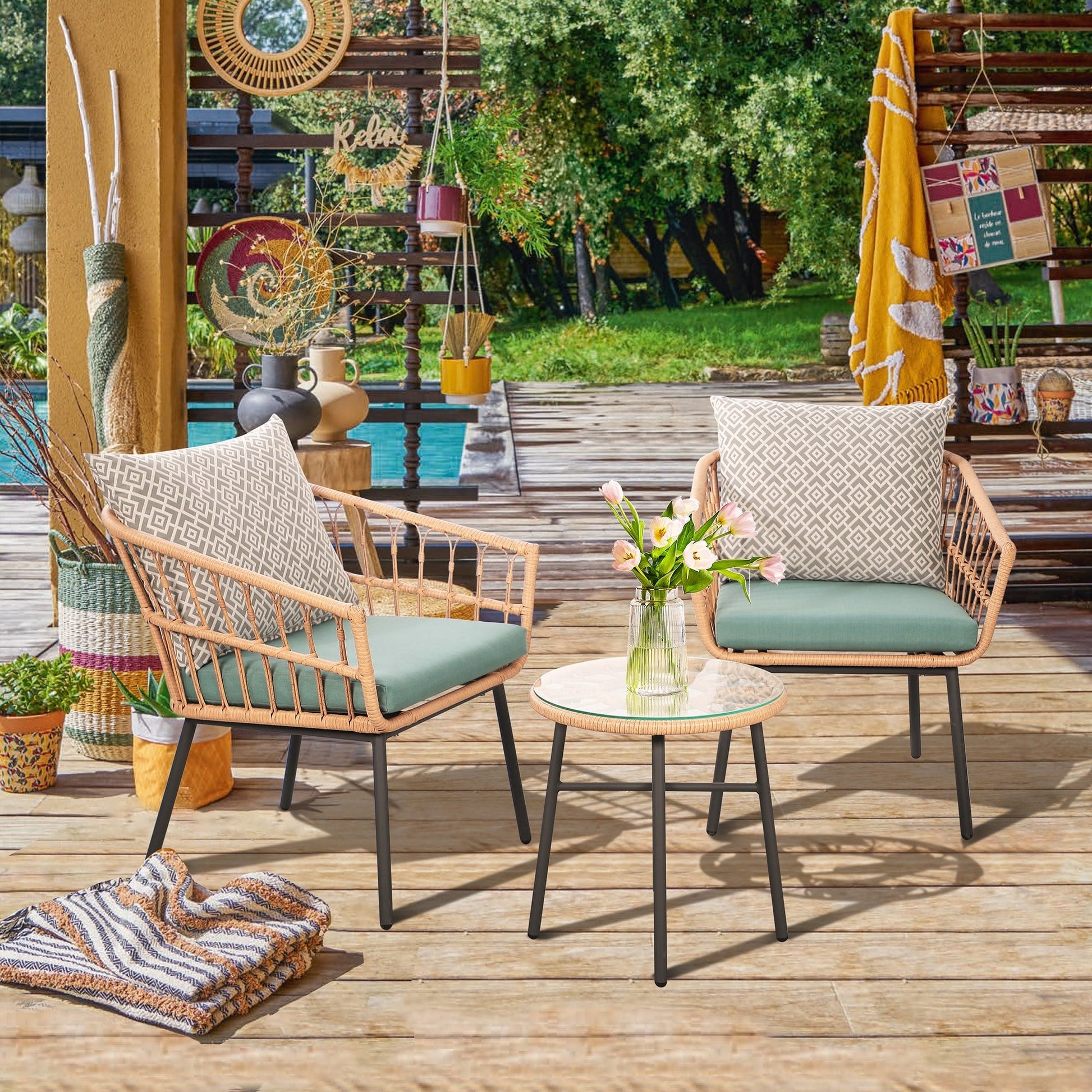 Set da bistrot in vimini per esterni, 3...