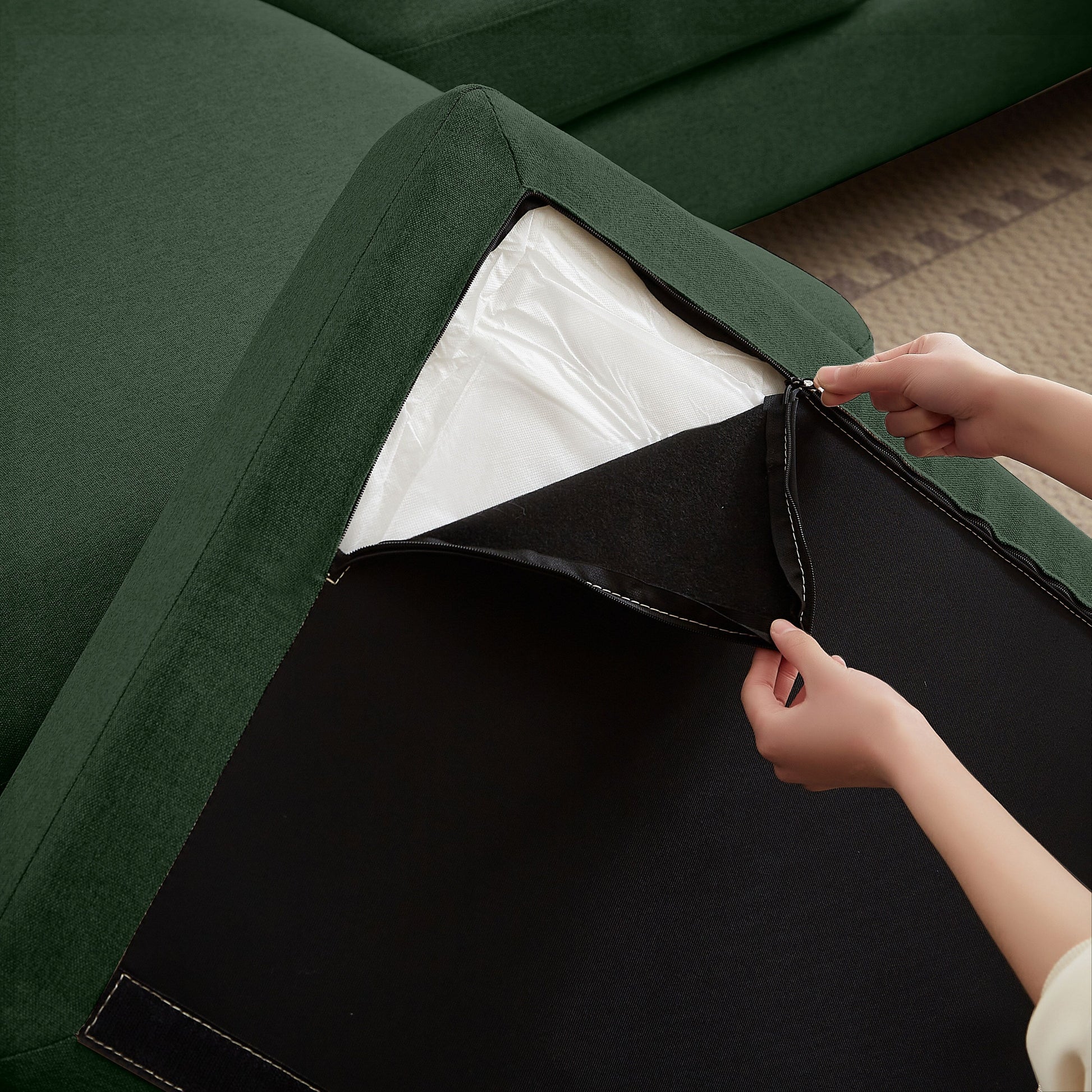 Questo divano componibile a tre pezzi è l'aggiunta perfetta a qualsiasi soggiorno moderno. Può ospitare comodamente fino a quattro persone, rendendolo ideale per accoglienti serate cinema. La struttura in legno ingegnerizzato e le gambe in metallo garantiscono robustezza ed eleganza. Le sedute imbottite in schiuma con molle elicoidali offrono un supporto confortevole, permettendo di appoggiarsi e rilassarsi in totale sicurezza. Il tessuto è in poliestere, che offre una tinta unita e un aspetto curato. Inoltre, i cuscini delle sedute sono facilmente sfoderabili, garantendo una pulizia senza sforzo.