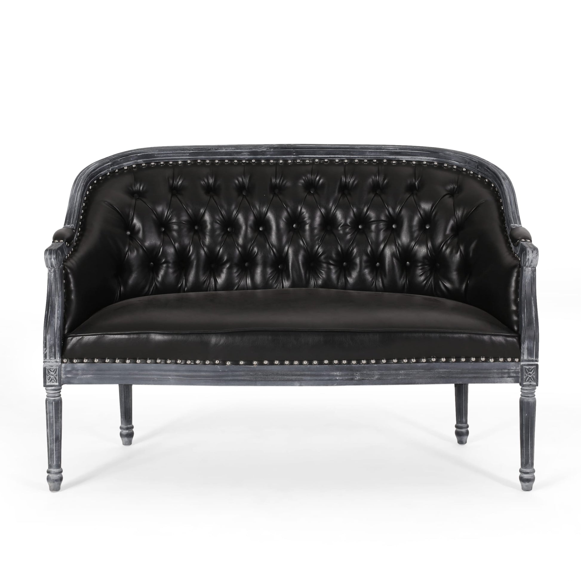 Divano a due posti in similpelle da 49,5 pollici con gambe tornite e borchie per soggiorno