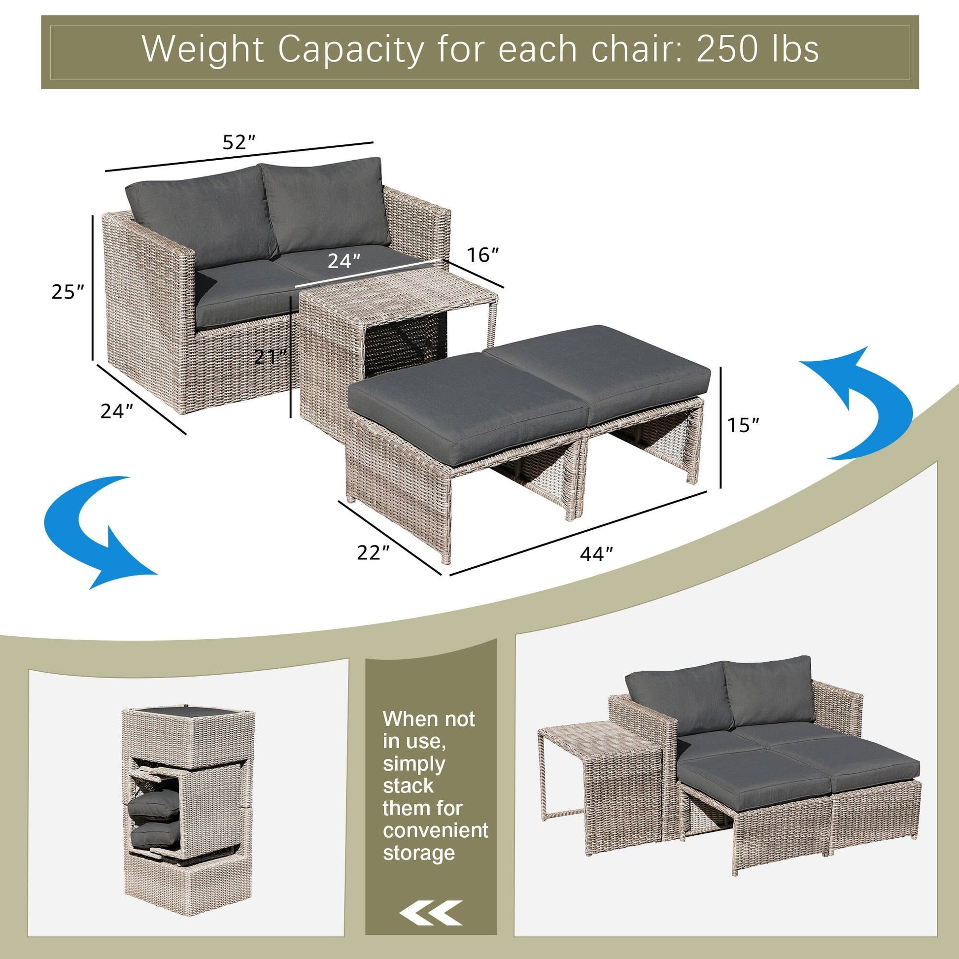 Set da conversazione in rattan da esterno, 5...