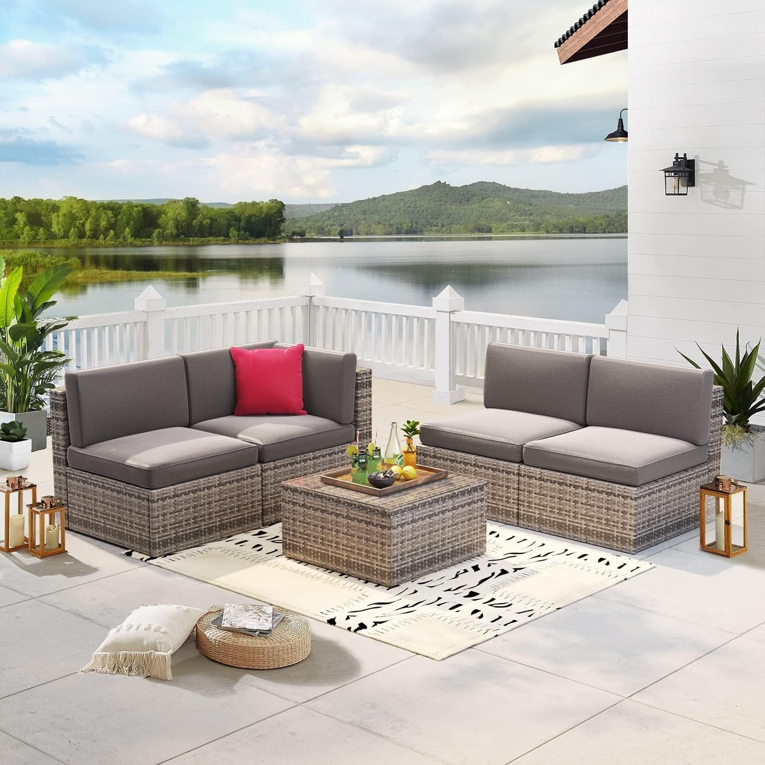 • Comodo e facile da pulire: il set di divani da 5 pezzi non è solo comodo, ma anche facile da pulire. La seduta e lo schienale spessi sono molto comodi e facili da pulire. Grazie al materiale altamente resistente all'acqua, le macchie possono essere rimosse in modo sicuro e rapido. La fodera rimovibile con cerniera rende il tuo completo sempre pulito e nuovo. Questo completo è perfetto per trascorrere del tempo con la tua famiglia e adorerai le conversazioni all'aperto.