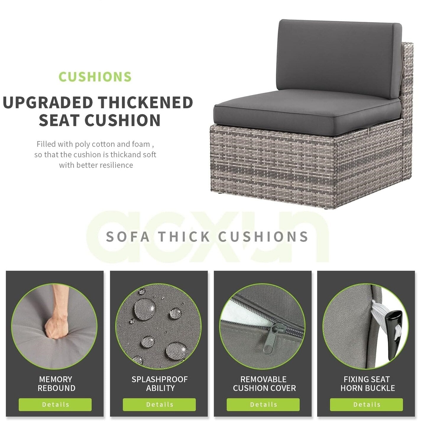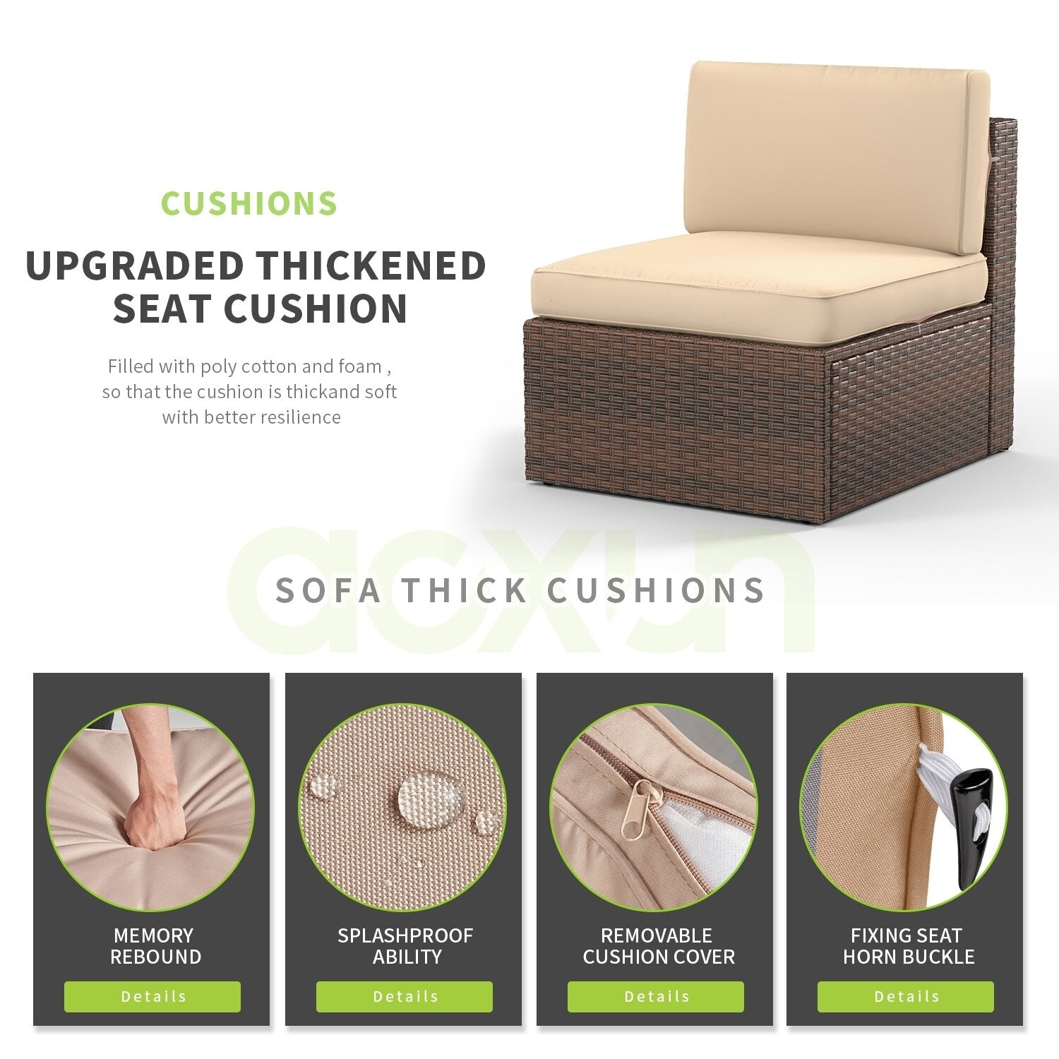 • Divertimento con combinazioni casuali: questo set di divani da esterno include 1 sedia angolare, 3 sedie senza braccioli e 1 tavolino in vetro, che possono essere disposti in modo flessibile in vari modi. Puoi combinarli e persino usarli separatamente in base alle tue esigenze. La combinazione casuale offre un divertimento infinito.