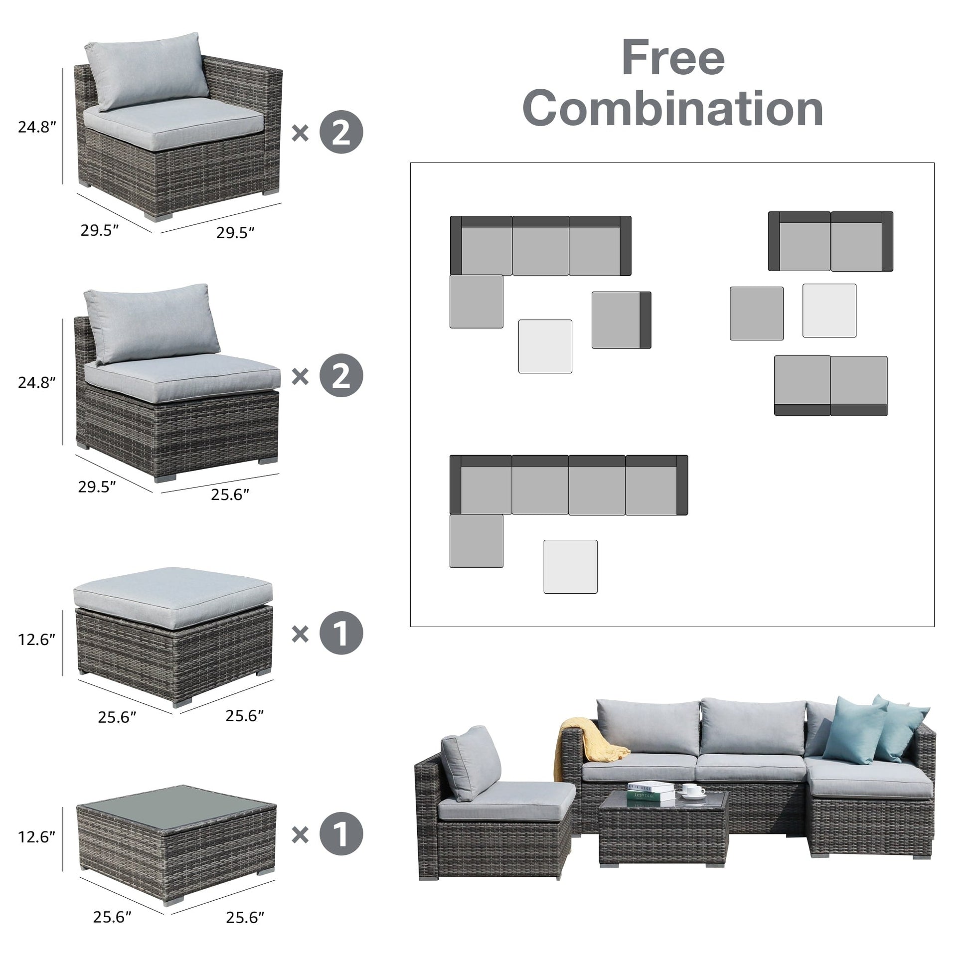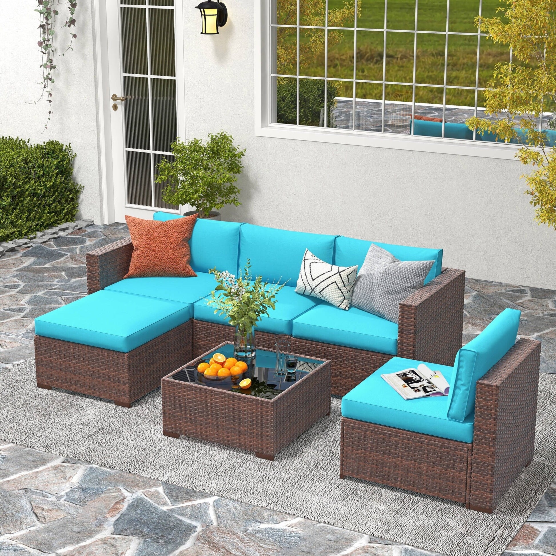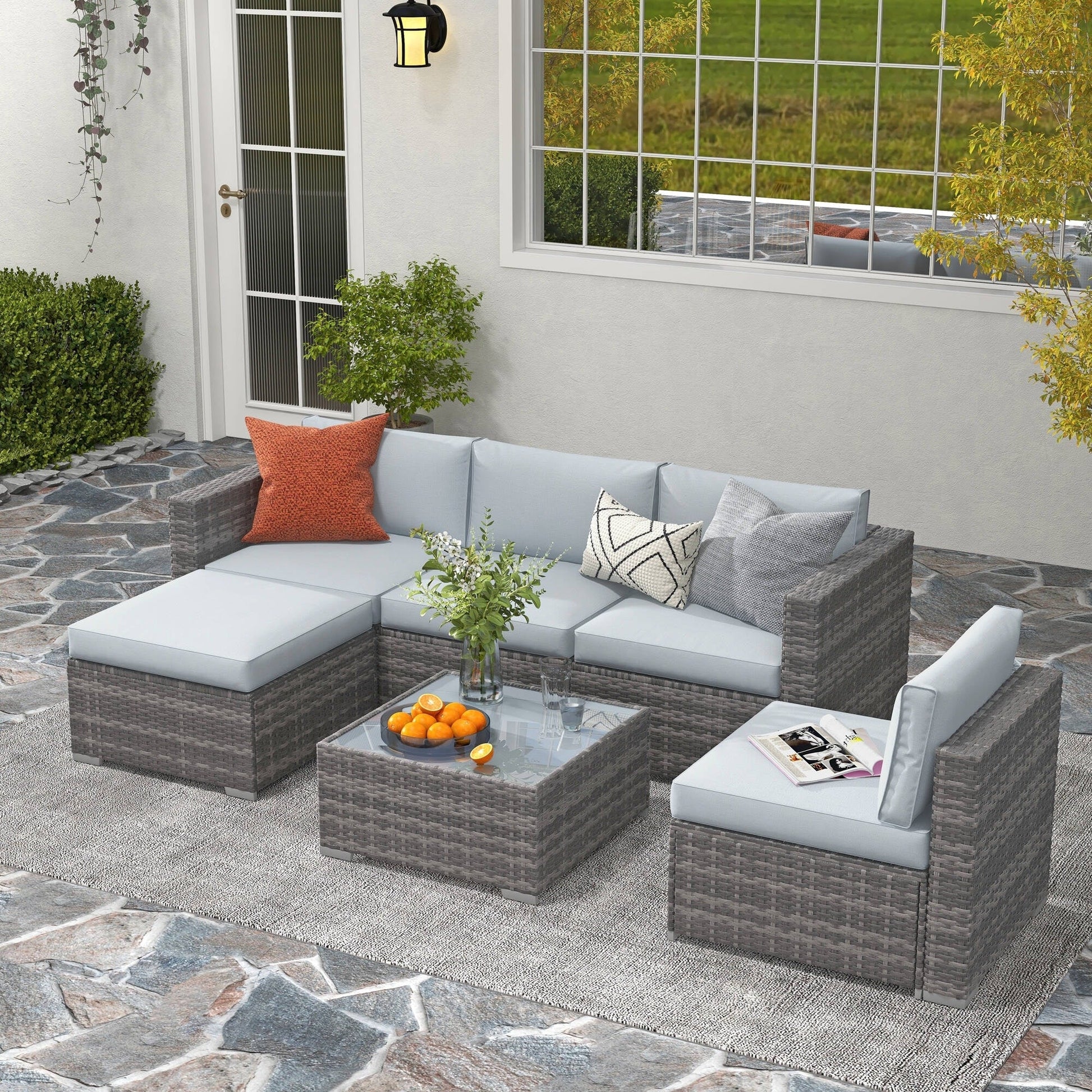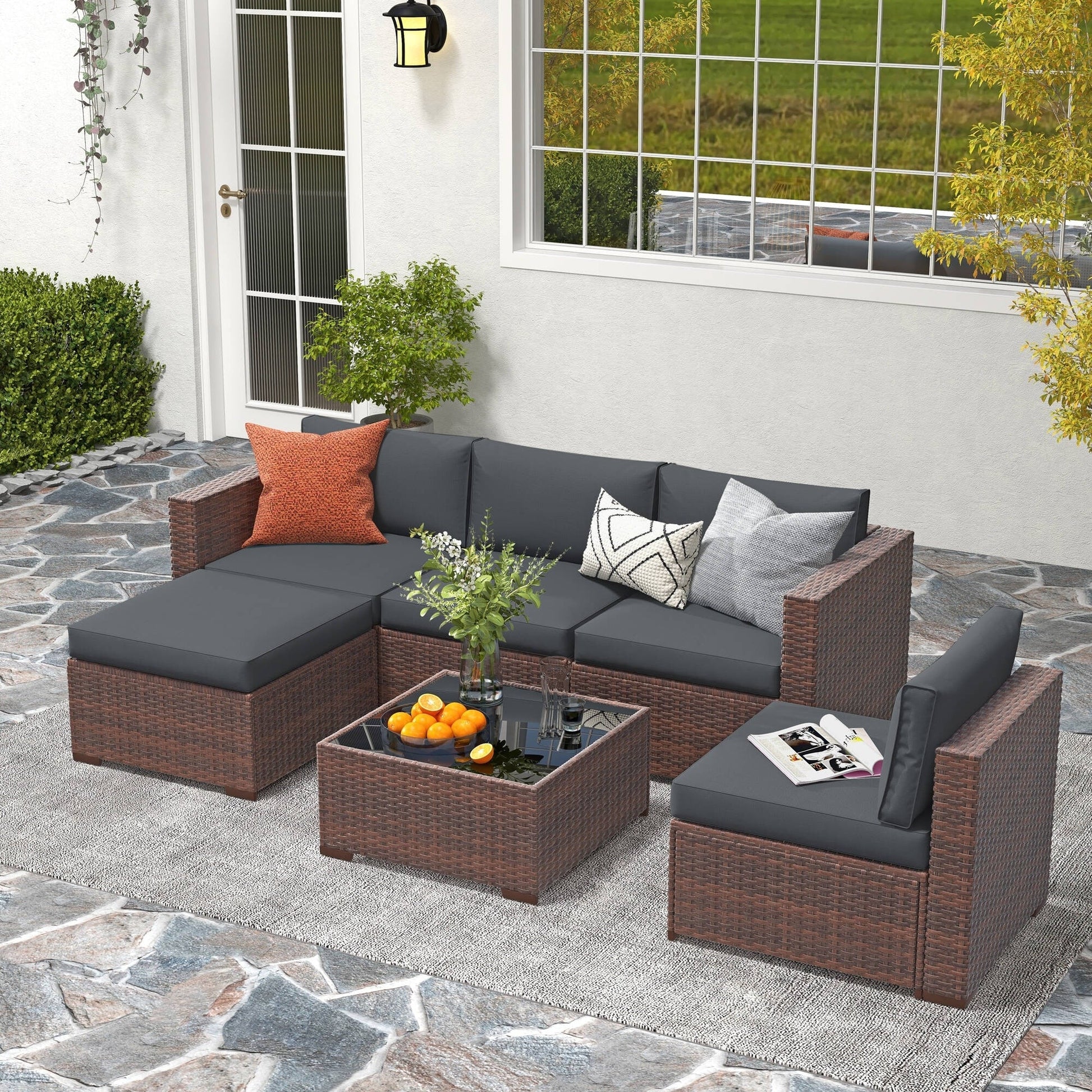 Set di divani componibili in vimini da esterno da 6 pezzi