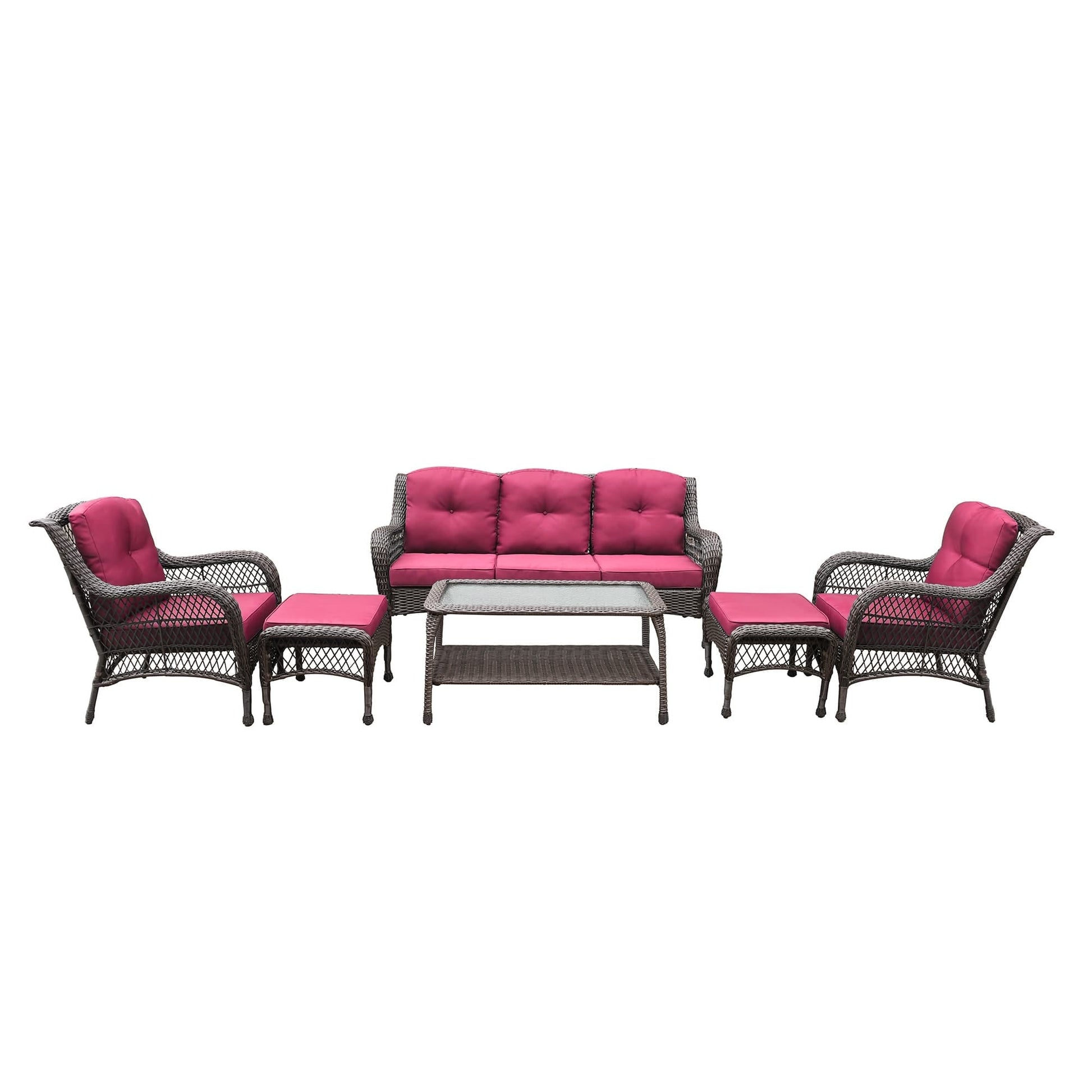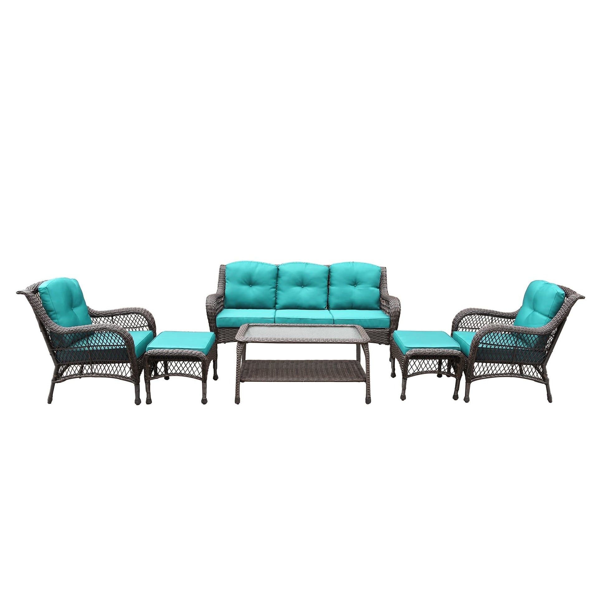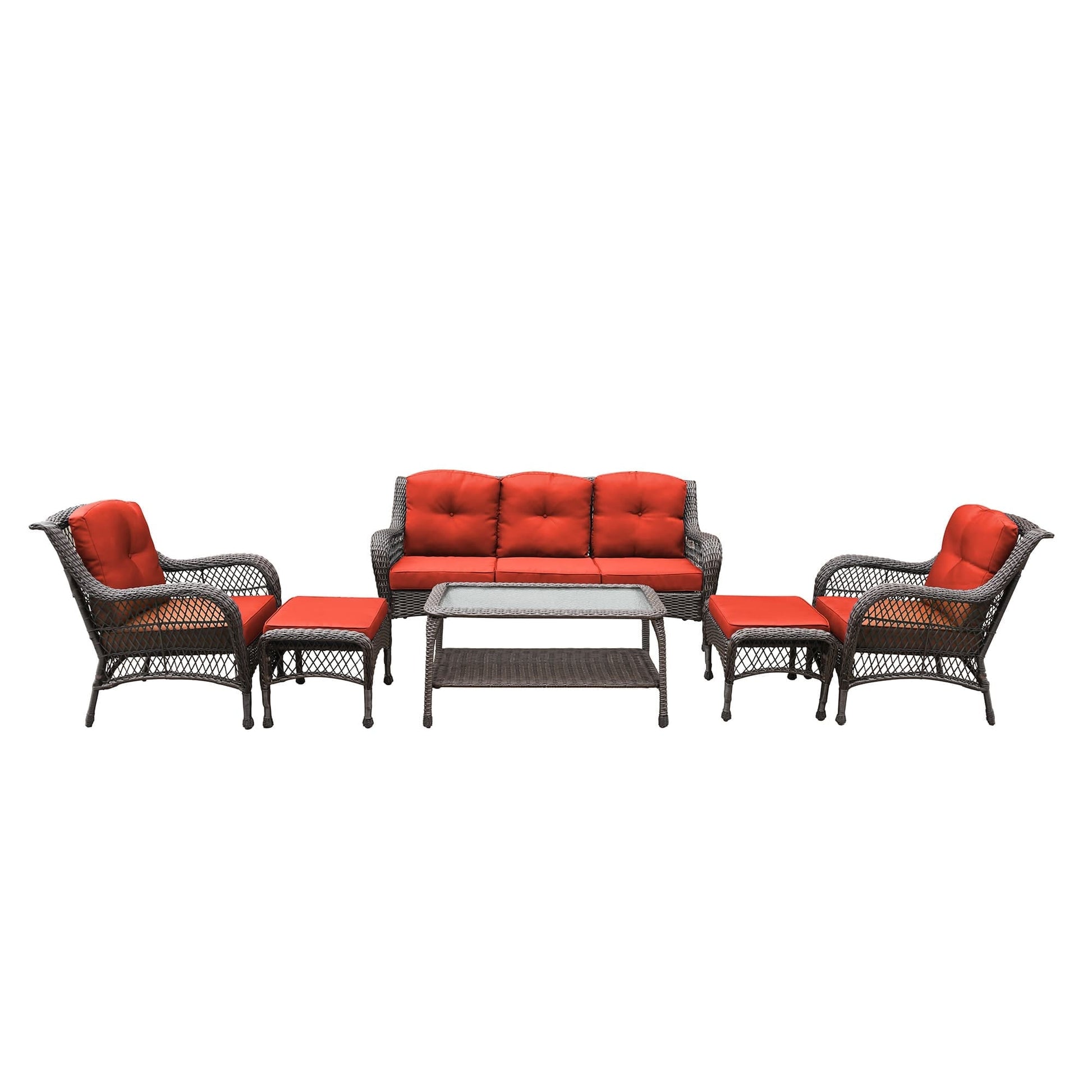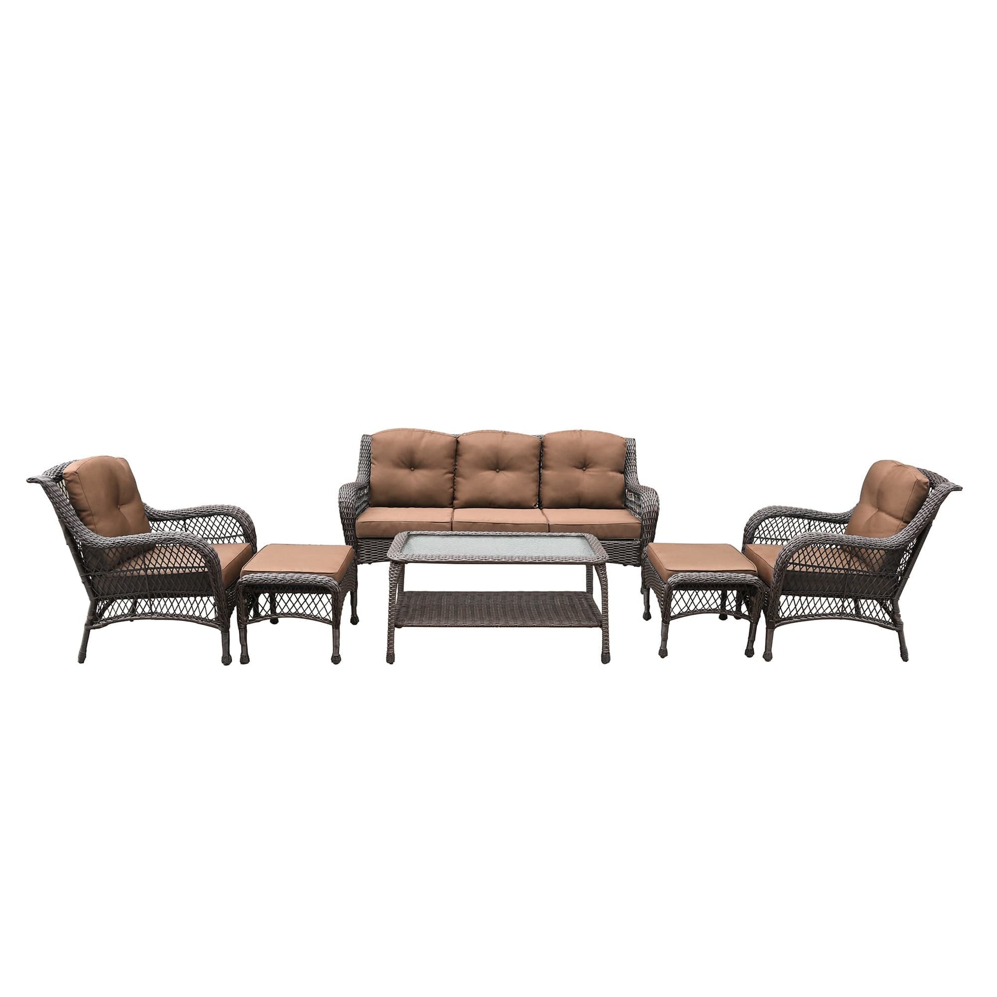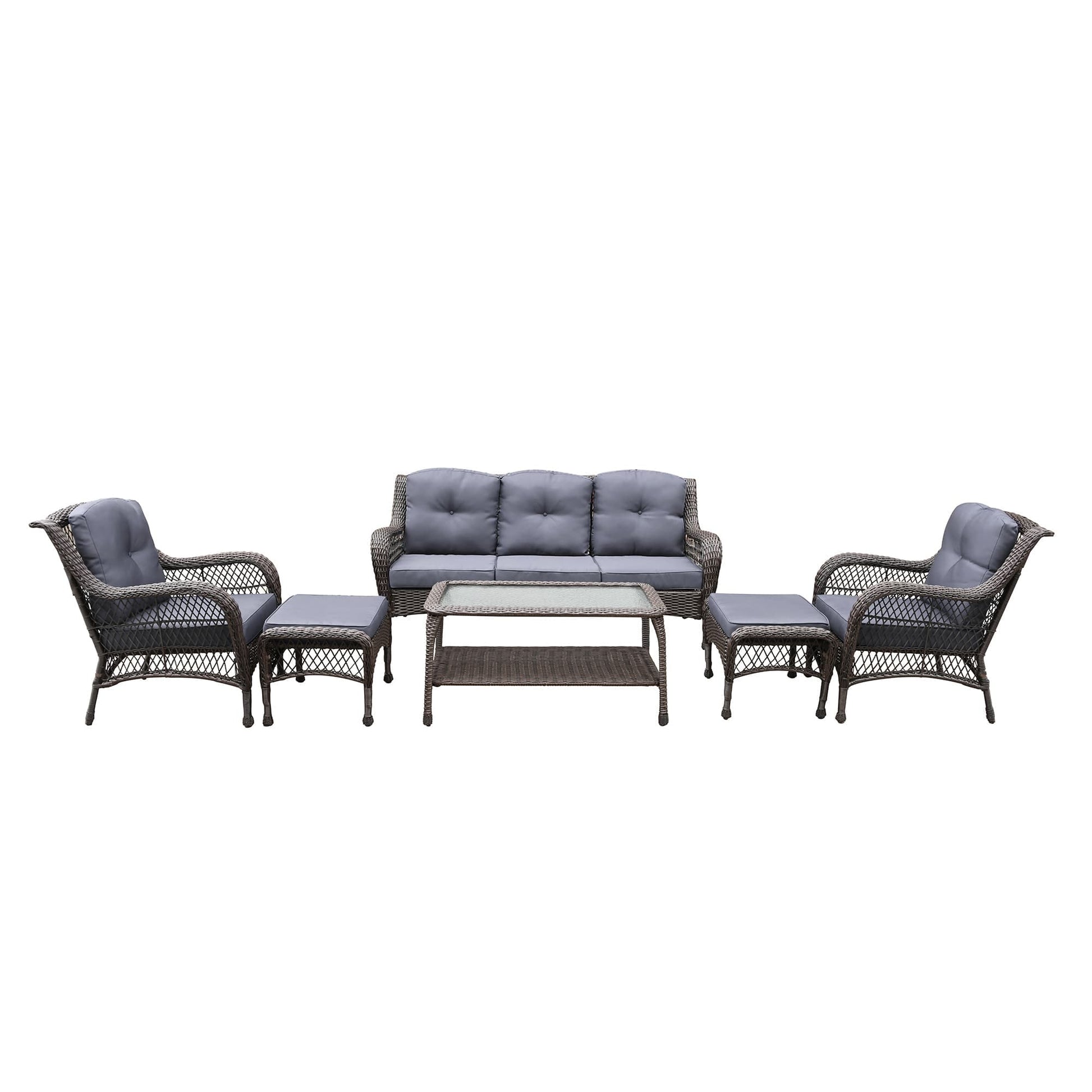Set da conversazione con mobili da giardino in vimini e resina da 6 pezzi con schienale alto