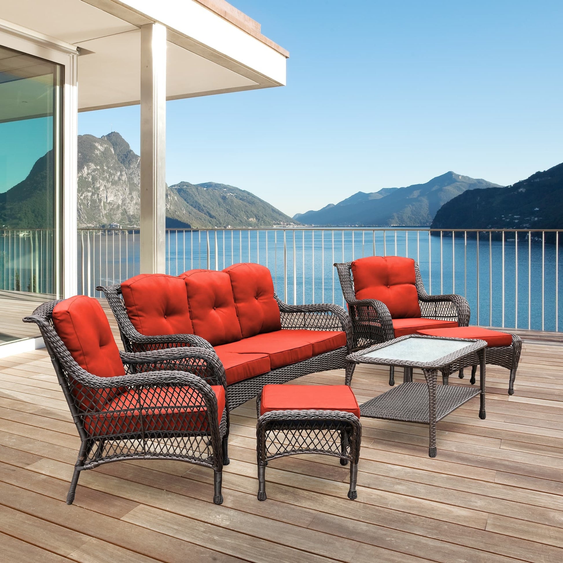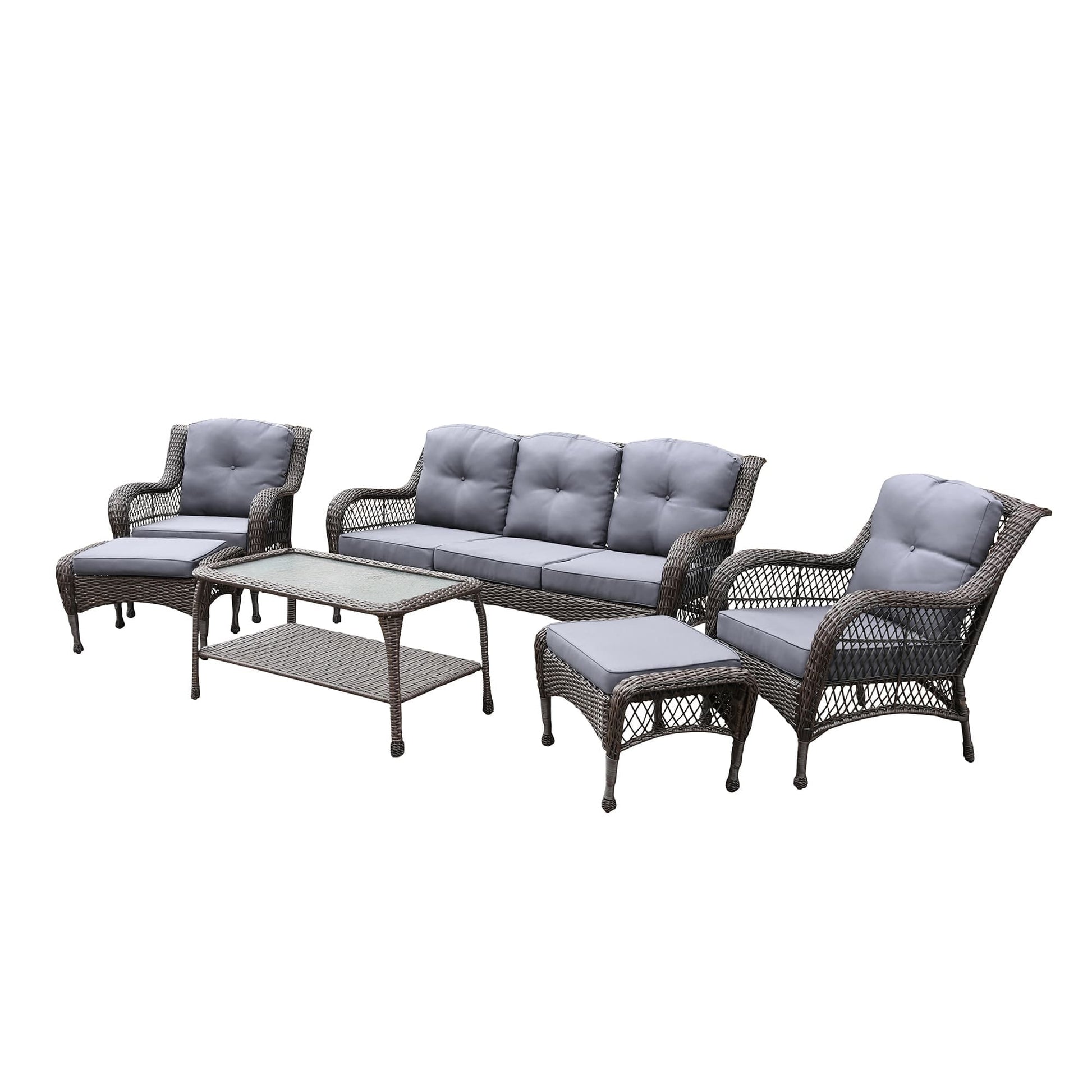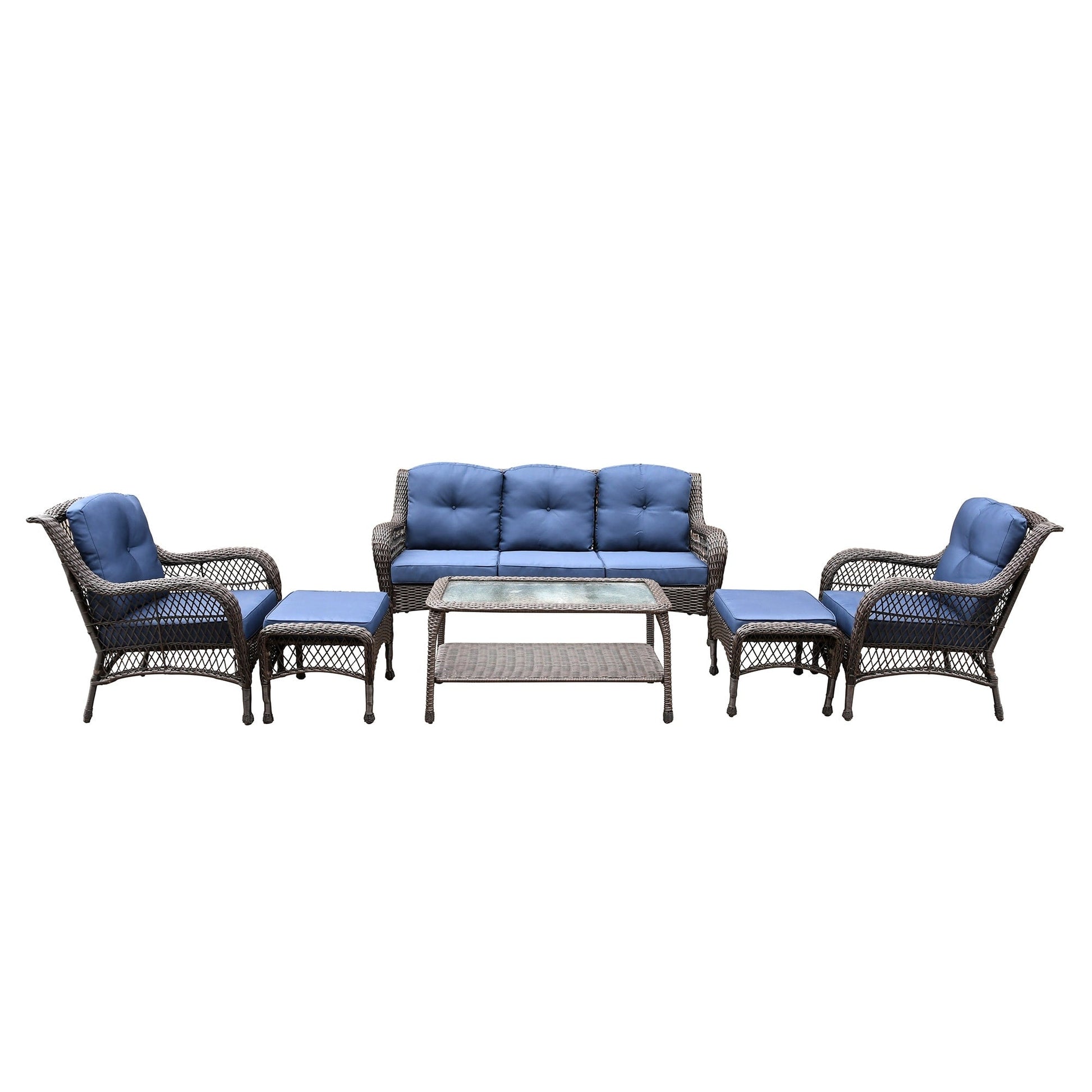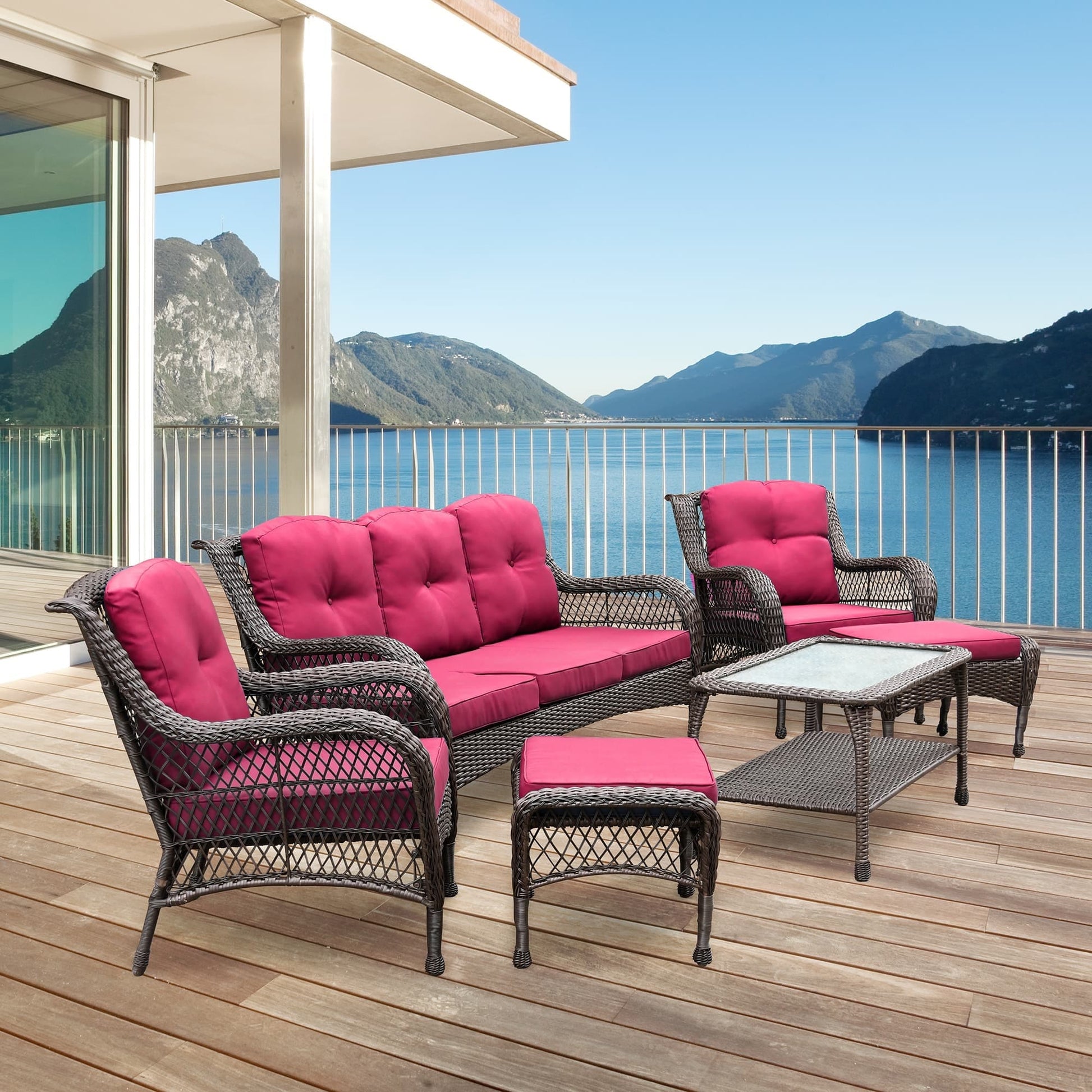 Set da conversazione con mobili da giardino in vimini e resina da 6 pezzi con schienale alto