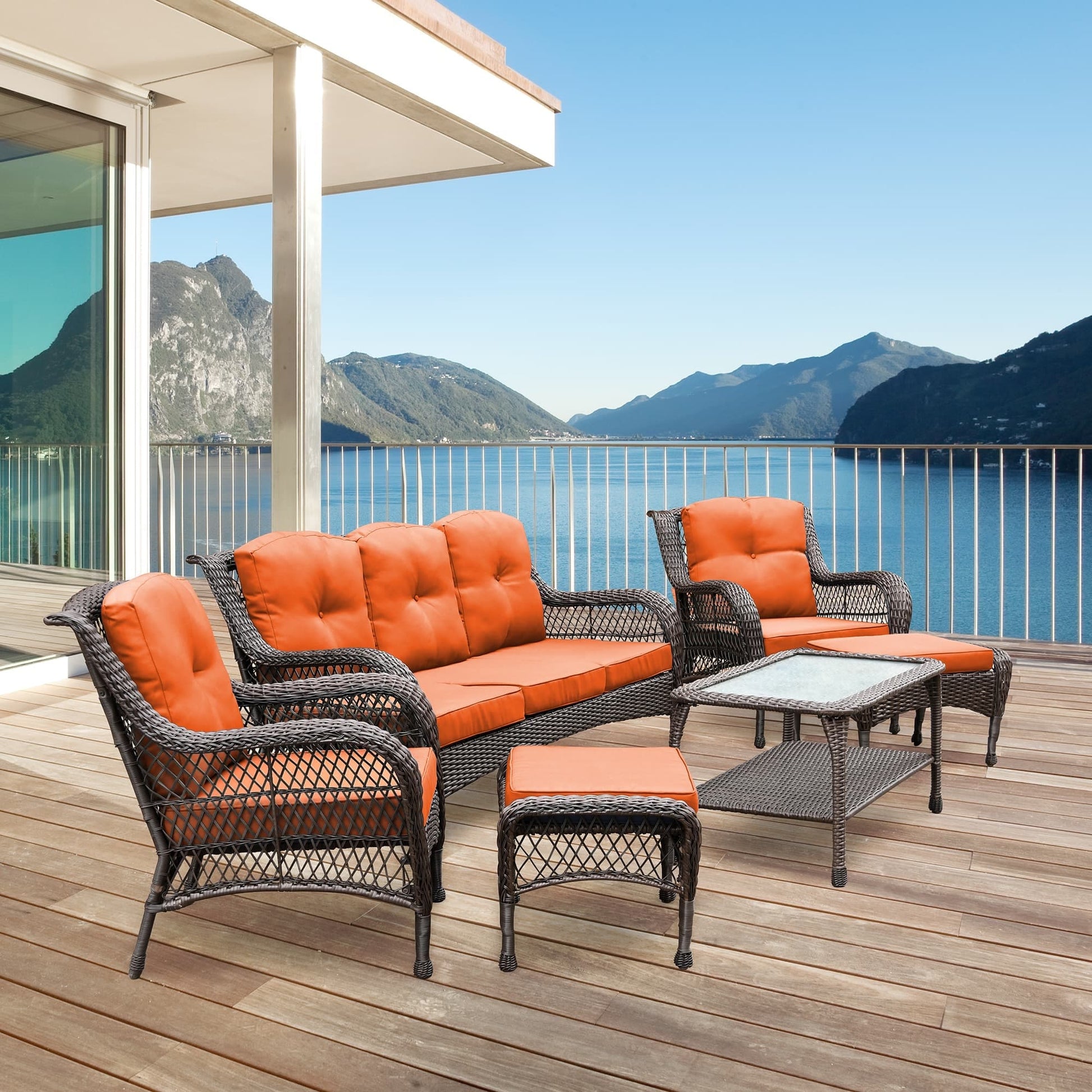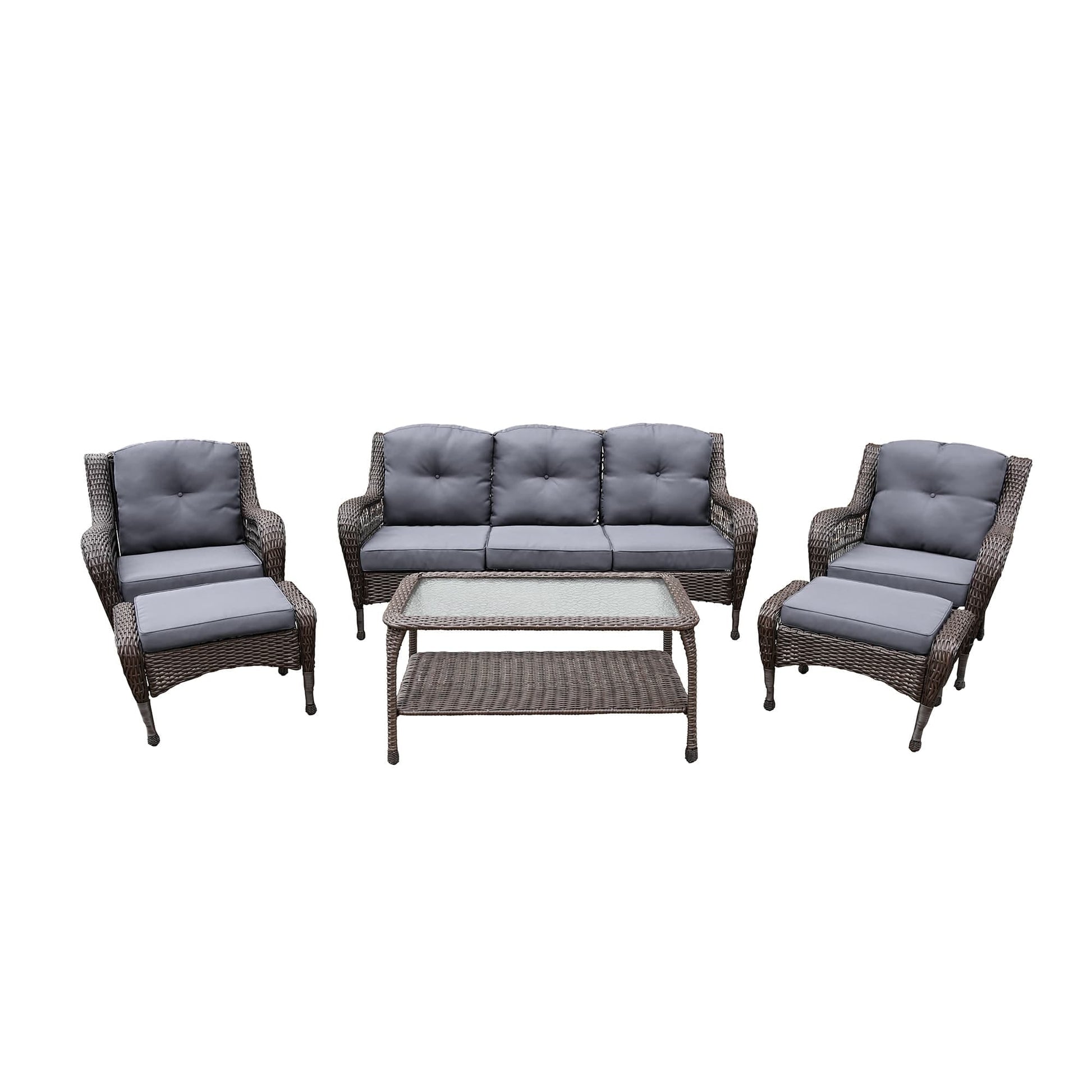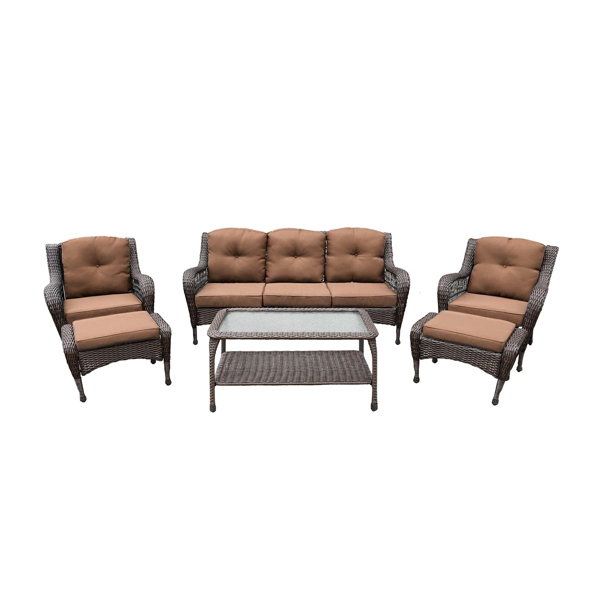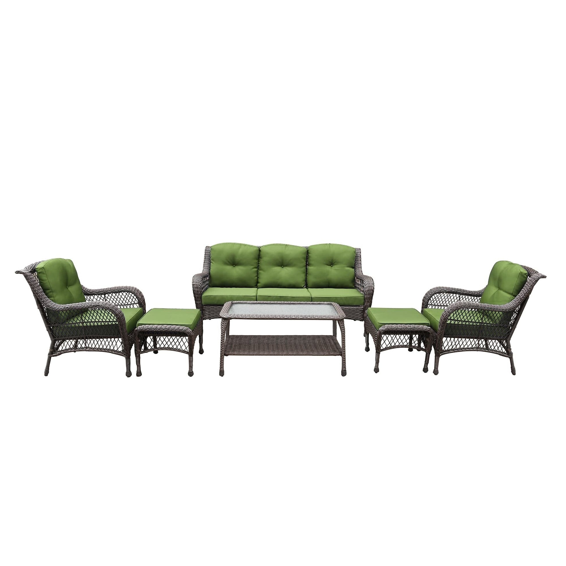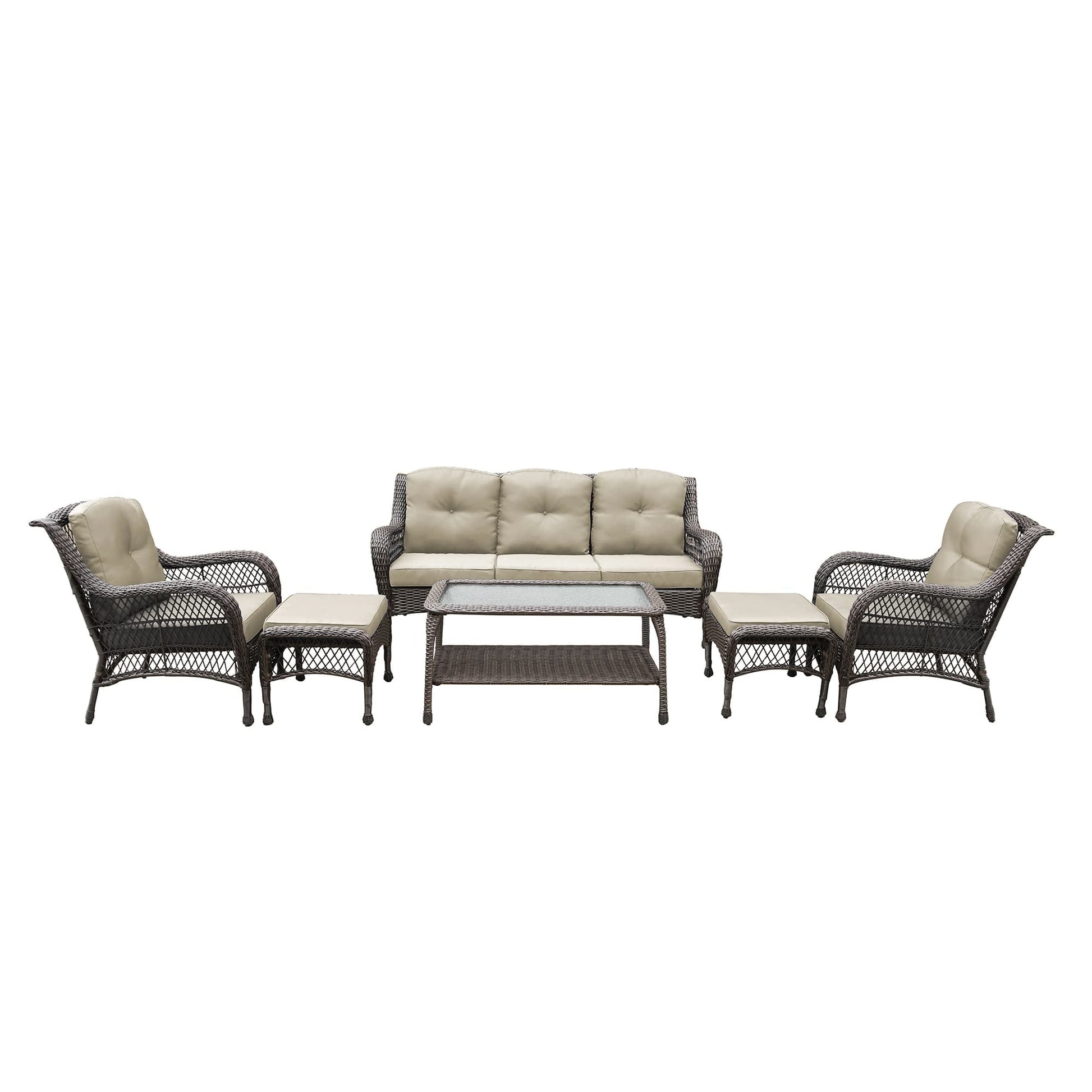 Set da conversazione con mobili da giardino in vimini e resina da 6 pezzi con schienale alto