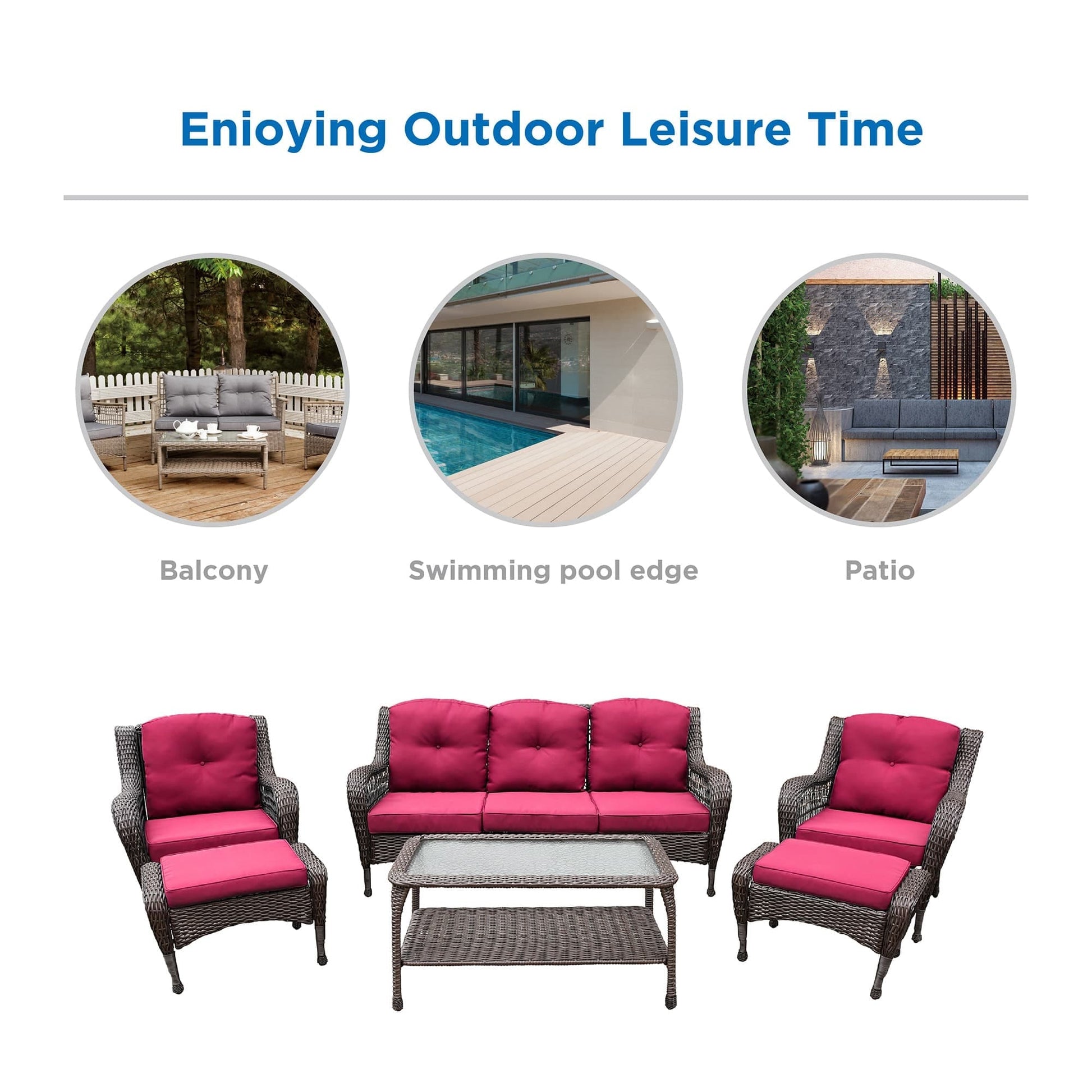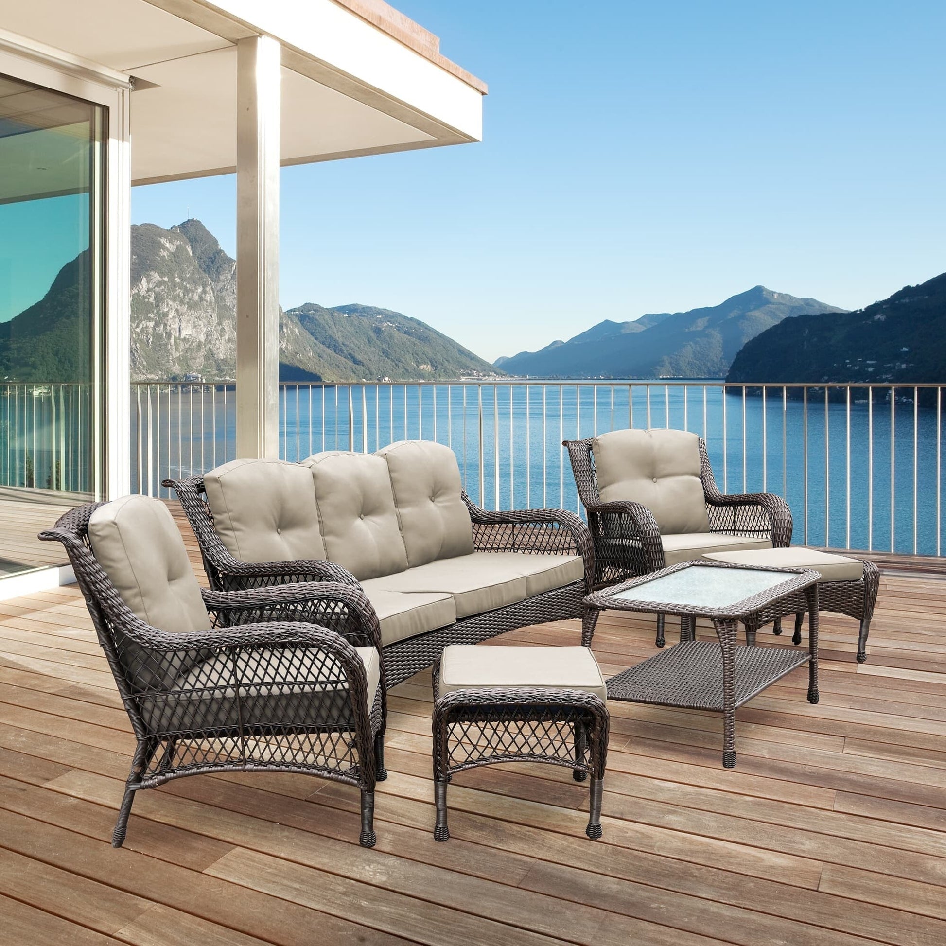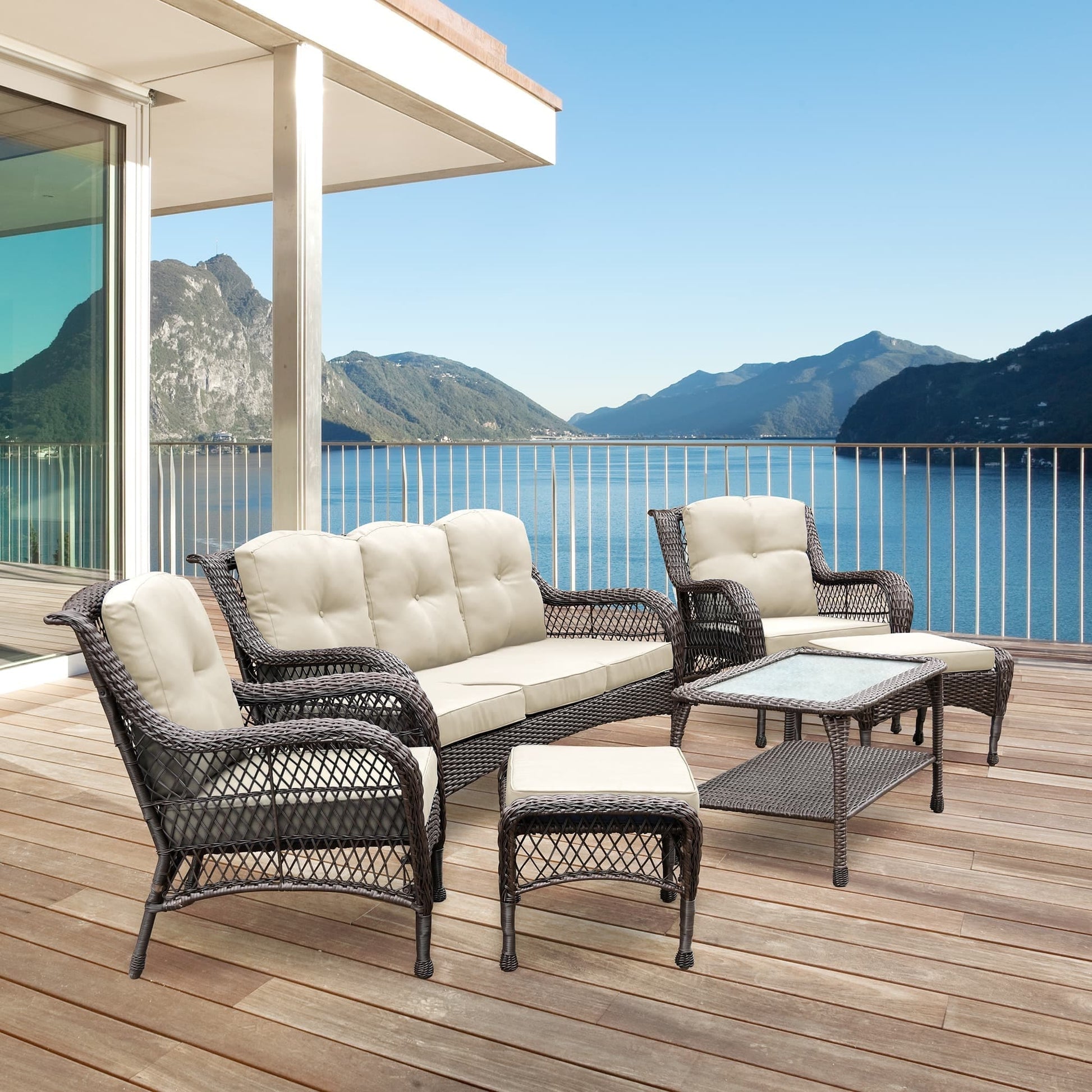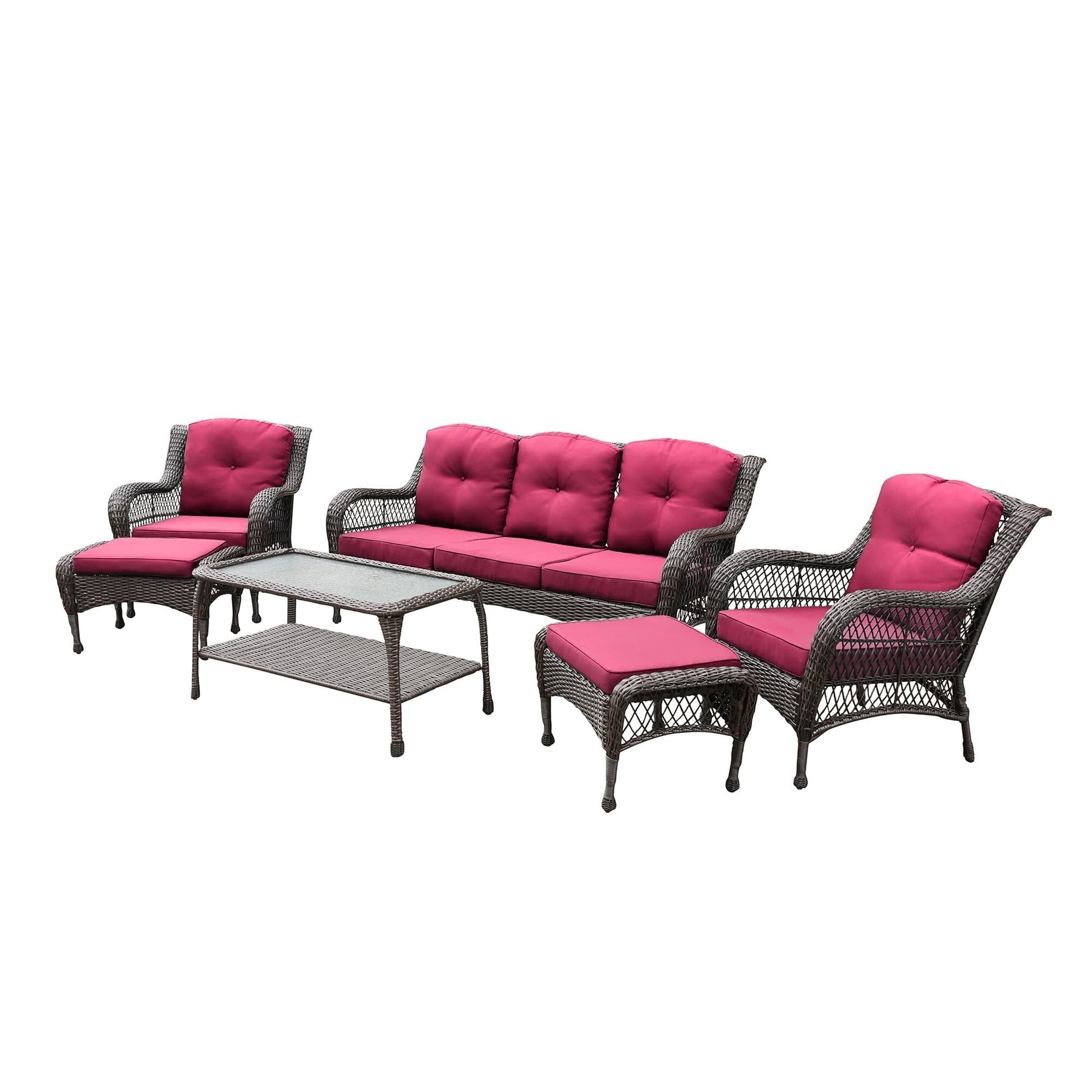 Set da conversazione con mobili da giardino in vimini e resina da 6 pezzi con schienale alto