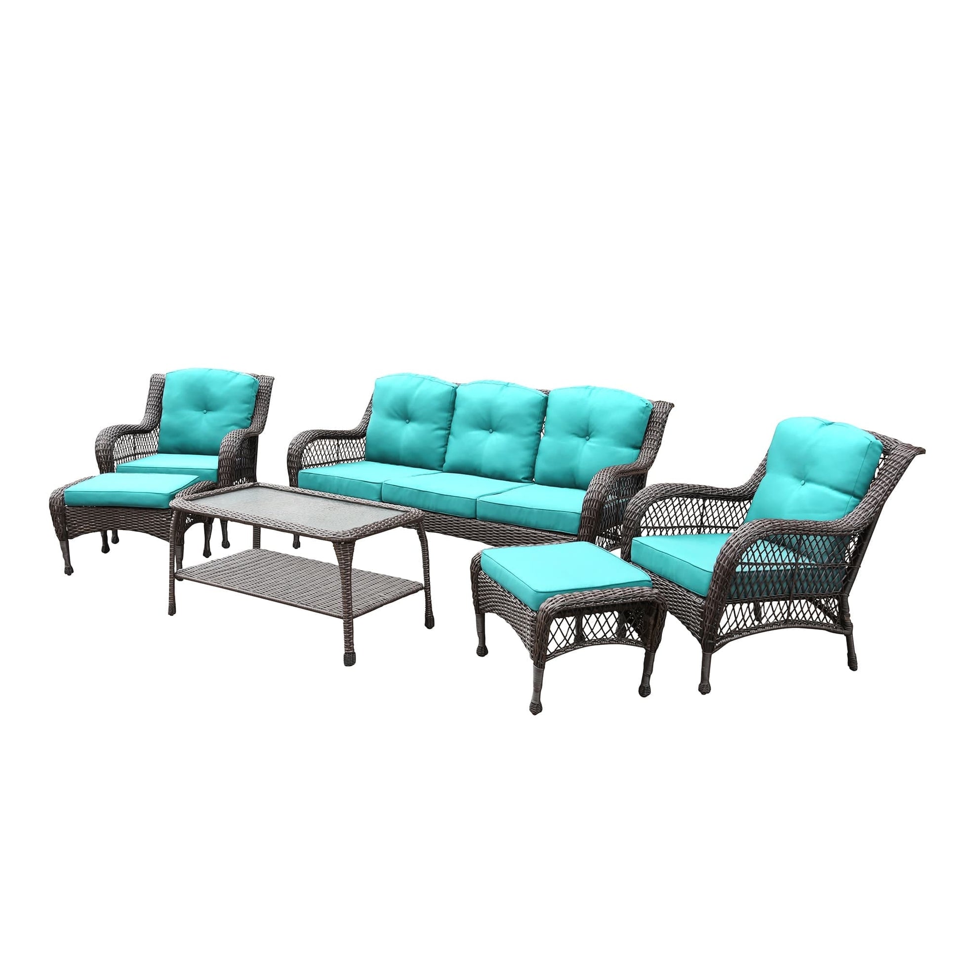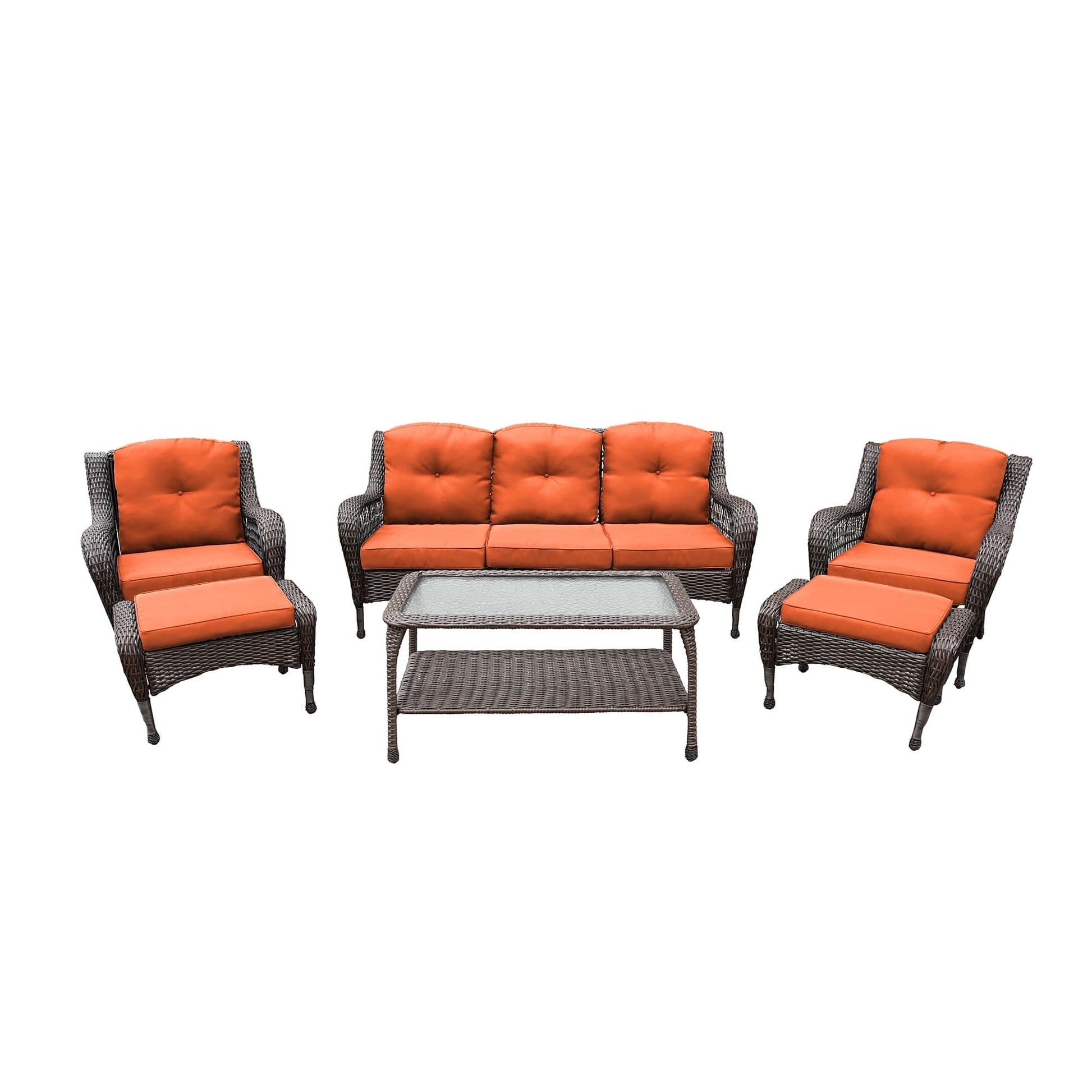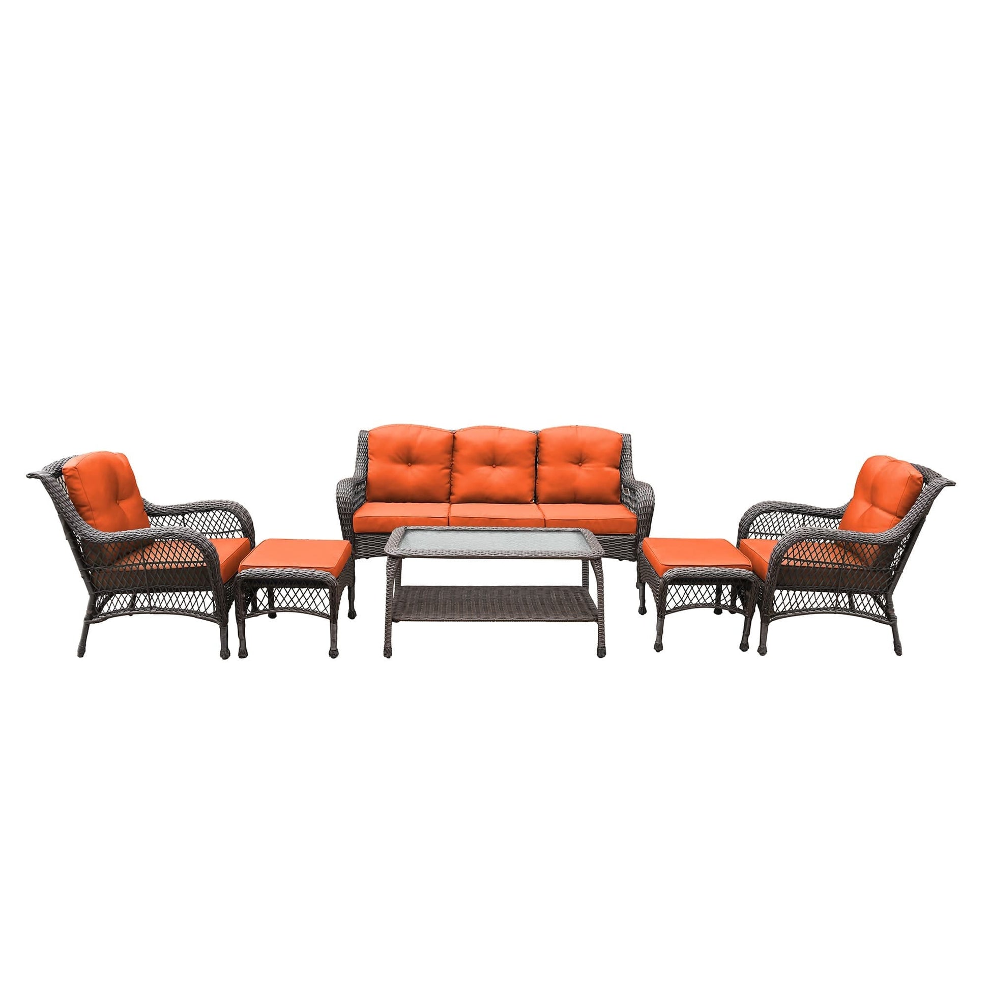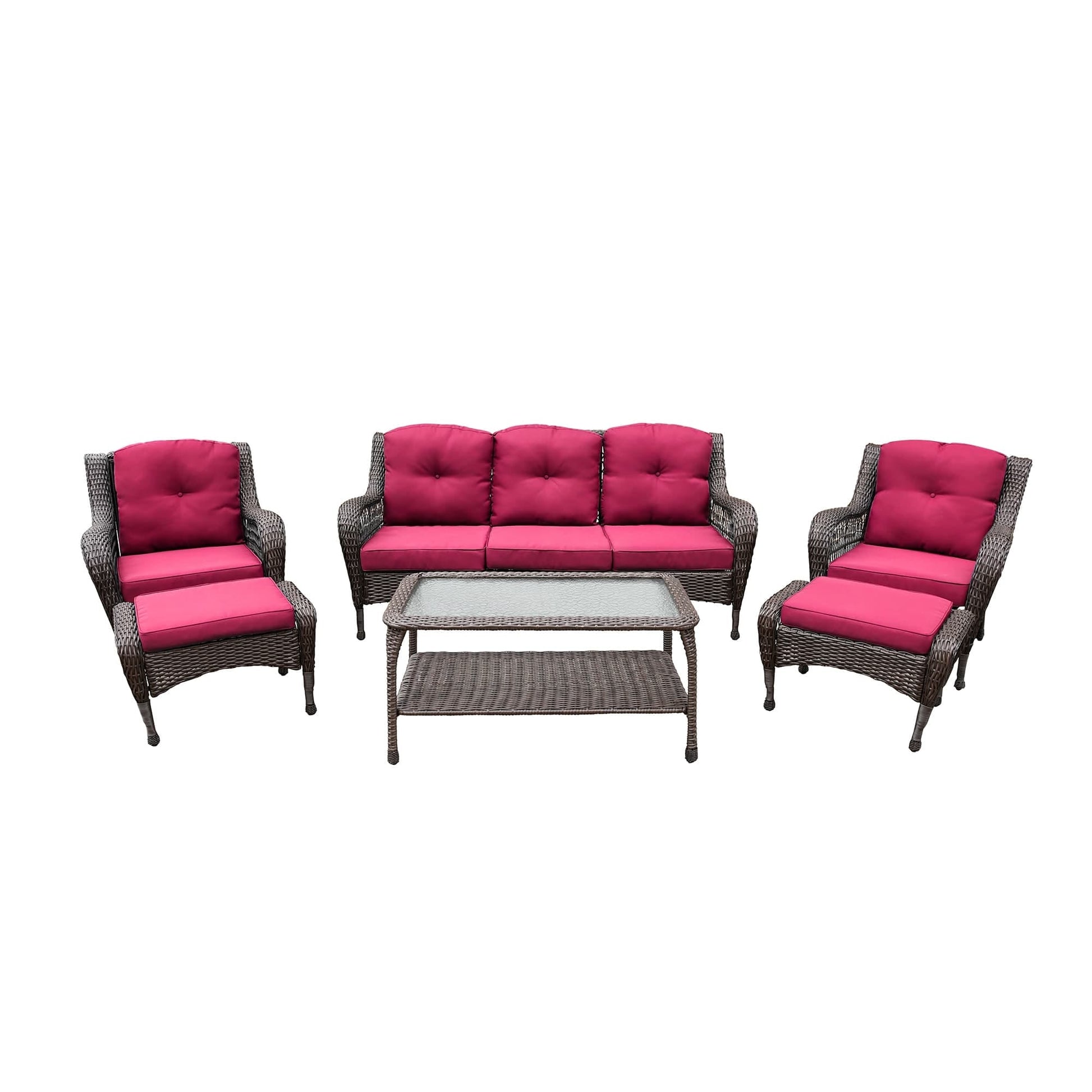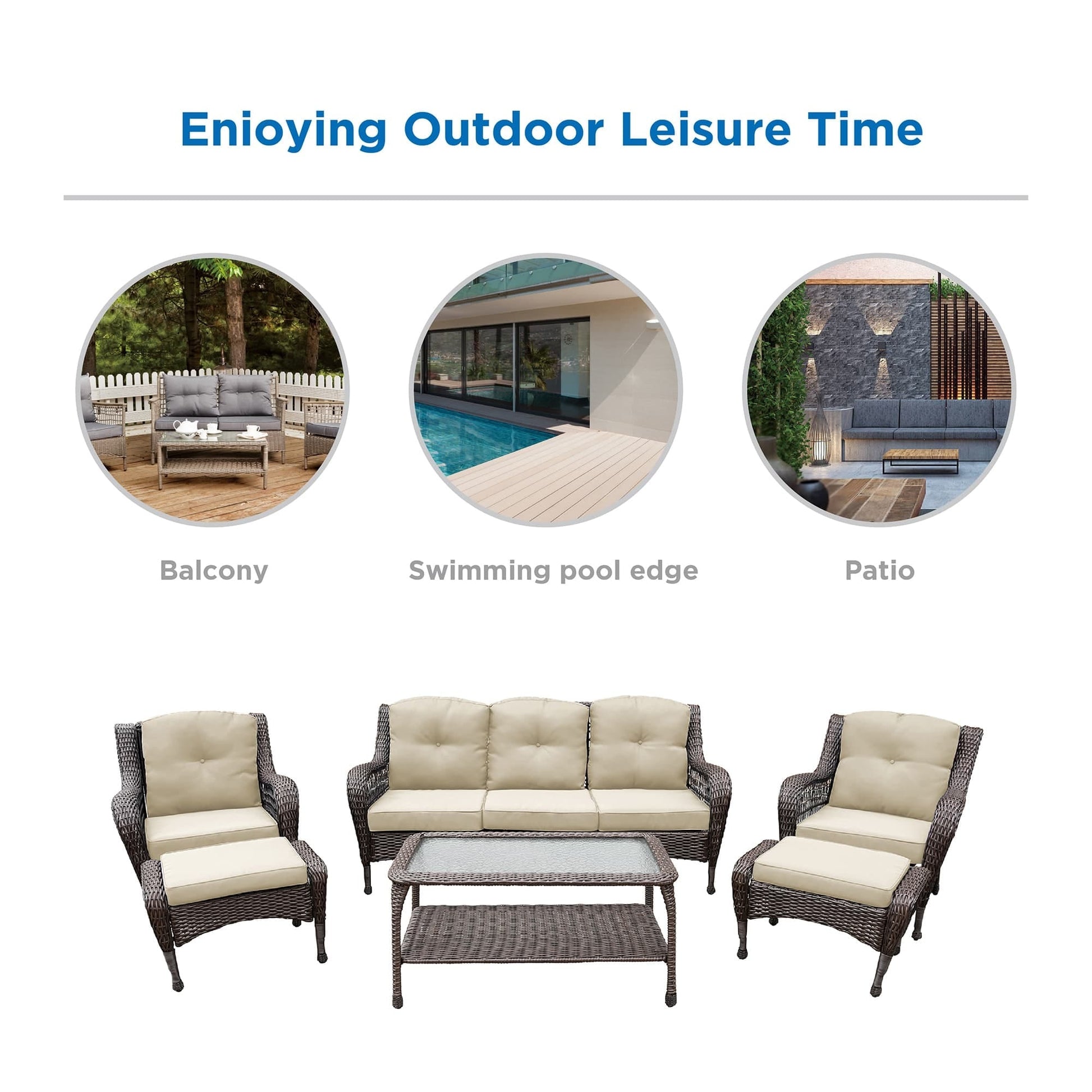 Set da conversazione con mobili da giardino in vimini e resina da 6 pezzi con schienale alto