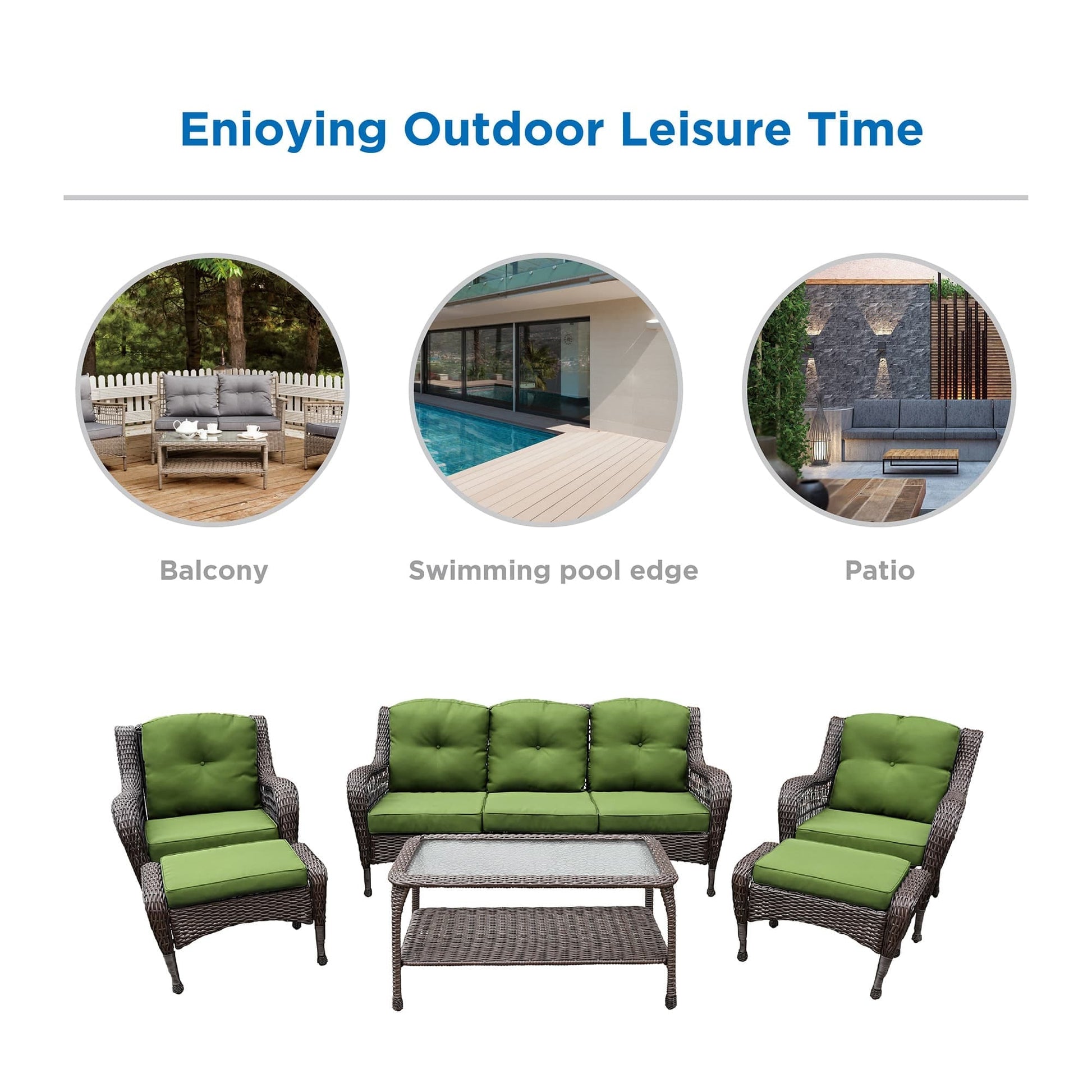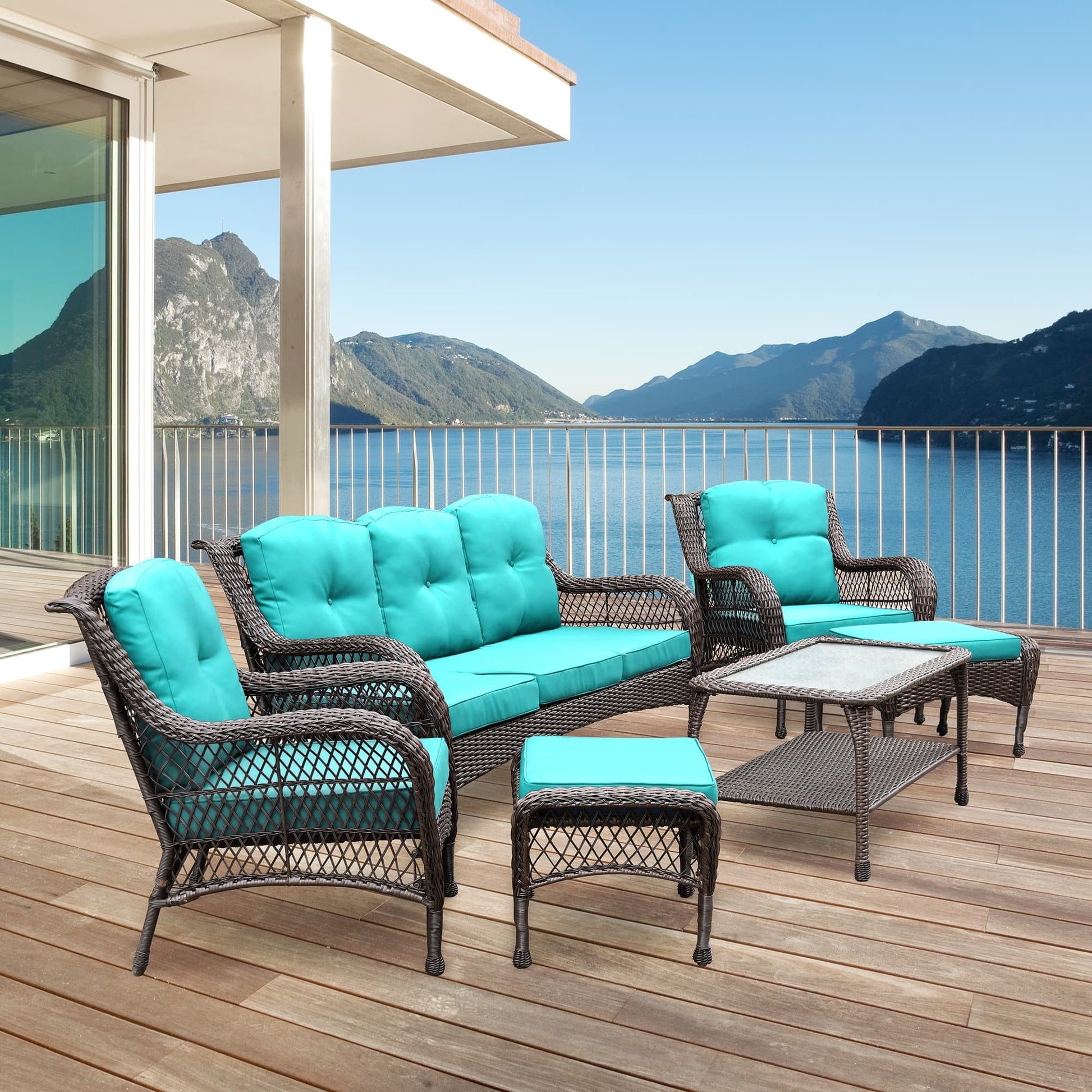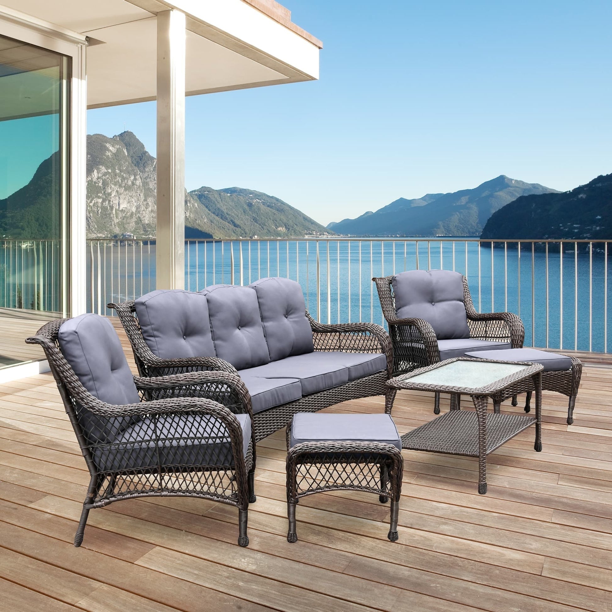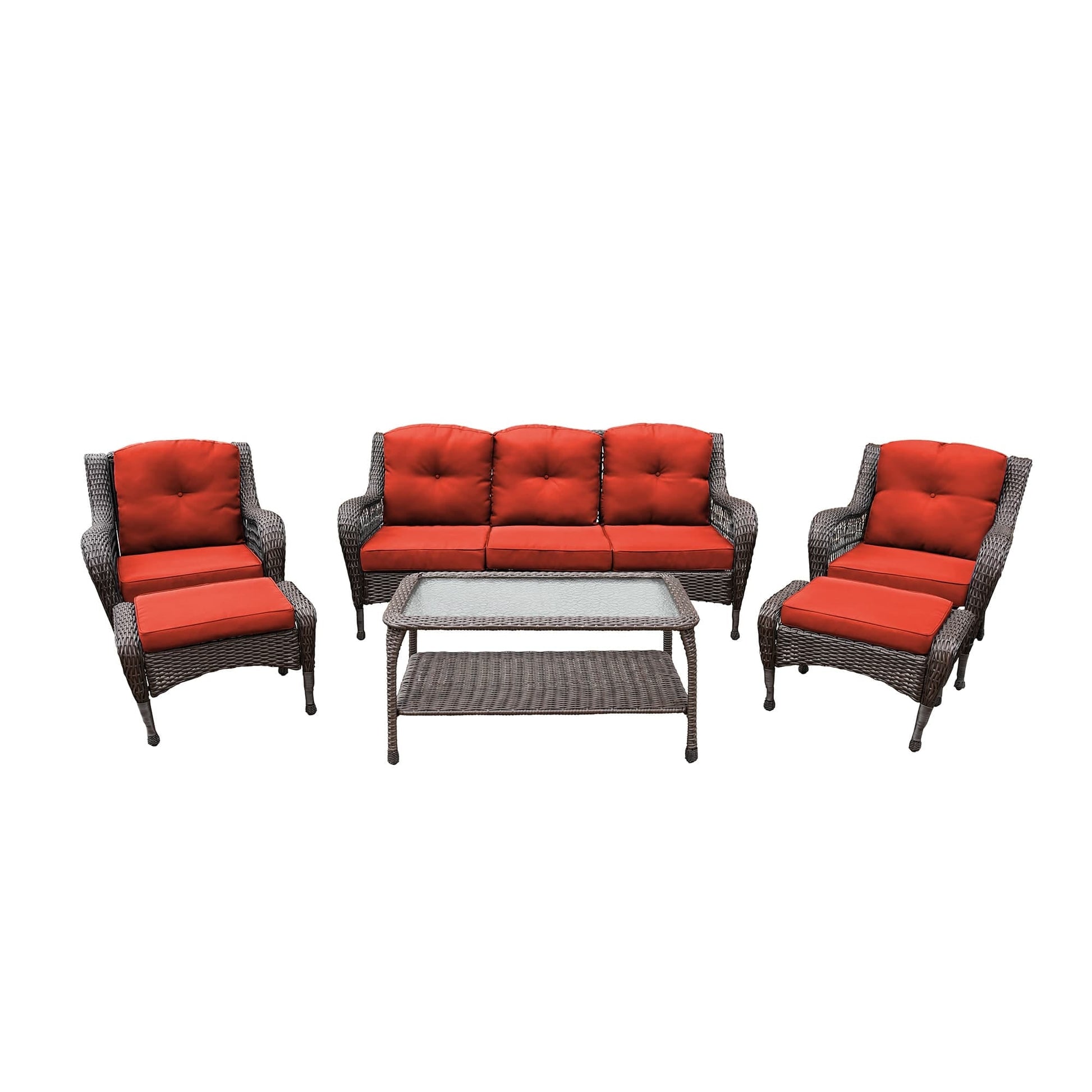 Set da conversazione con mobili da giardino in vimini e resina da 6 pezzi con schienale alto