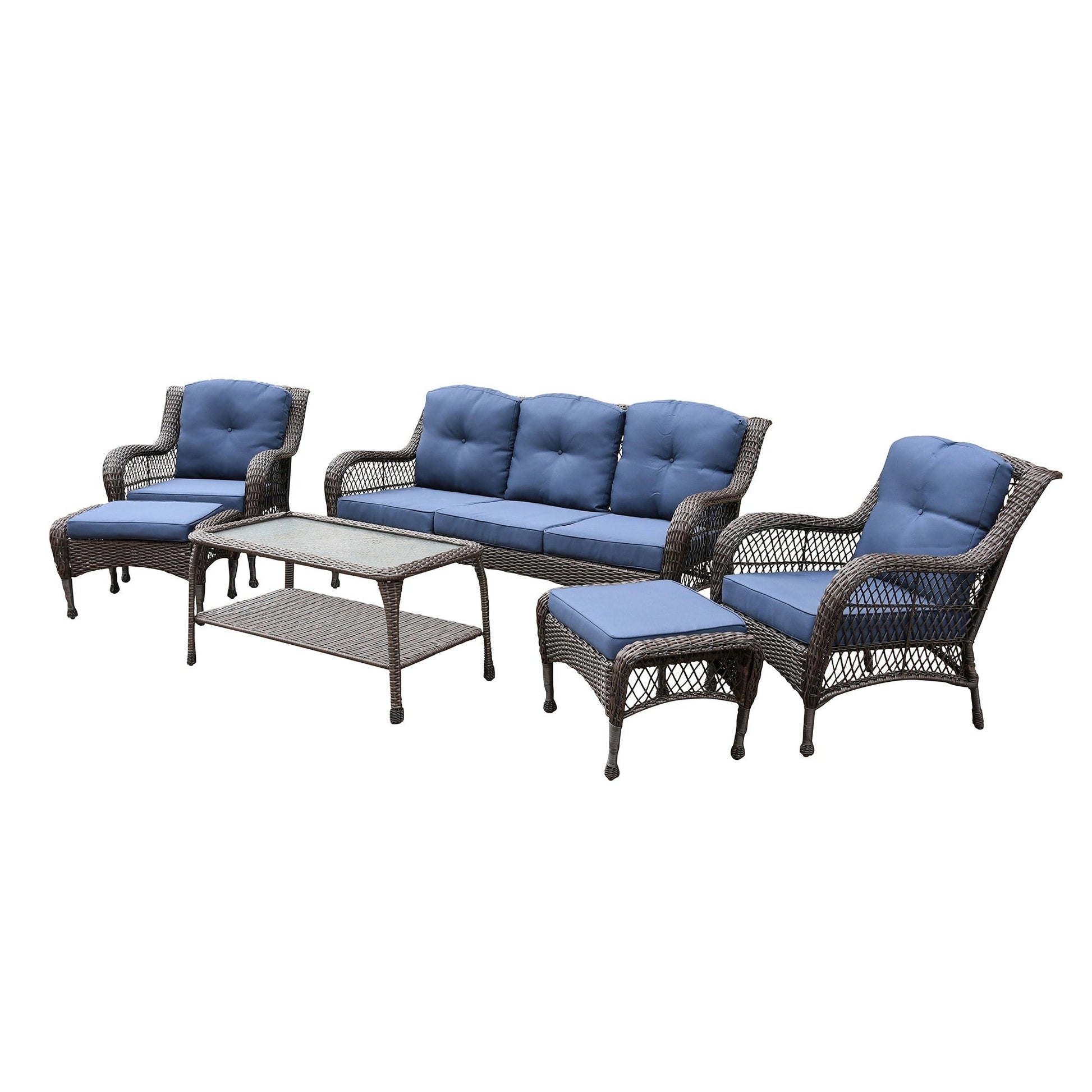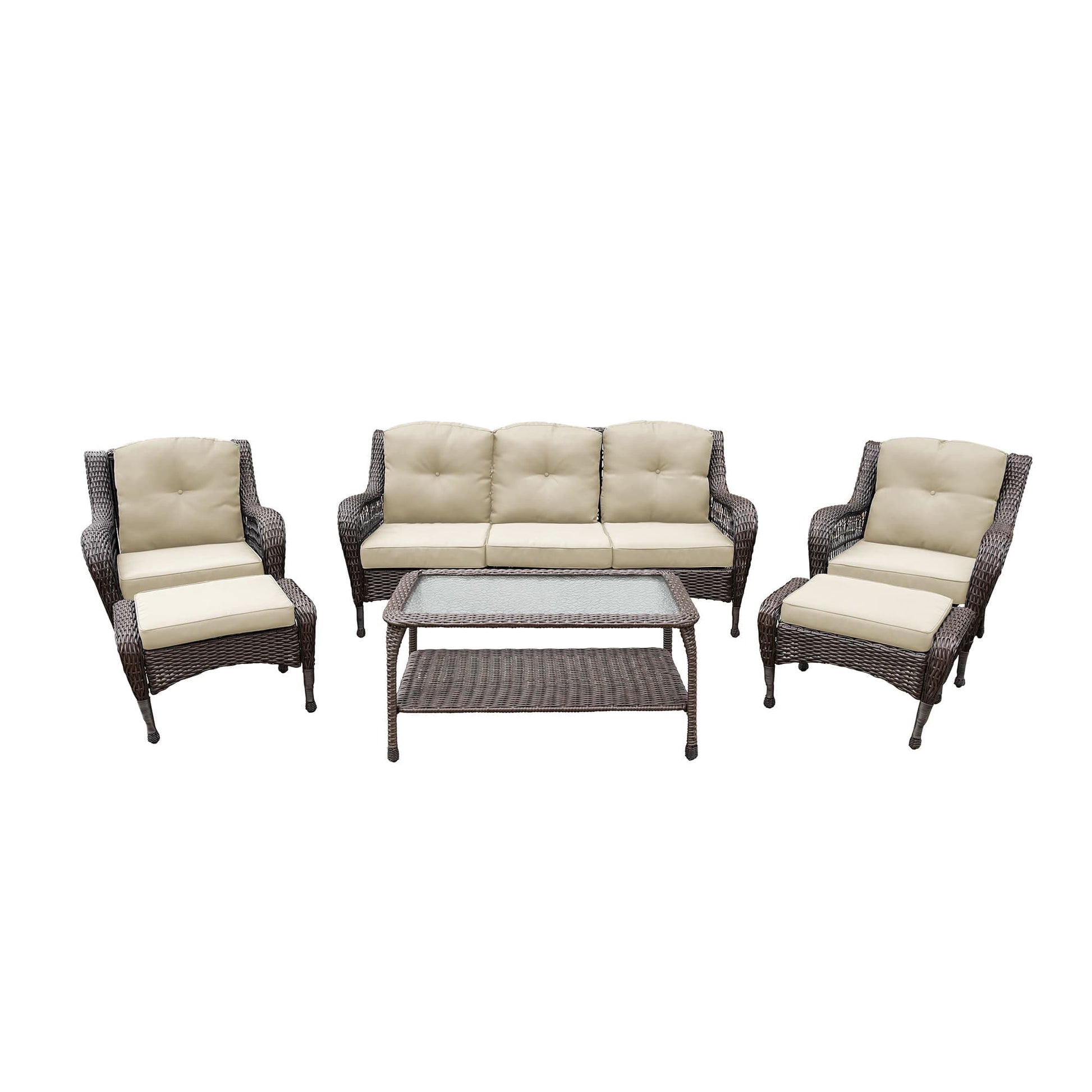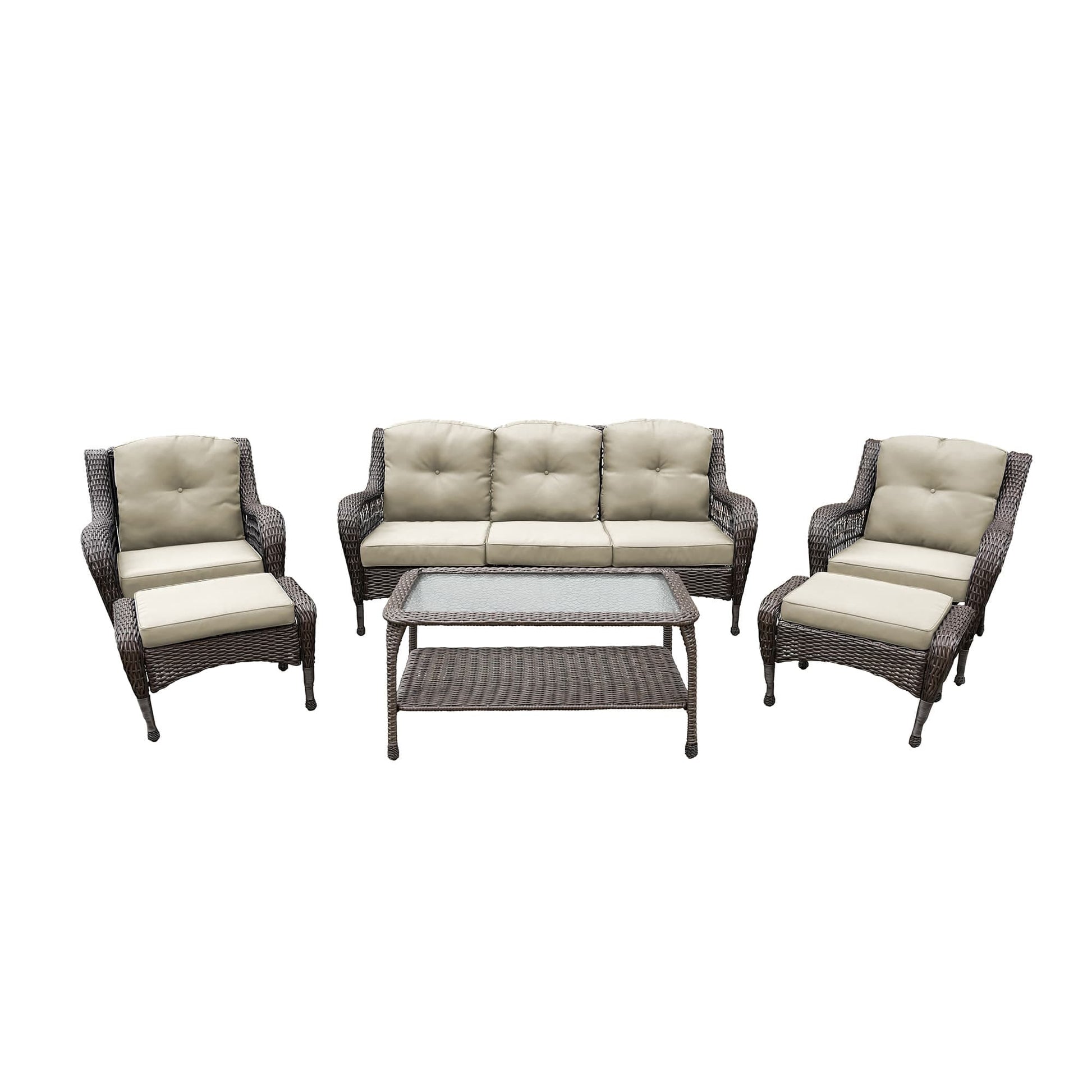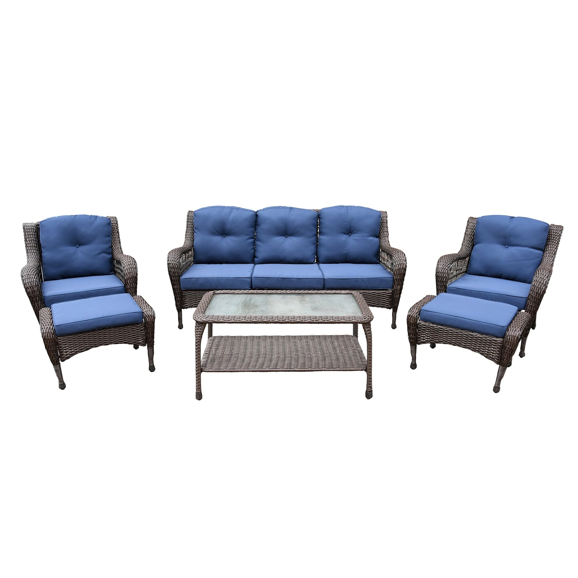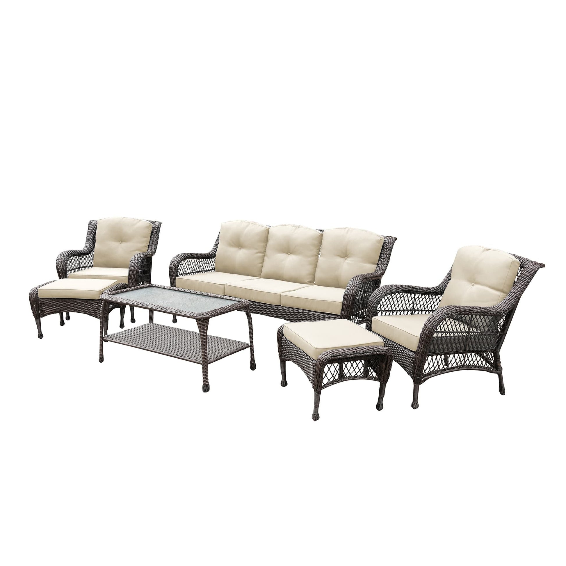 Set da conversazione con mobili da giardino in vimini e resina da 6 pezzi con schienale alto