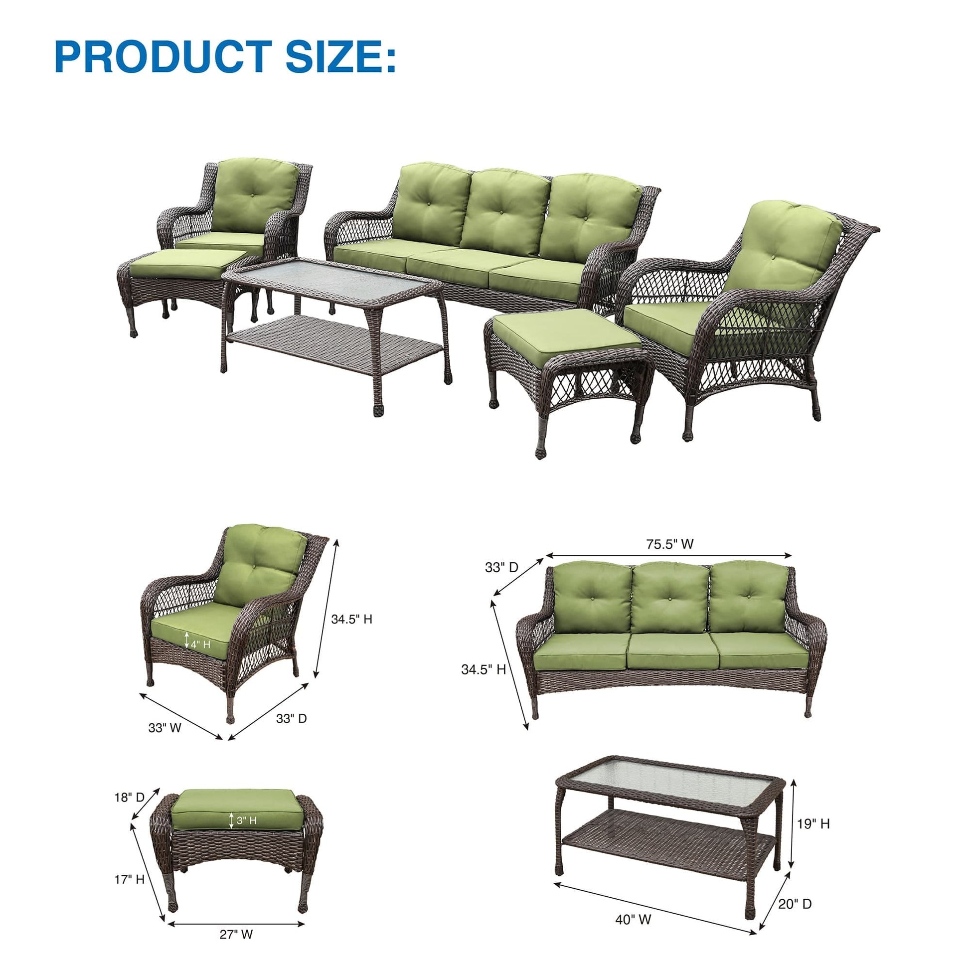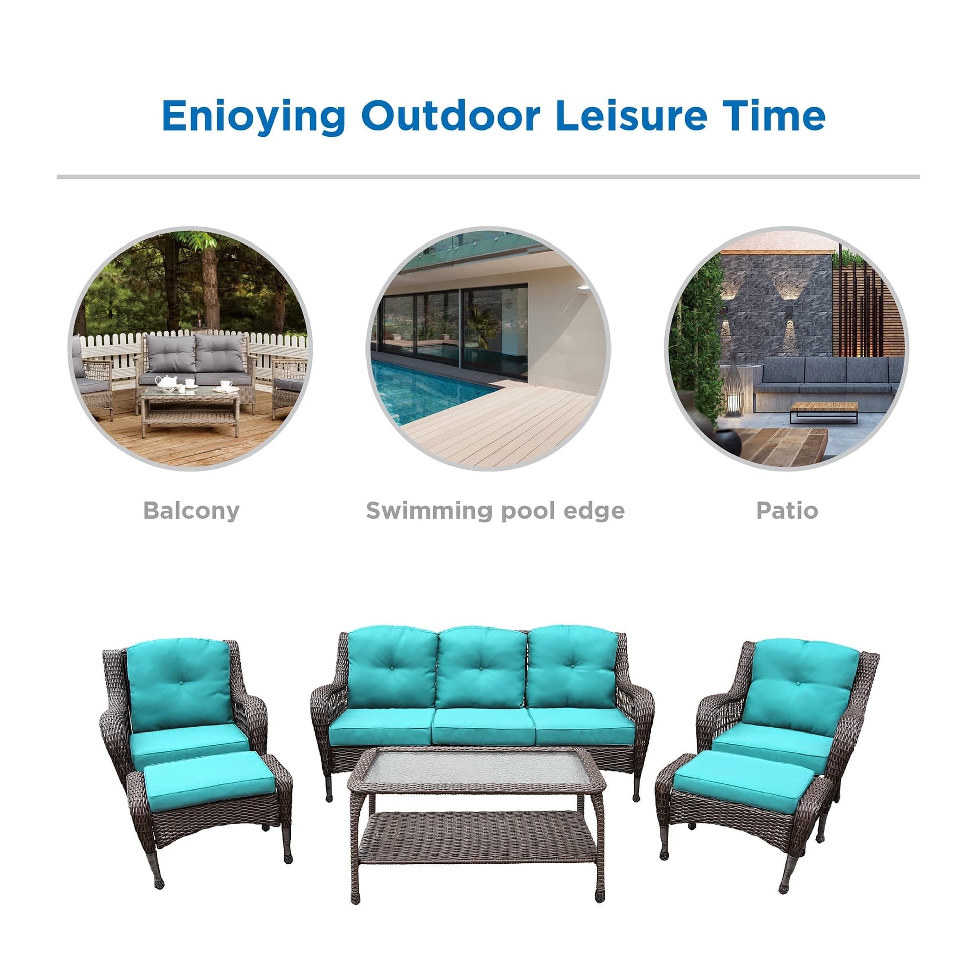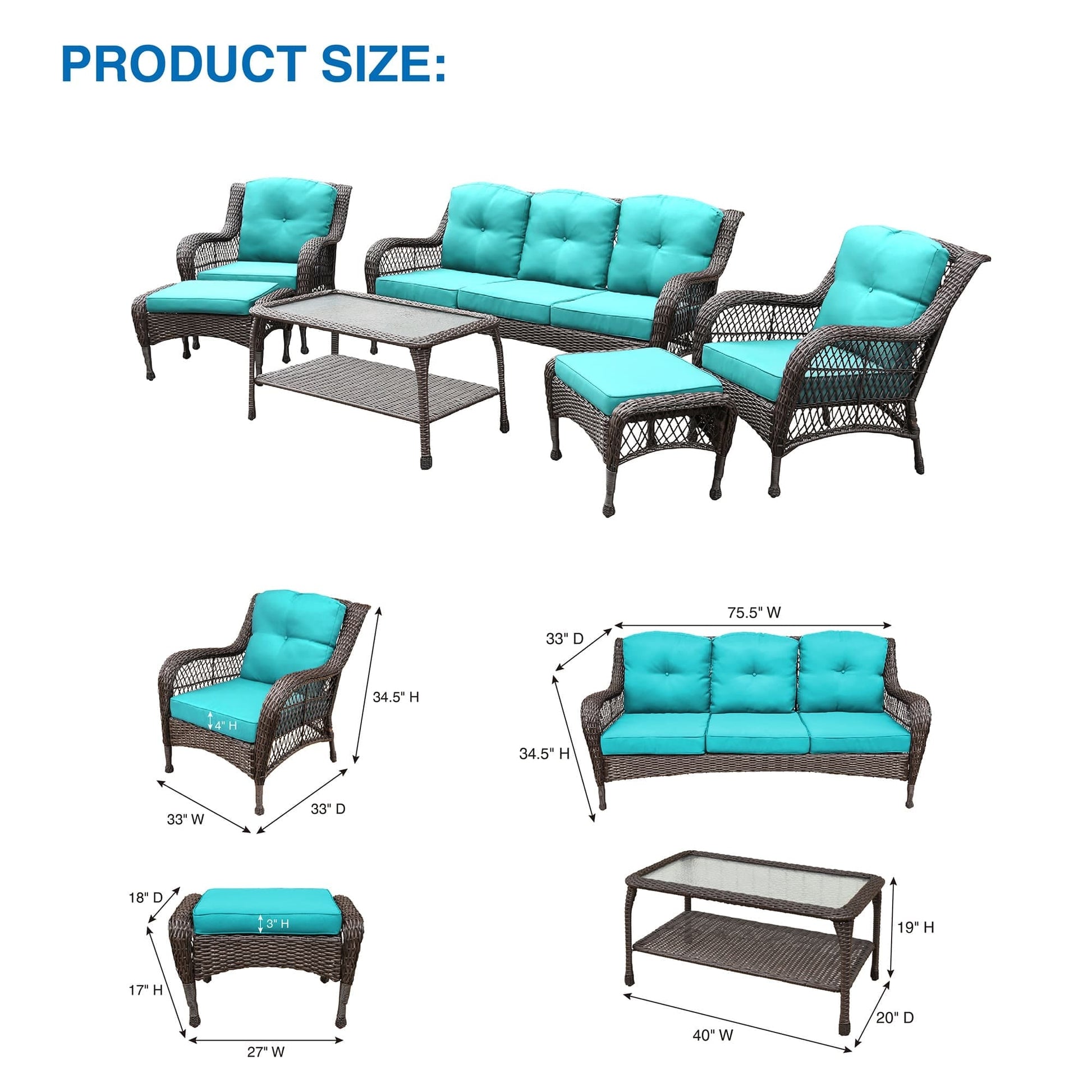 • Il set da 6 pezzi include 1 divano, 2 poltrone, 2 pouf e 1 tavolino da caffè