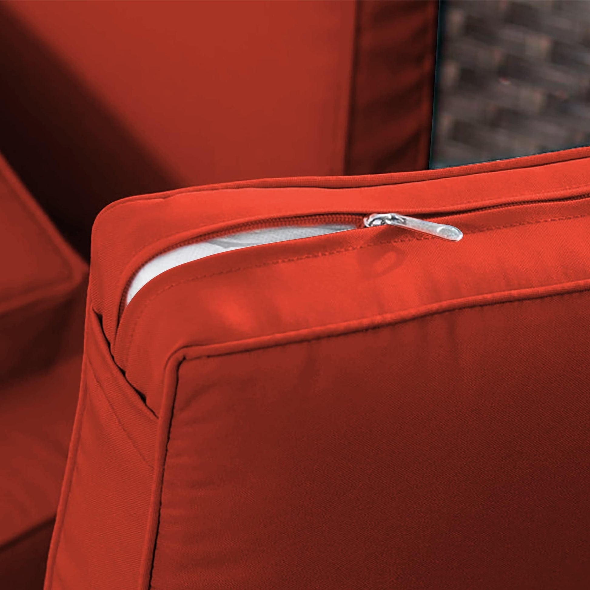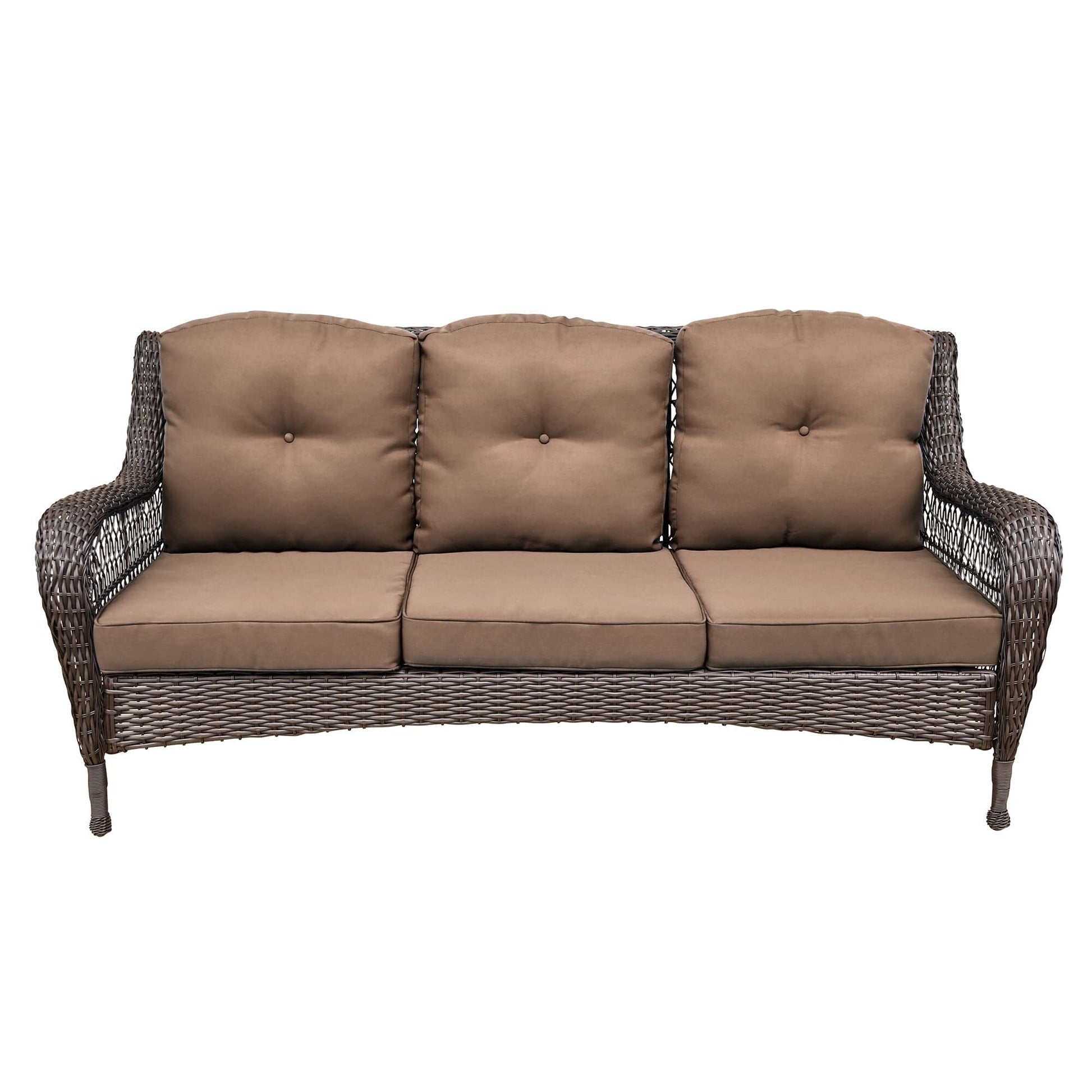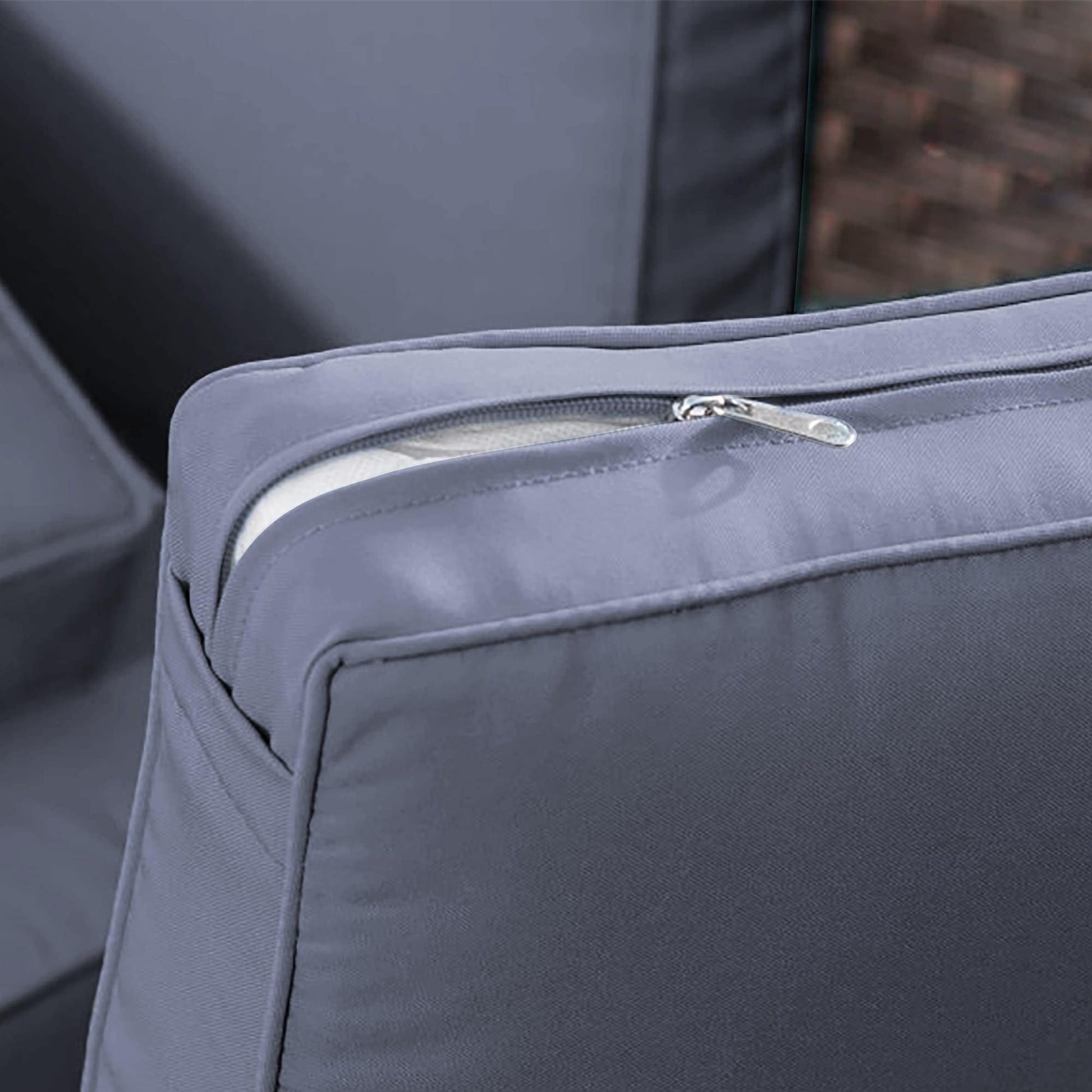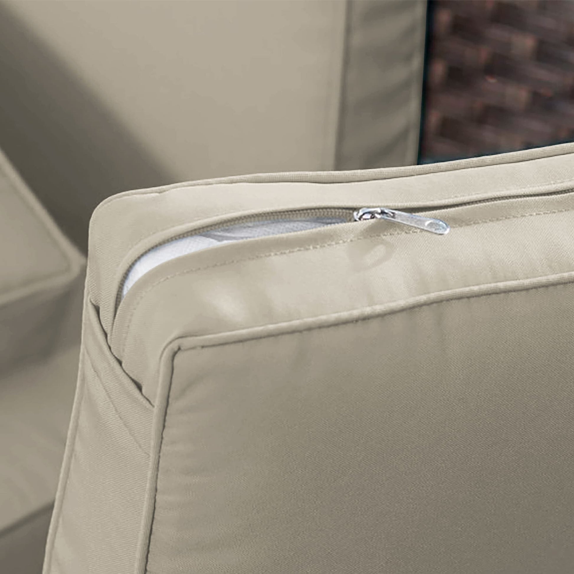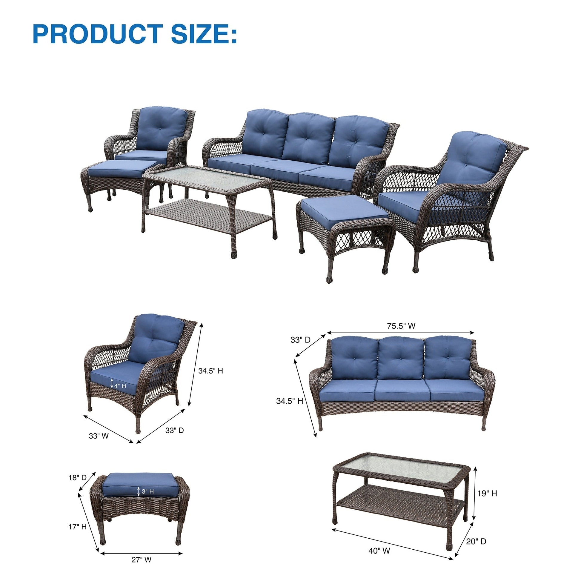 Godetevi l'aria aperta in un comfort lussuoso con il nostro set da sei pezzi in resina e vimini da giardino con cuscini per lo schienale alto, perfetto per ospitare incontri intimi. Questo set comprende un divano, due poltrone, due pouf e un tavolino da caffè con piano in vetro, tutti intrecciati a mano con vimini di resina marrone scuro su robuste strutture in acciaio. I cuscini trapuntati a bottoni offrono il massimo comfort, mentre il design resistente alle intemperie e all'acqua consente di godersi l'aria aperta tutto l'anno. La fabbricazione artigianale di qualità commerciale garantisce la durevolezza, mentre la protezione UV garantisce la tenuta del colore. Godetevi il comfort aggiuntivo dei cuscini di seduta e schienale in spugna spessa e la praticità di un facile montaggio.