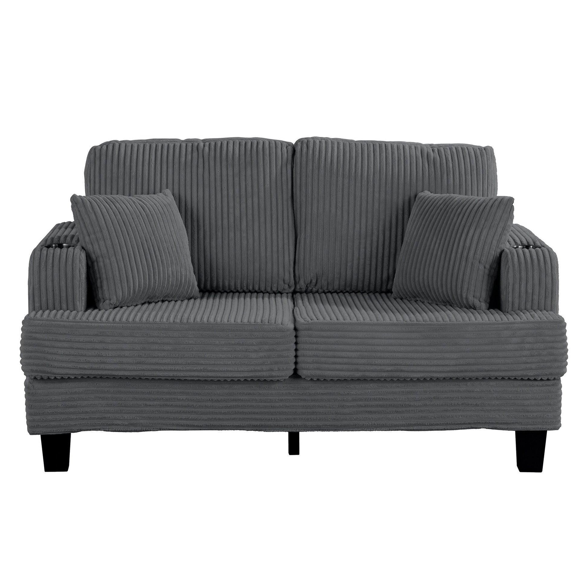 Divano a due posti in velluto a coste contemporaneo 61 con 2 cuscini e portabicchieri