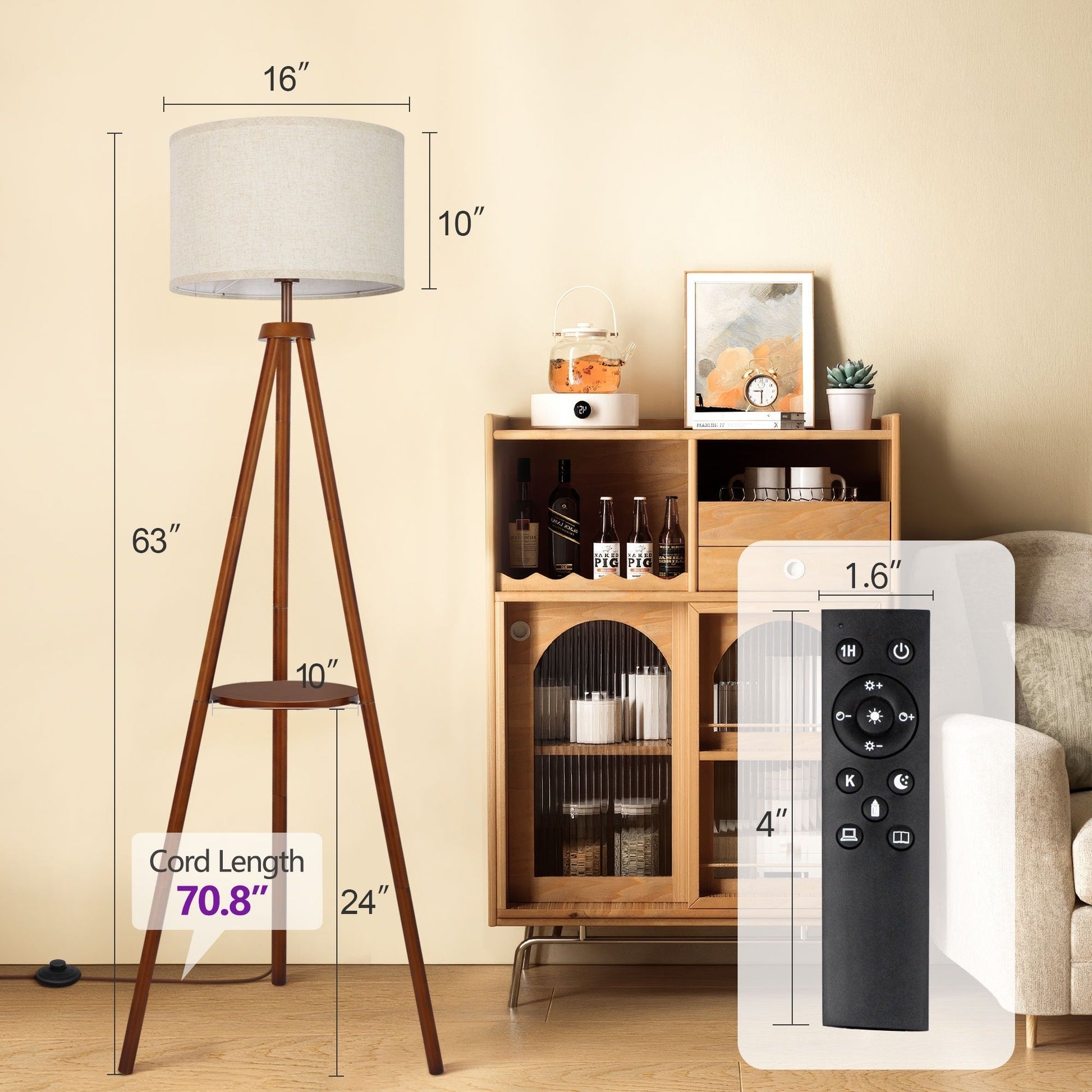 Lampada da terra con treppiede in noce da...