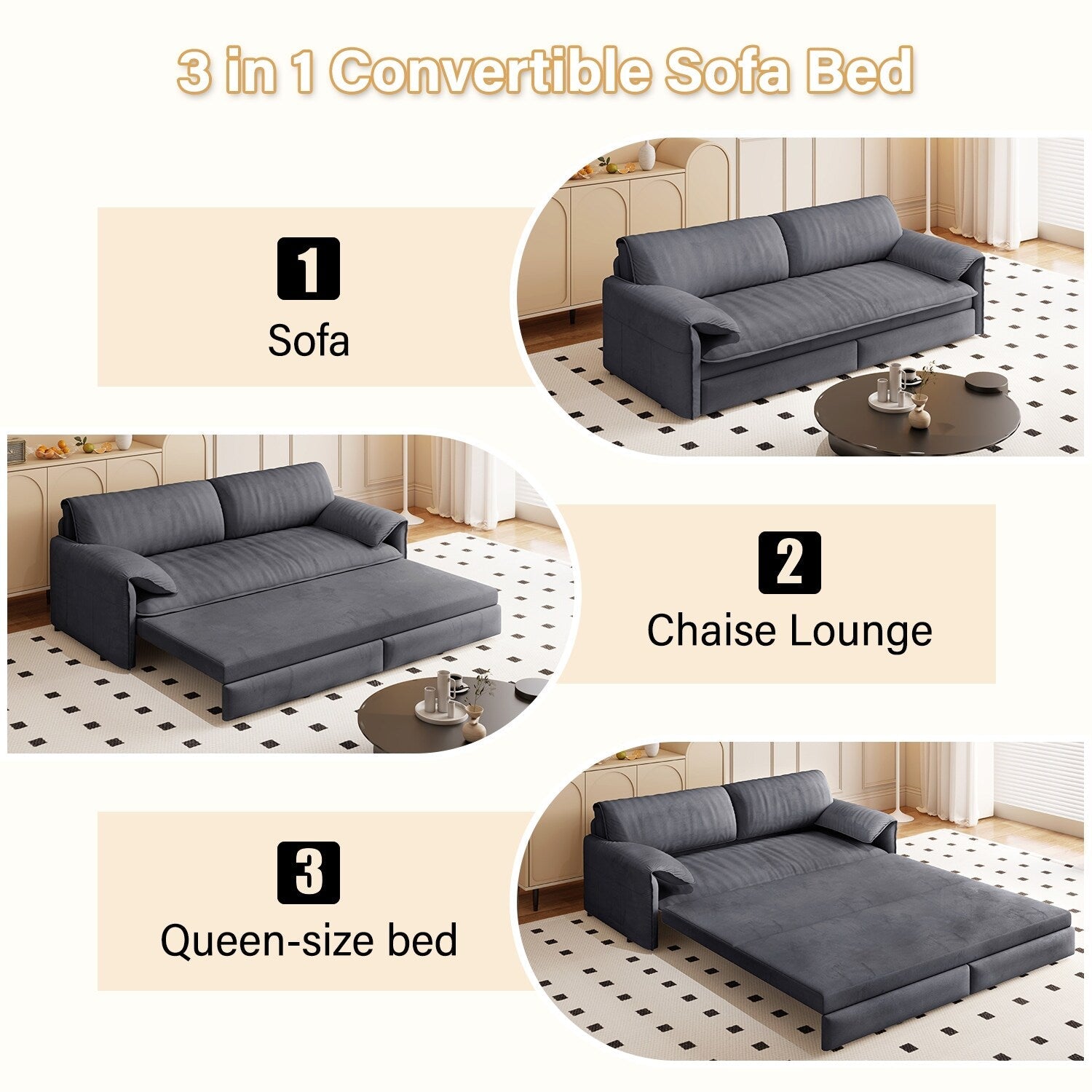 Trasforma il tuo spazio abitativo con questo versatile divano letto convertibile 3 in 1 che si adatta facilmente alle tue esigenze. Dotato di un letto matrimoniale estraibile e di una chaise longue, questo pezzo multifunzionale combina il comfort del morbido velluto con una robusta struttura in acciaio. Perfetto per piccoli spazi, offre un comodo spazio di archiviazione e una rapida conversione dalla posizione seduta a quella letto.