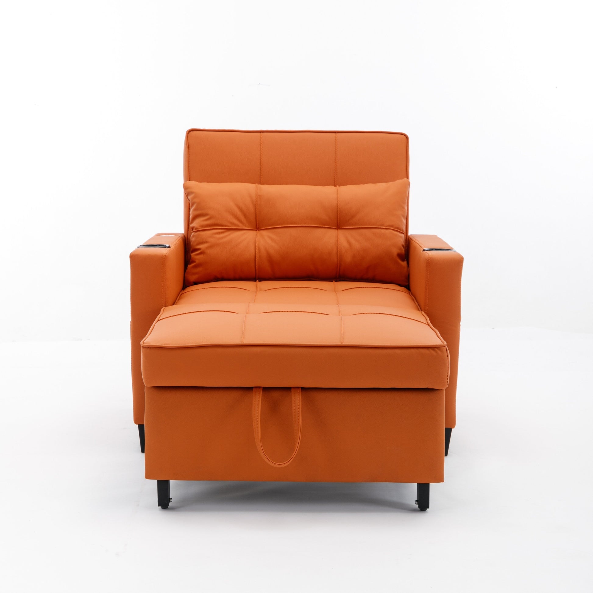 Divano letto singolo convertibile 3 in 1 in similpelle da 68,12 pollici con porte USB e resistente all'usura per il soggiorno