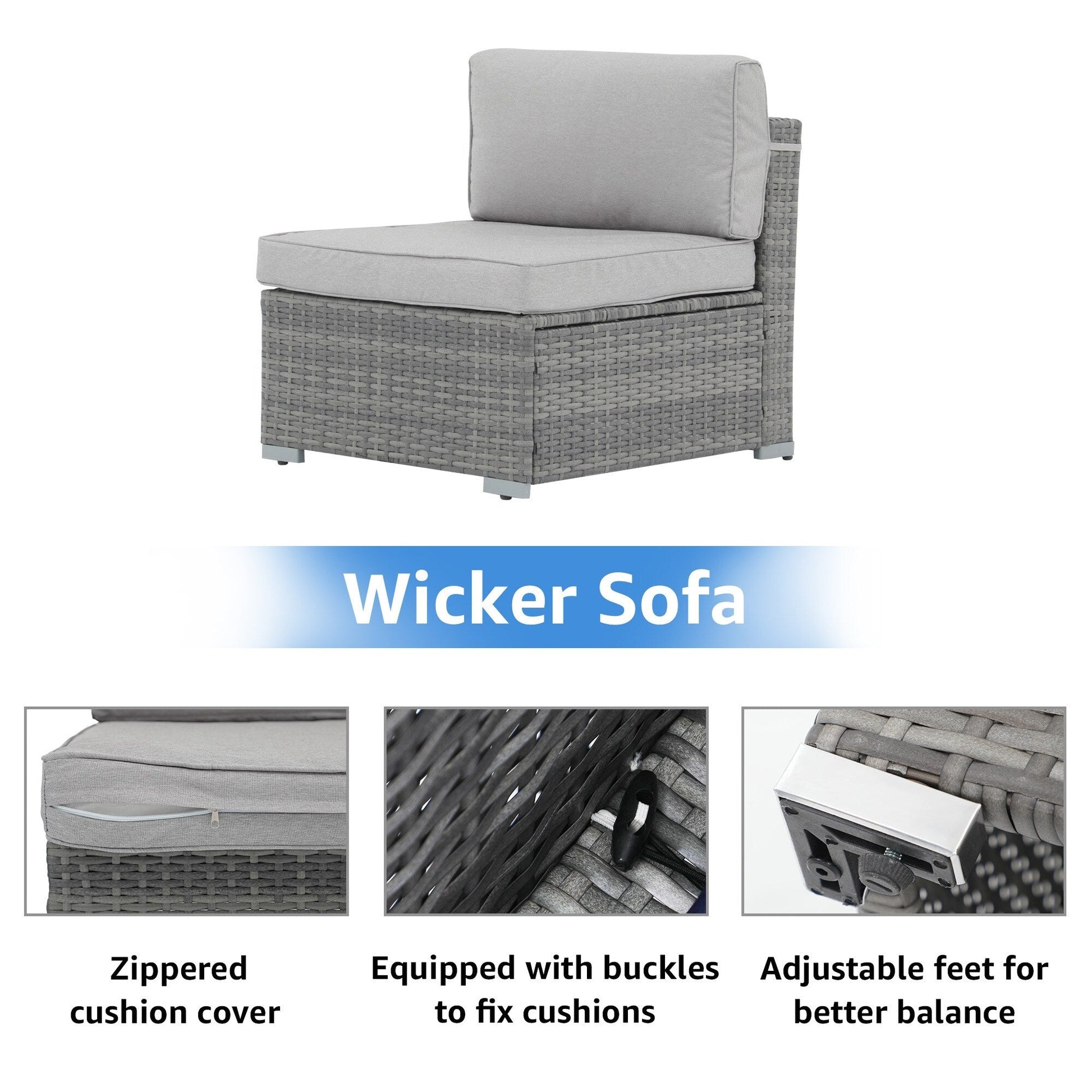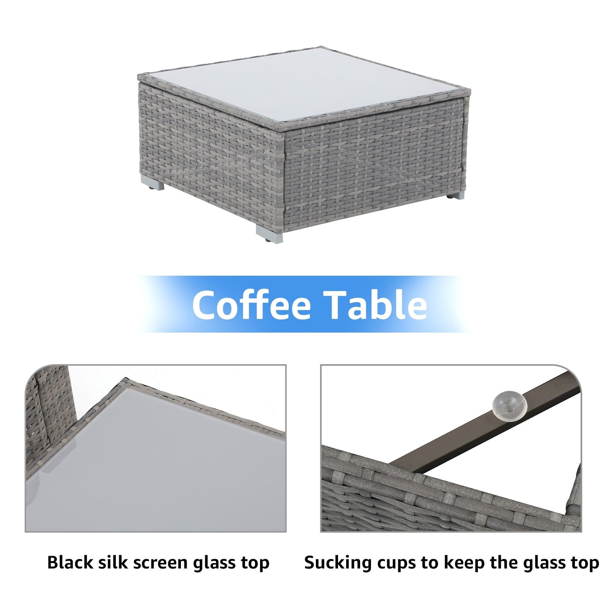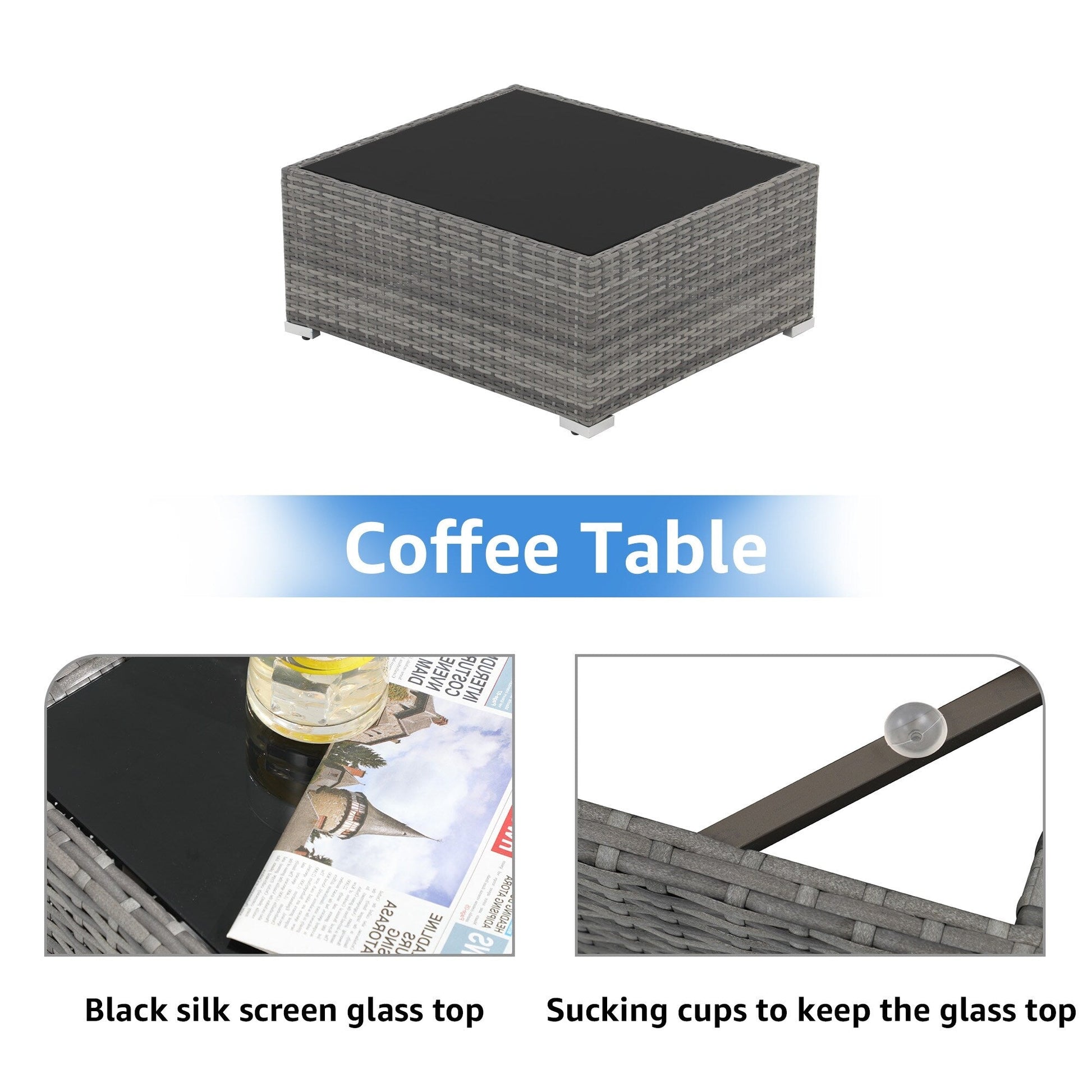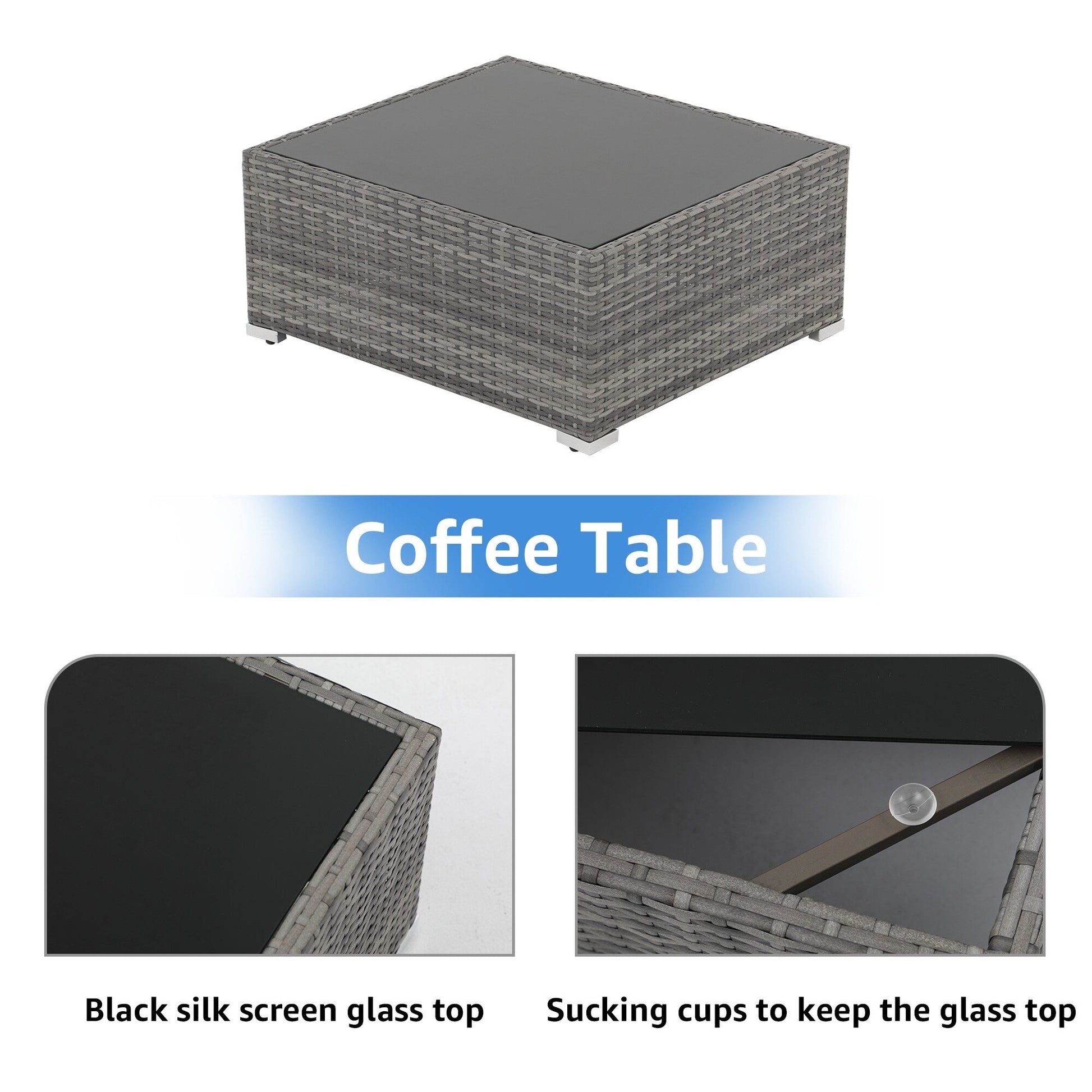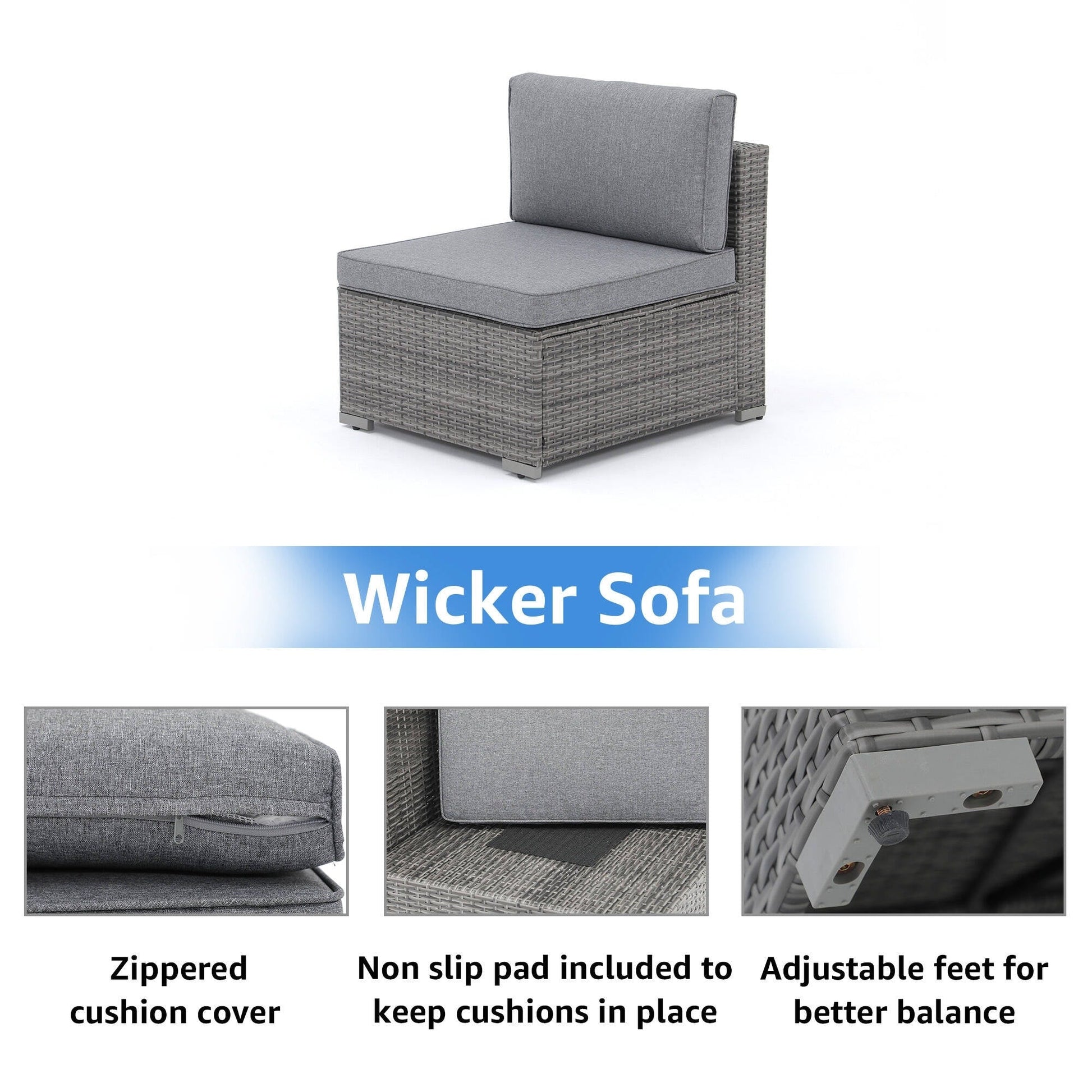Crea un'invitante oasi all'aperto con questo set di divani componibili in vimini con cuscini per patio. Realizzato in vimini resistente alle intemperie, questo set di divani è perfetto per l'uso all'aperto e durerà per anni. La struttura interna in acciaio verniciato a polvere lo rende sufficientemente robusto da resistere all'esposizione agli agenti atmosferici. Goditi il ​​massimo comfort e stile con i comodi cuscini di cui è dotata ogni seduta. Grazie alle diverse configurazioni disponibili, puoi personalizzare il set di mobili componibili in base alle tue esigenze di ospitalità. Inoltre, il piano in vetro è il tocco finale perfetto per il tuo paradiso all'aperto. Preparati a rilassarti con questo splendido set di divani da esterno!