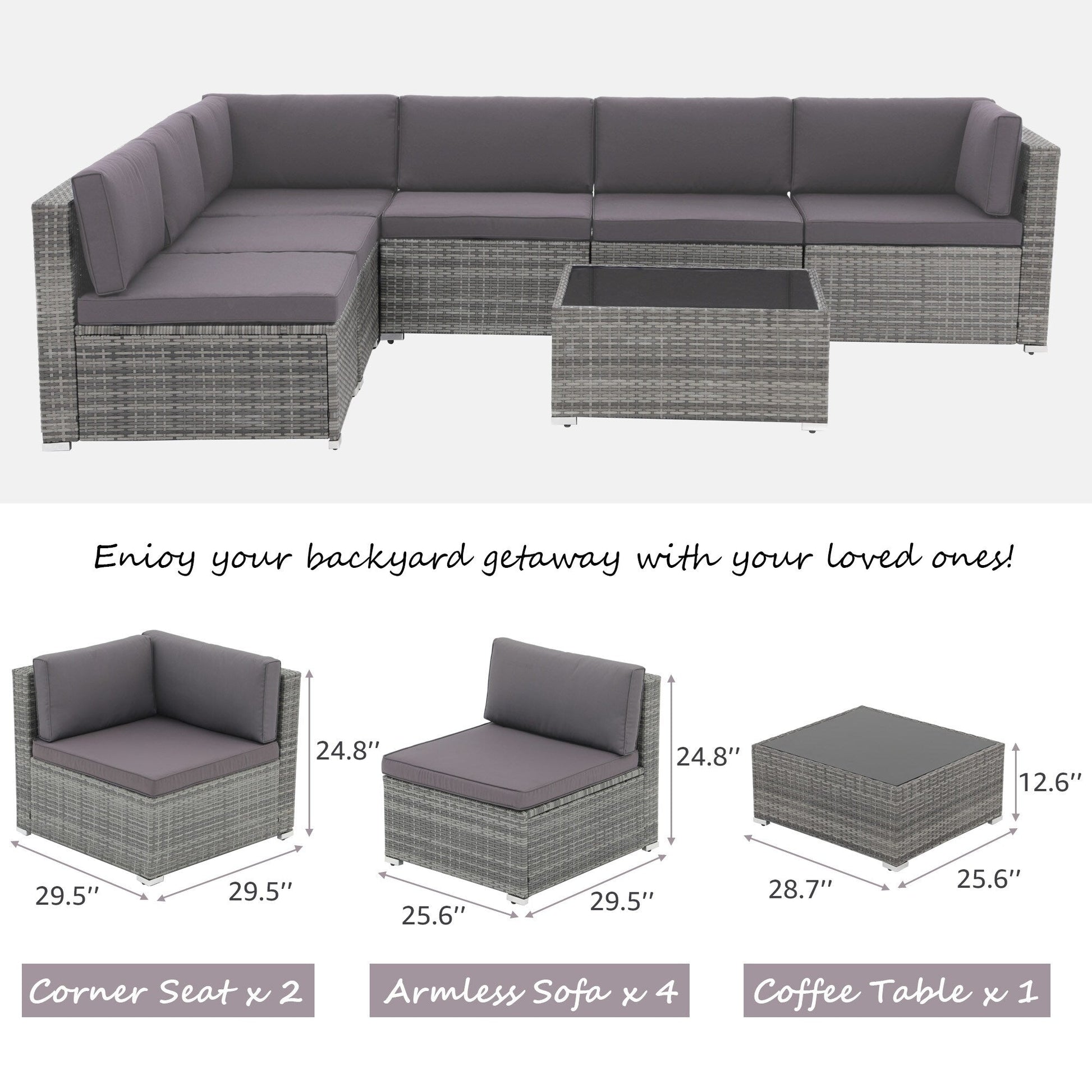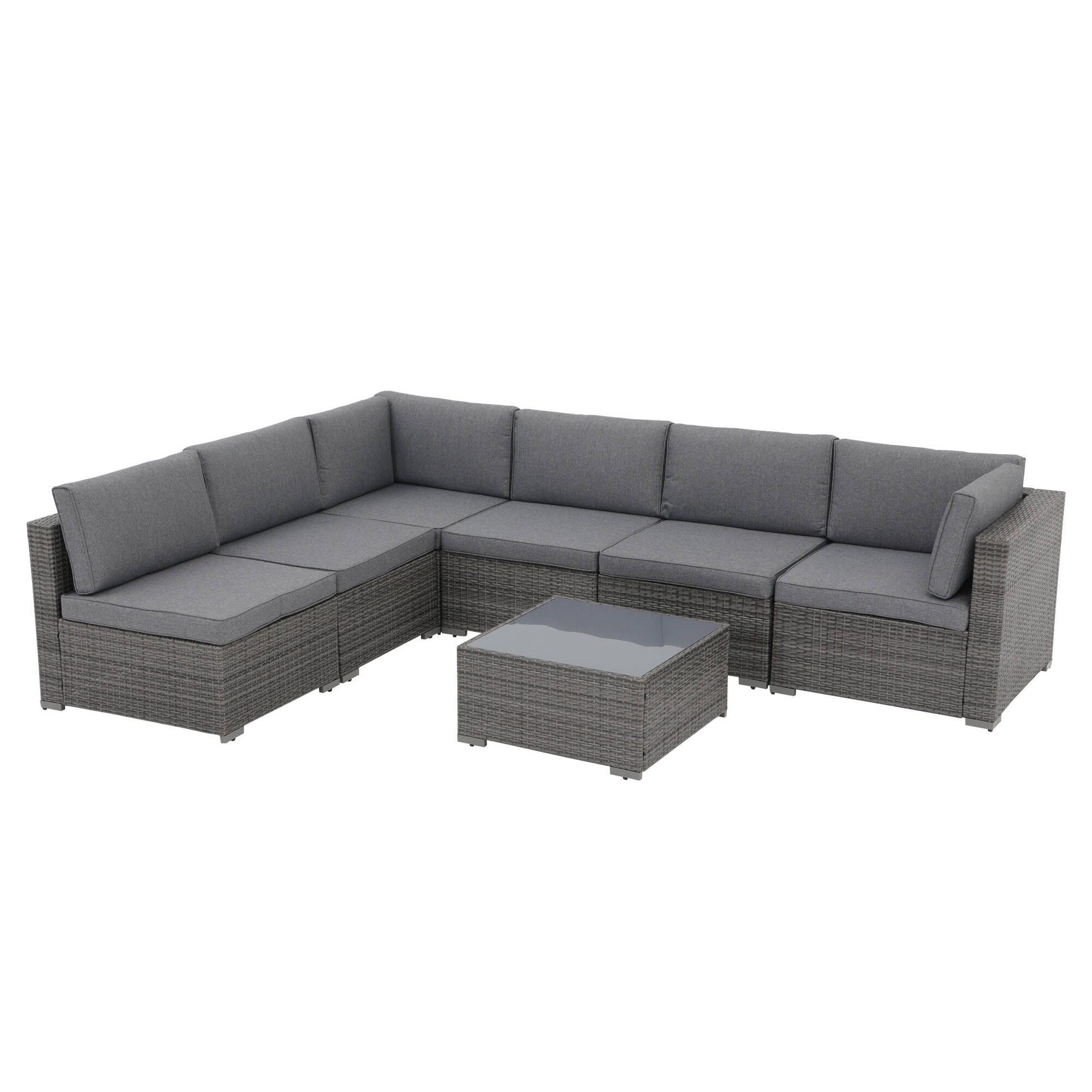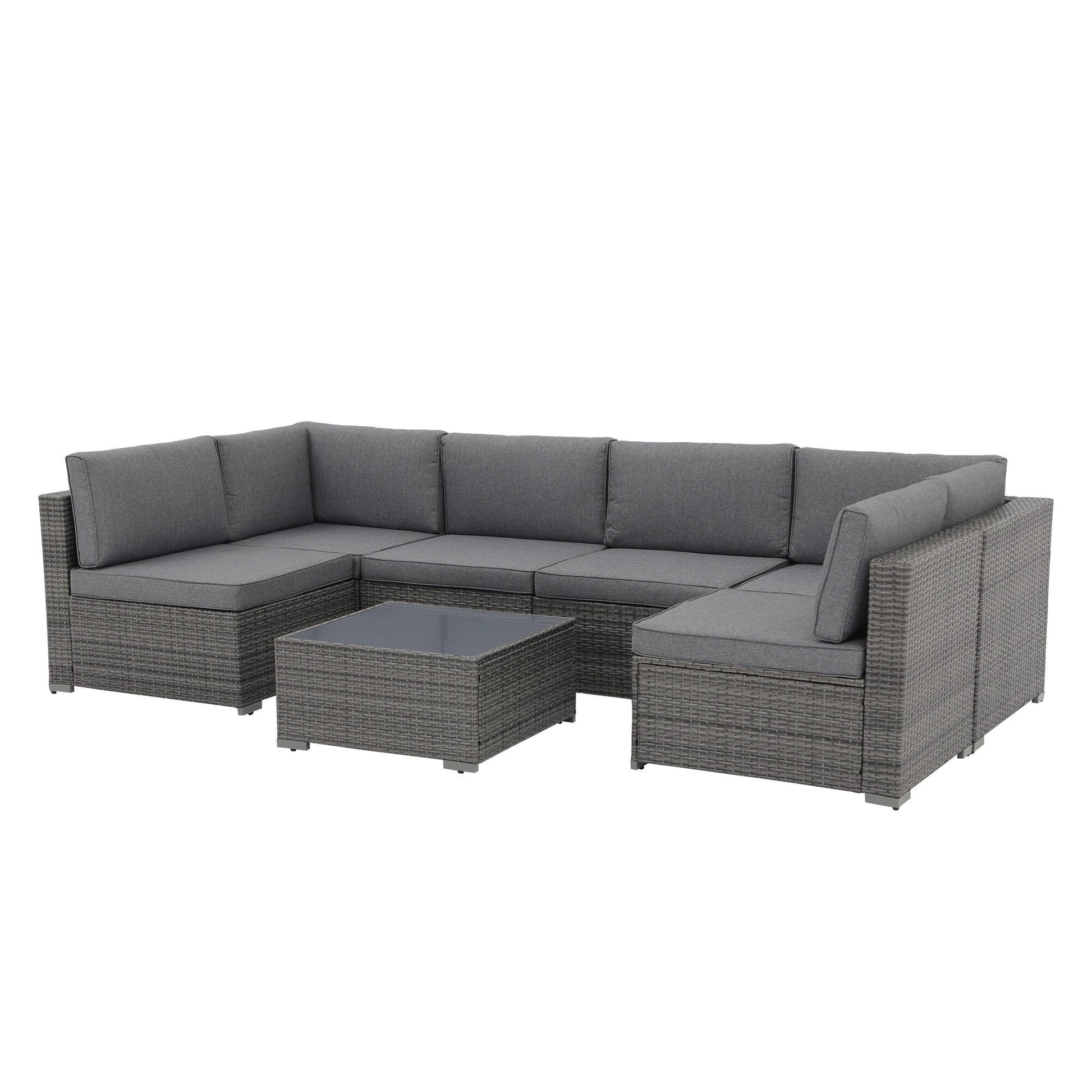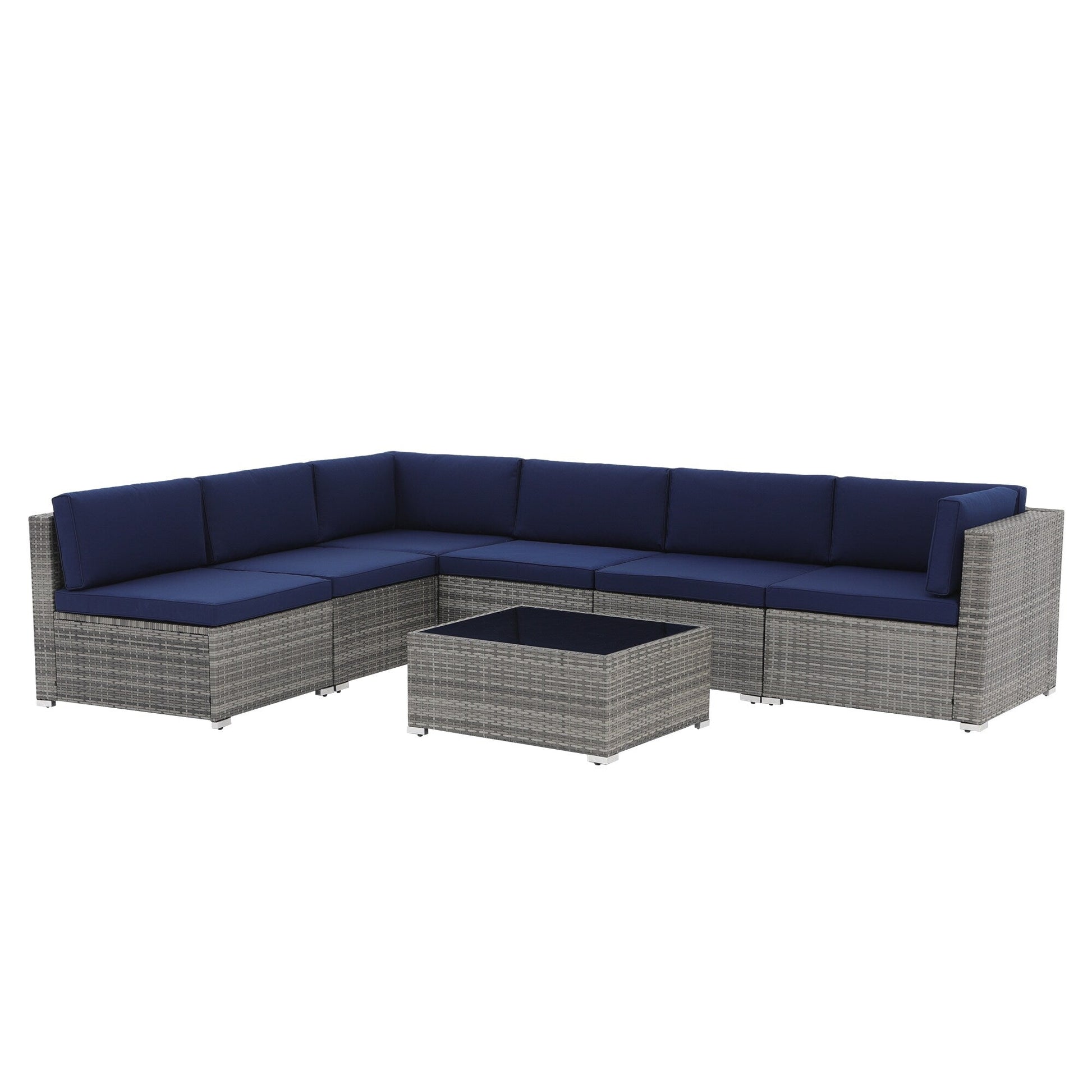 Set di divani componibili in vimini da giardino da 7 pezzi con cuscini