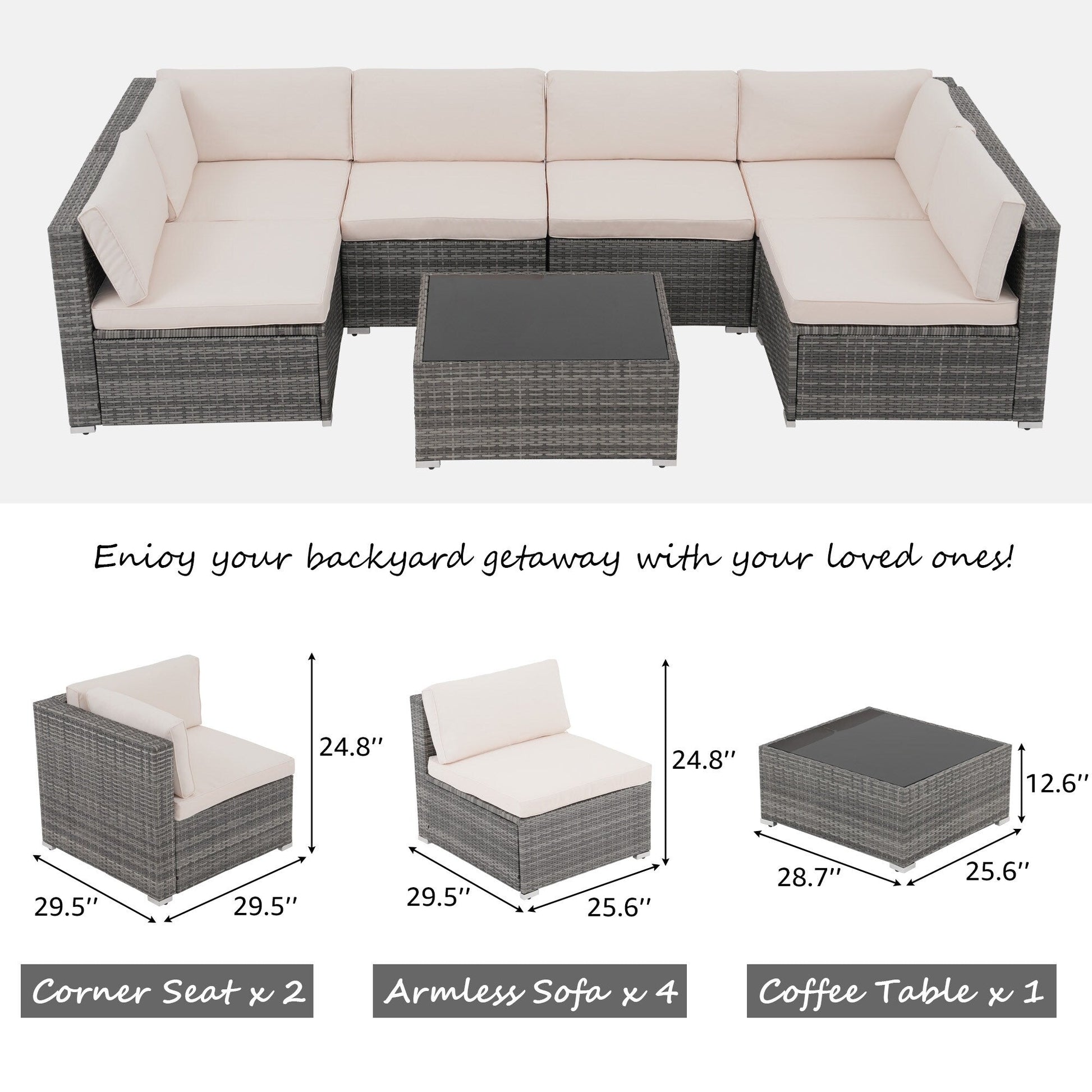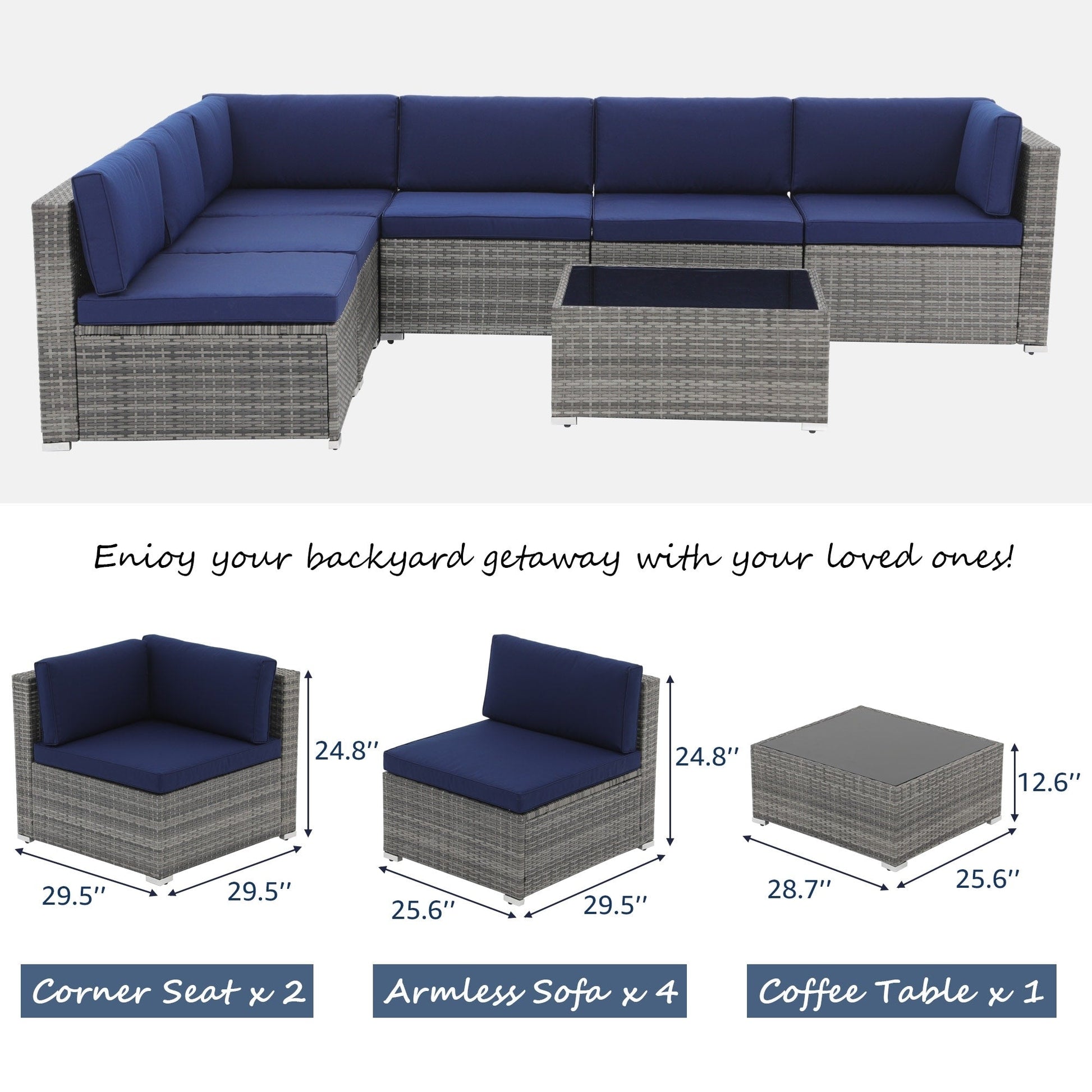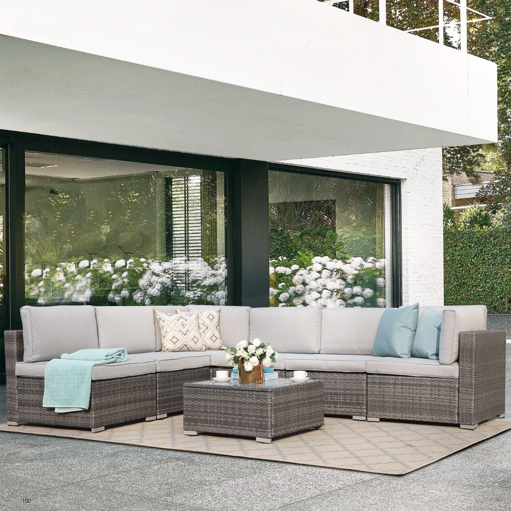 Set di divani componibili in vimini da giardino da 7 pezzi con cuscini
