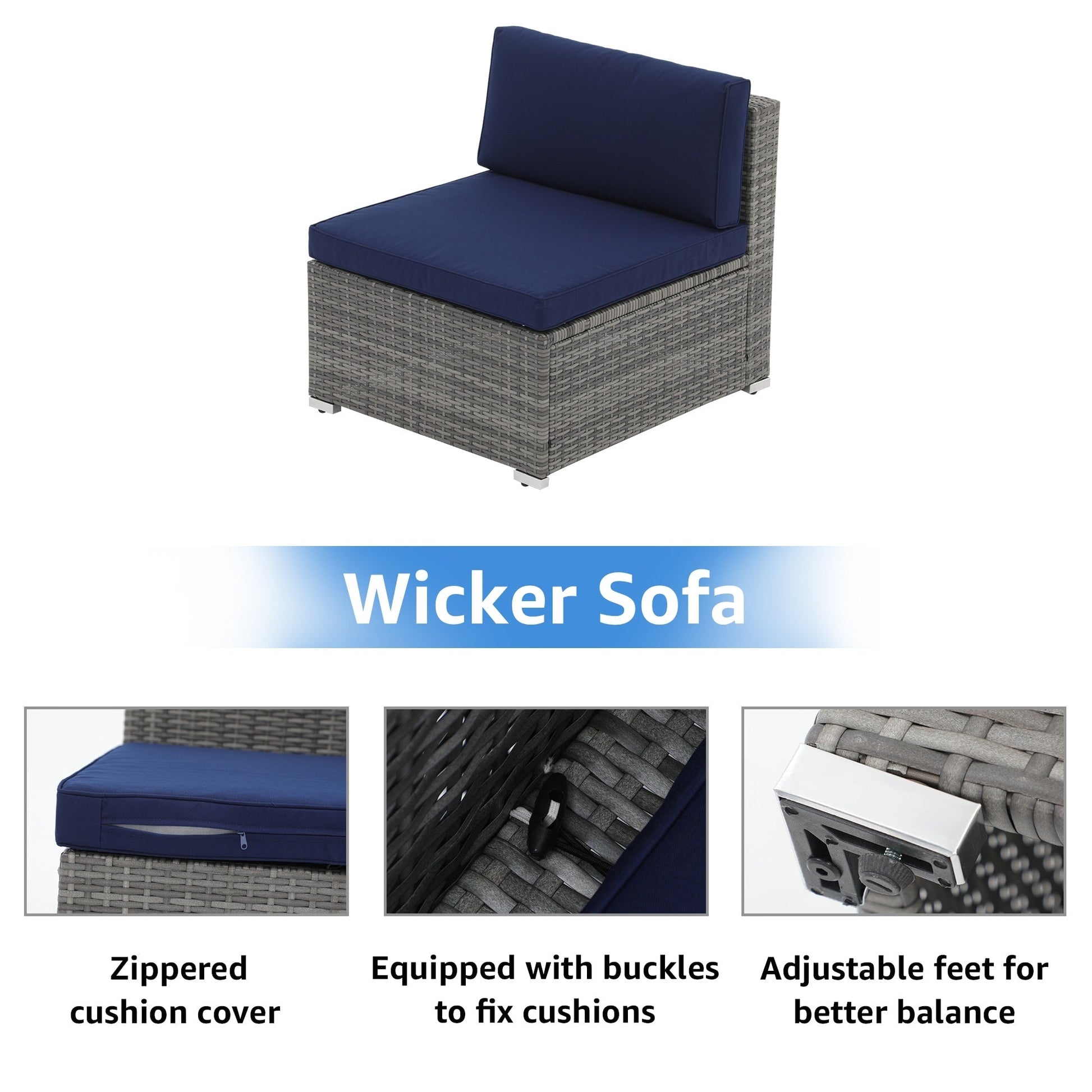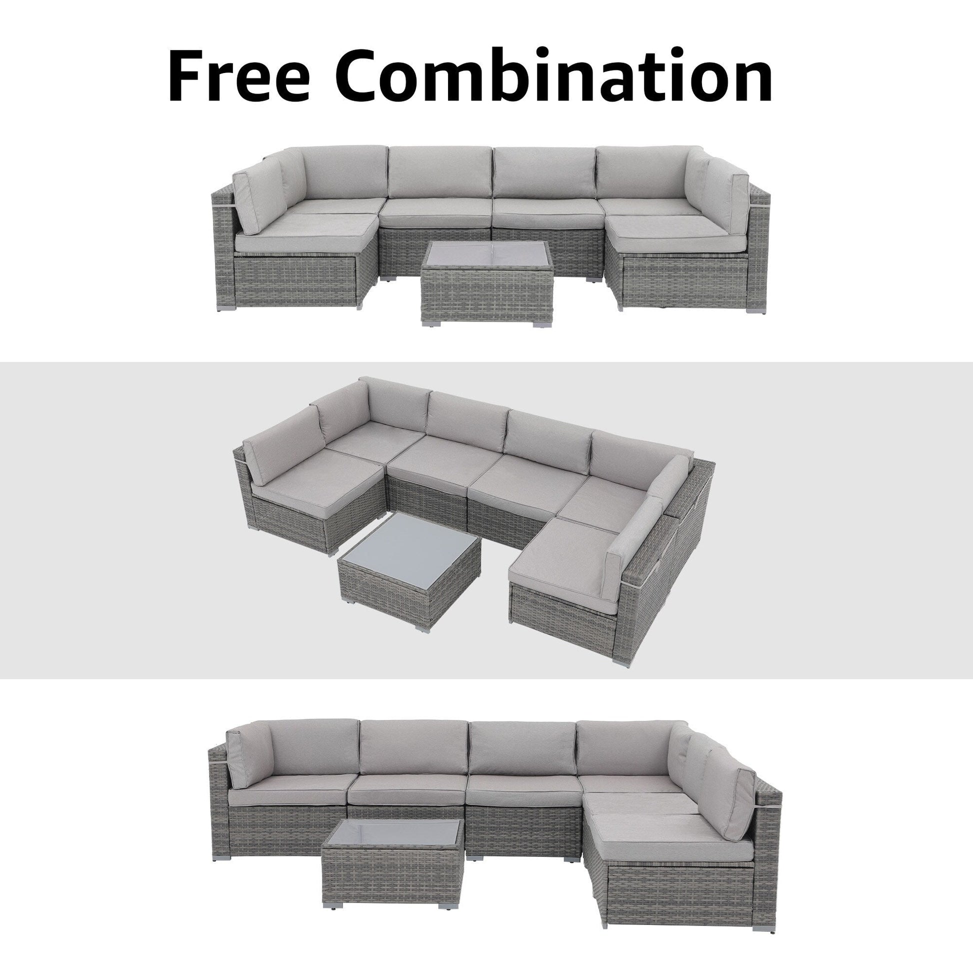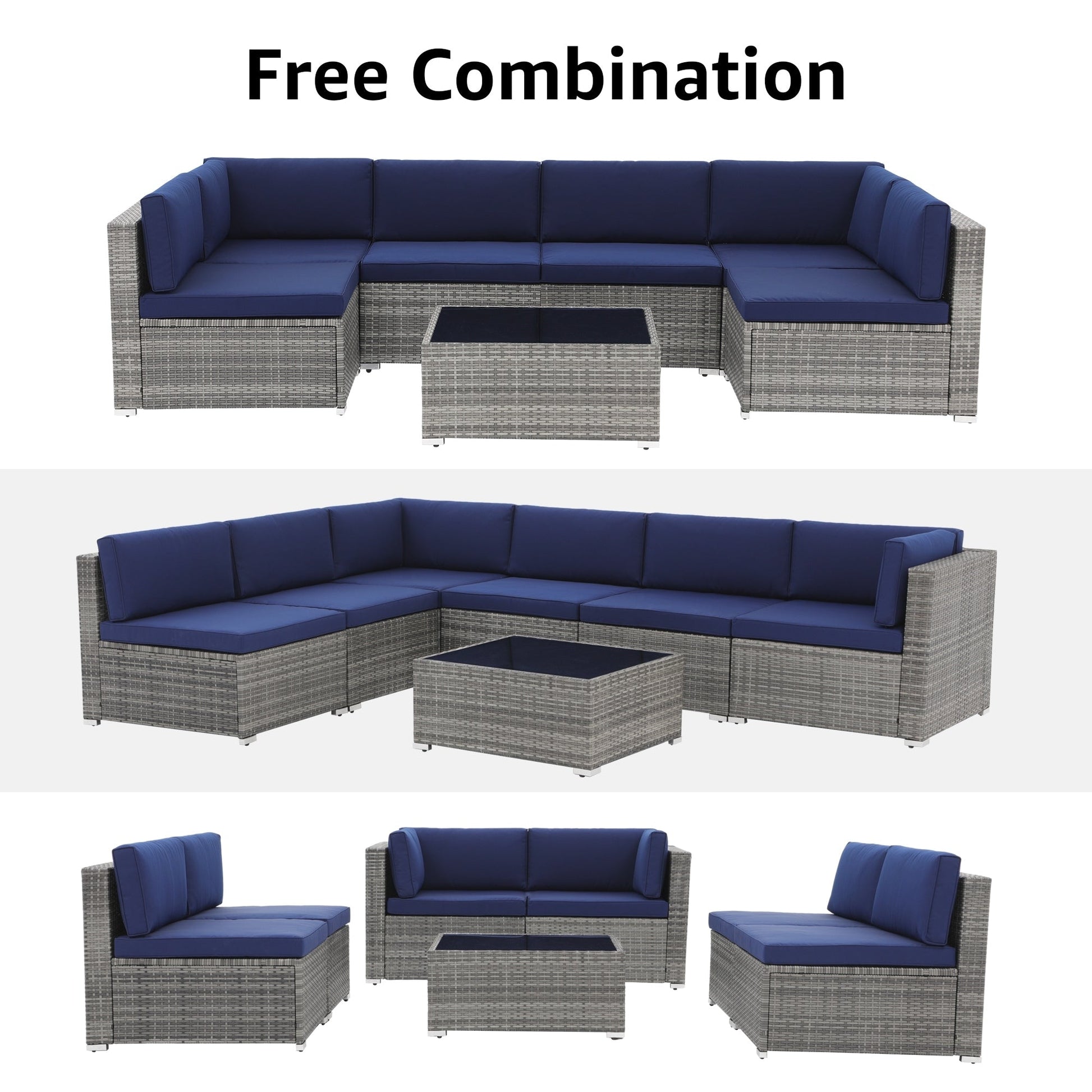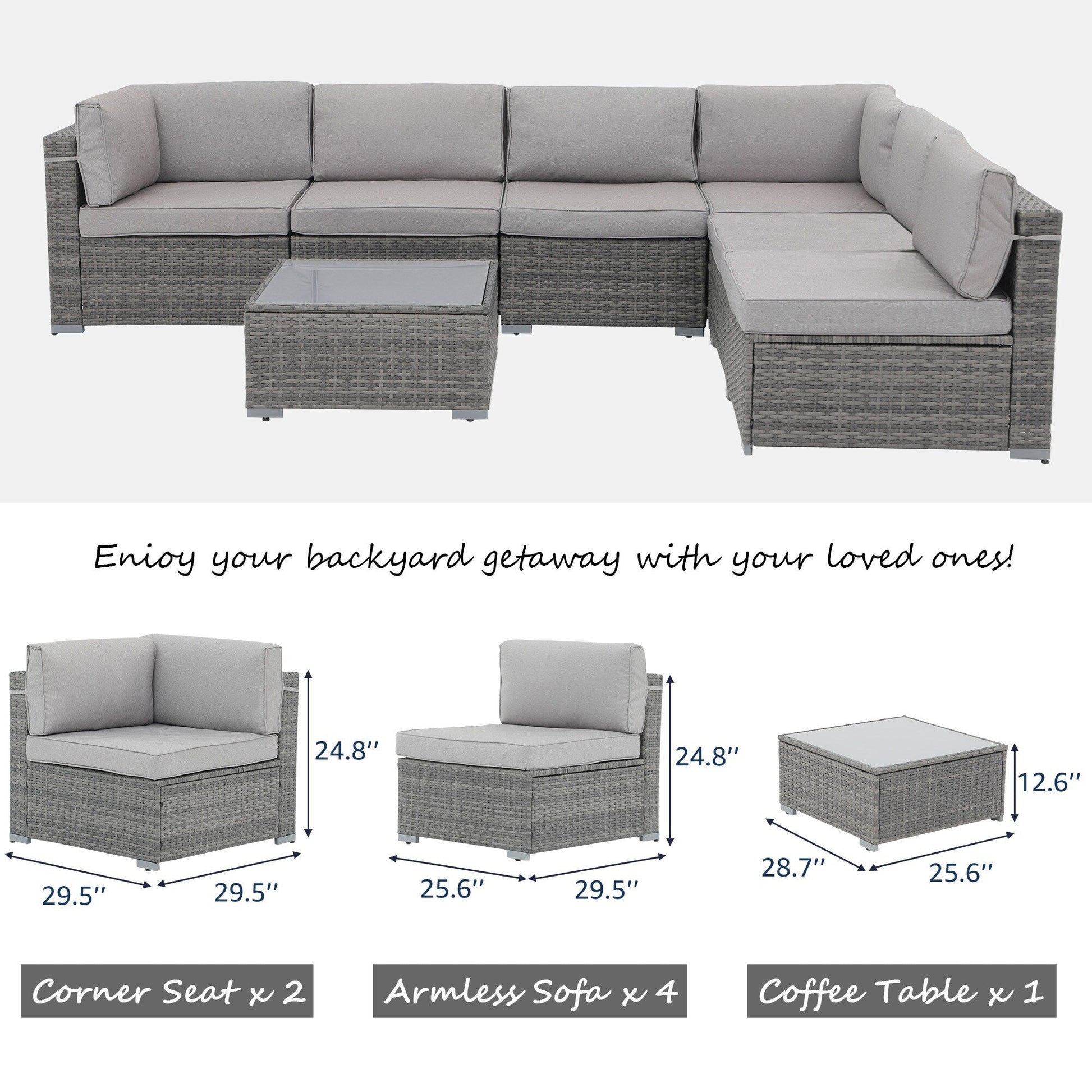 Set di divani componibili in vimini da giardino da 7 pezzi con cuscini