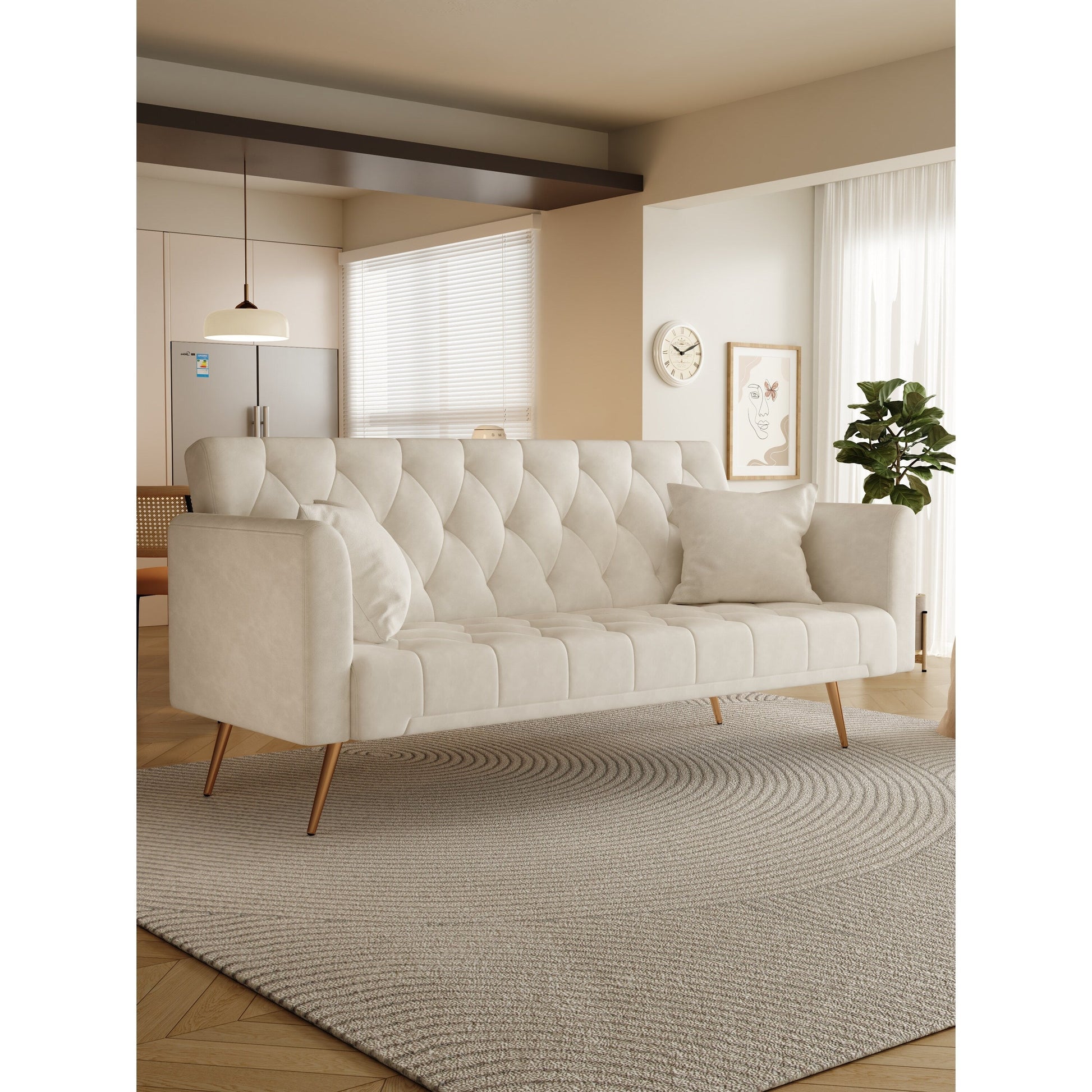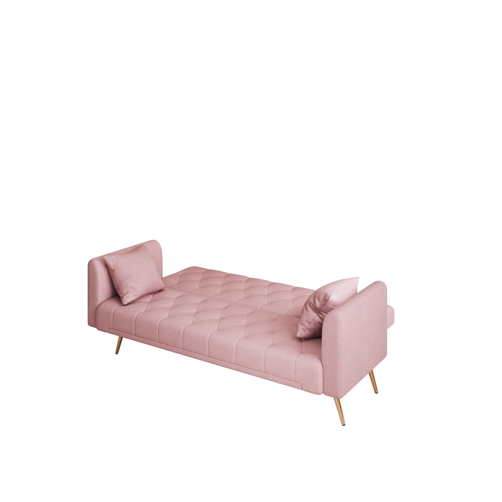 Divano letto trasformabile in velluto a 3 posti con due cuscini e gambe in metallo per soggiorno