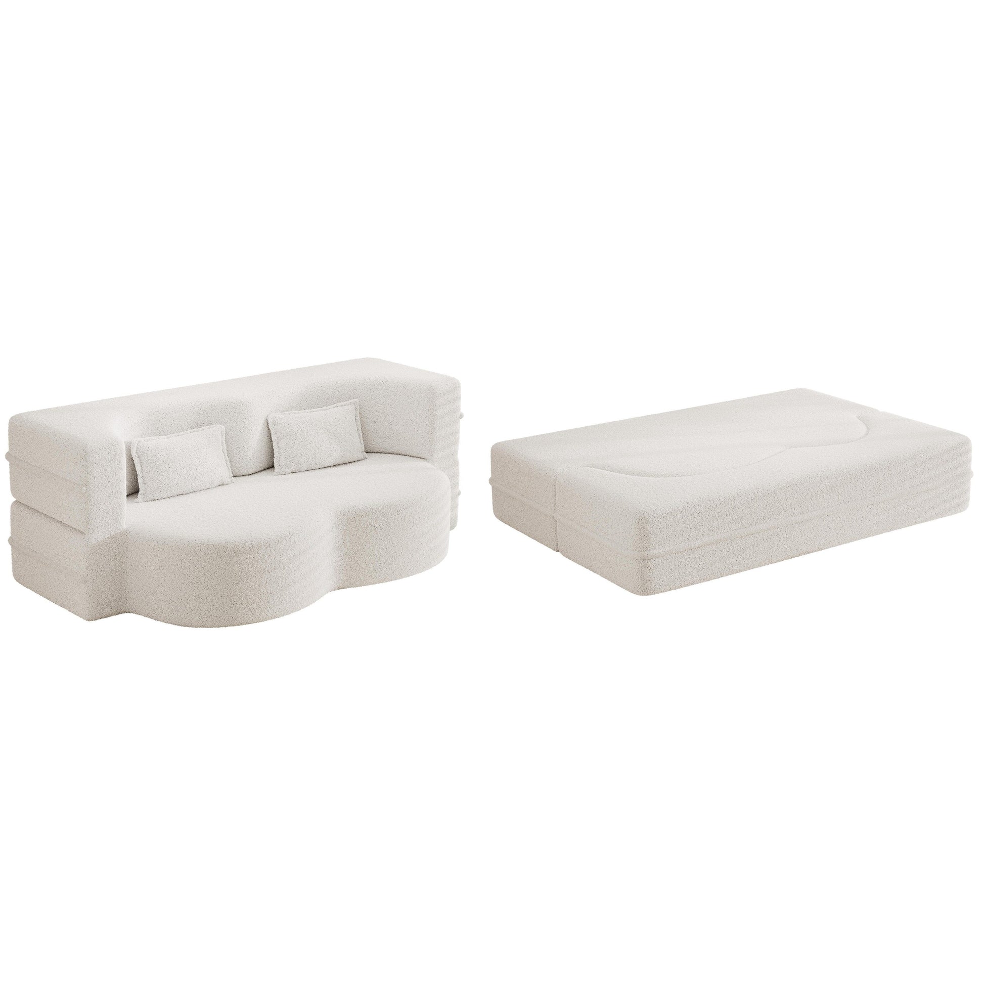 Divano letto trasformabile in tessuto Teddy da 78 posti, imbottito in schiuma, con 2 cuscini e materasso pieghevole per soggiorno