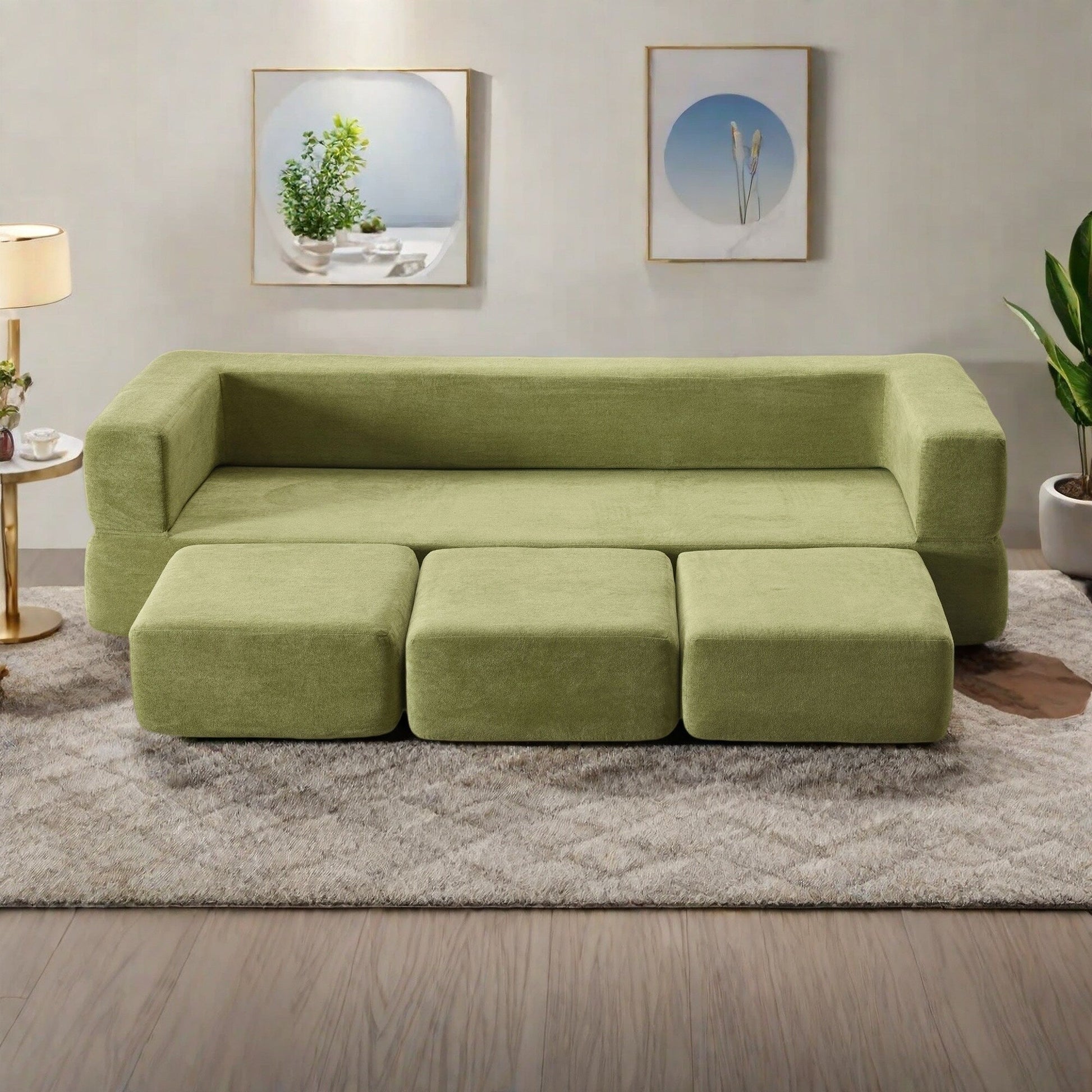 Divano a 3 posti in ciniglia 79.14 con schiuma ad alta densità, fodera rimovibile con cerniera e tappetino da gioco pieghevole