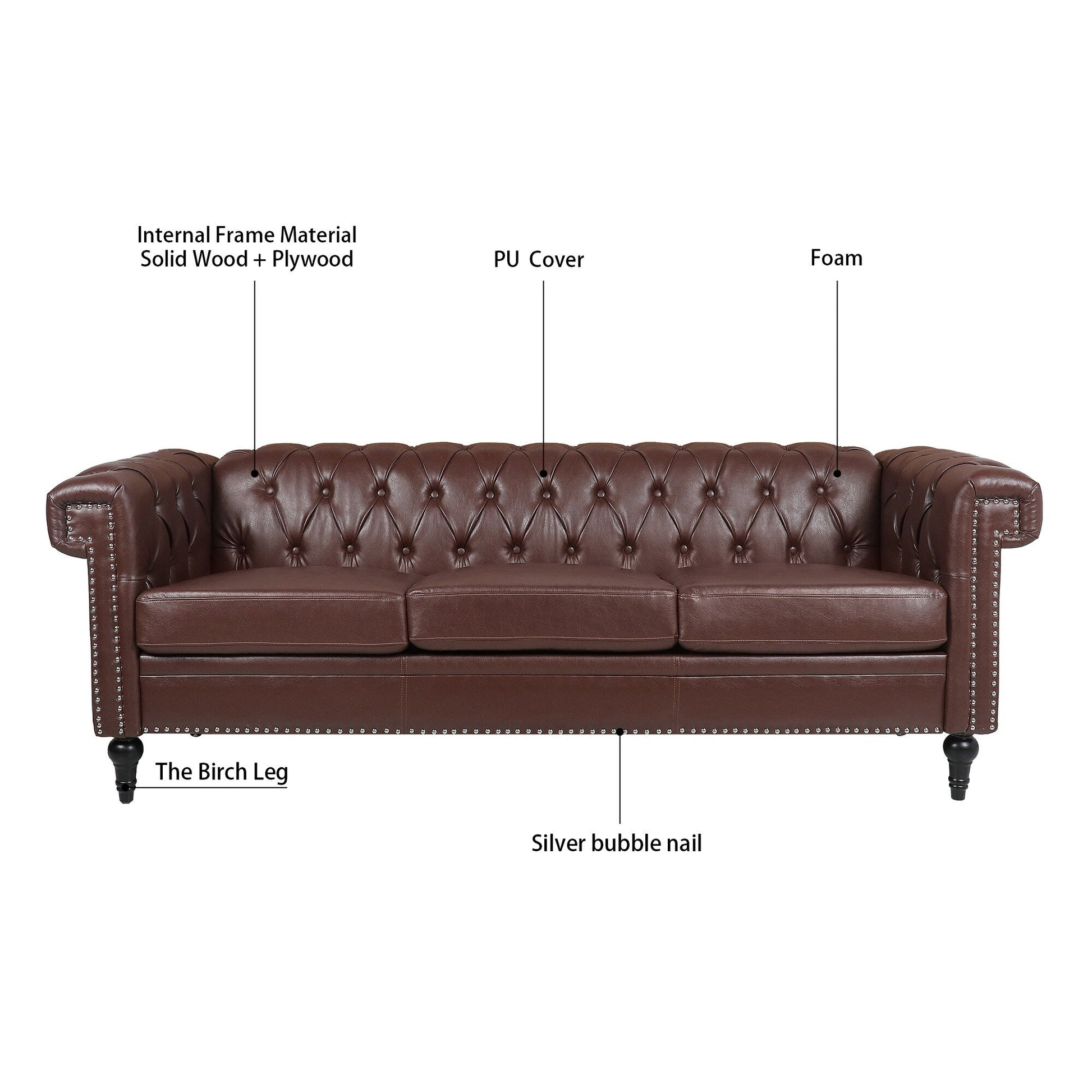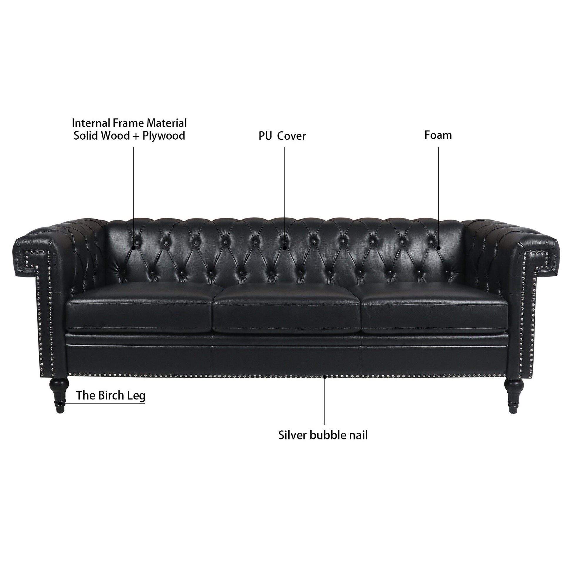 Divano a 3 posti con braccioli quadrati in...