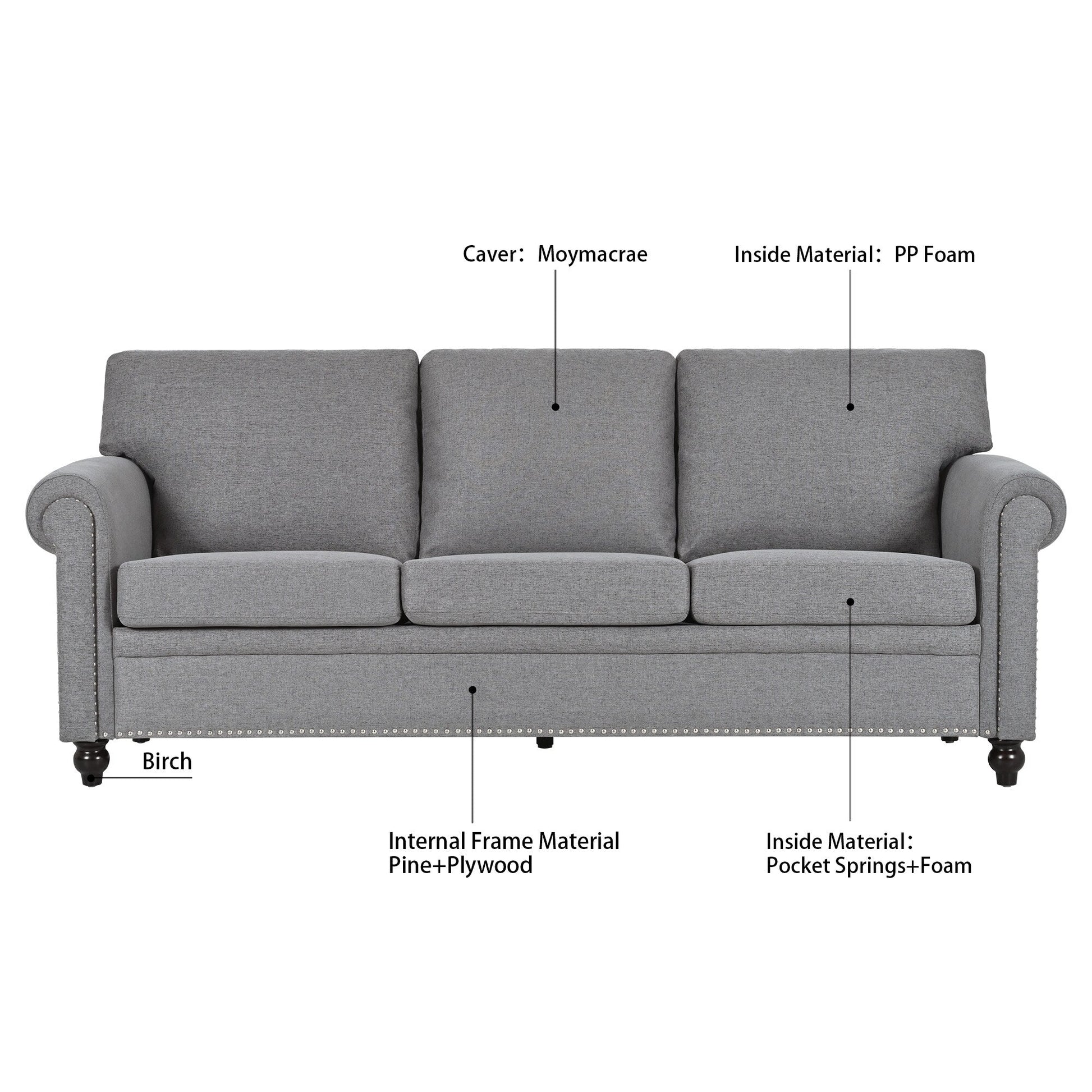 • Decorazione a forma di bolle d'argento: la decorazione a forma di bolle d'argento sulla parte anteriore del bracciolo a rullo aggiunge un'atmosfera elegante al divano.