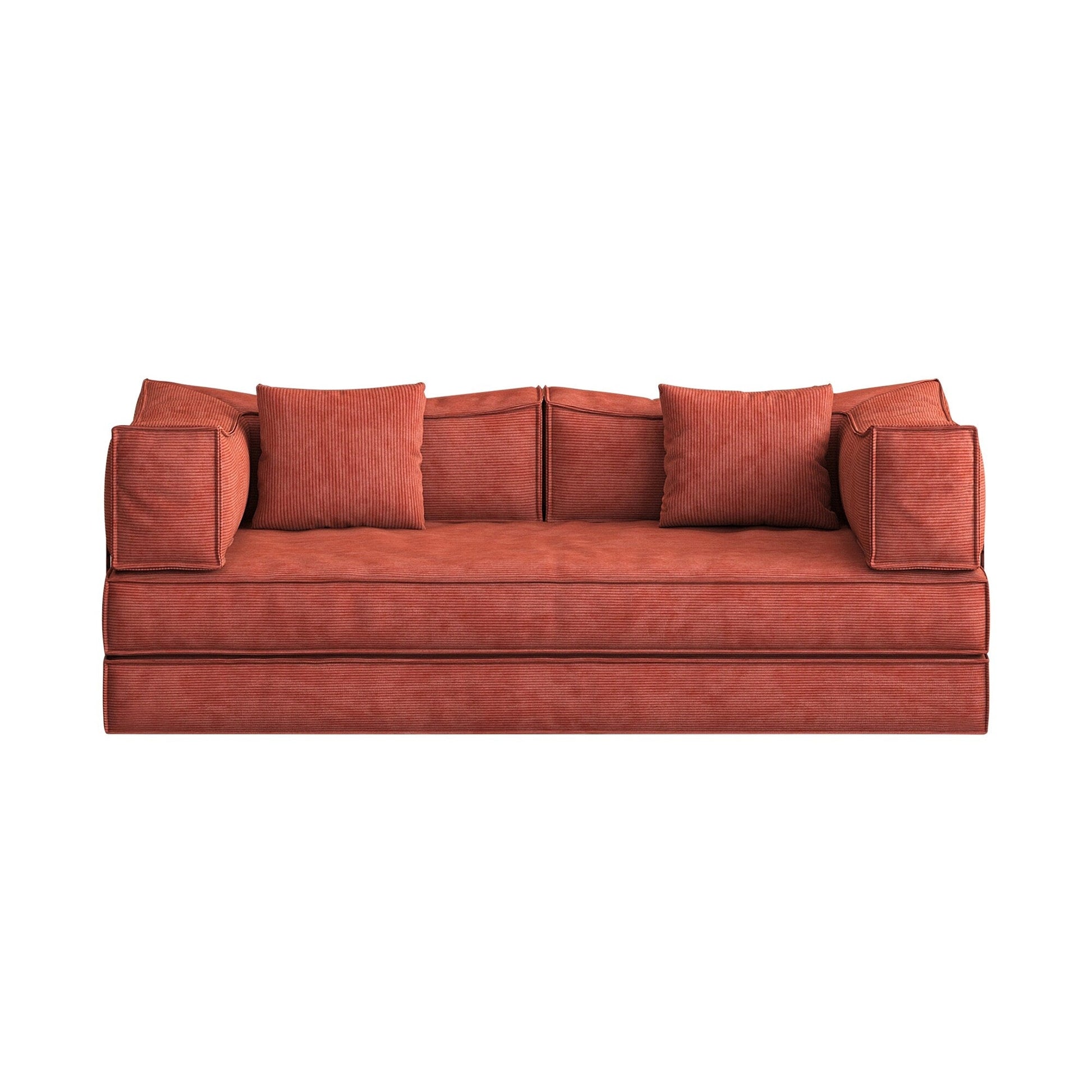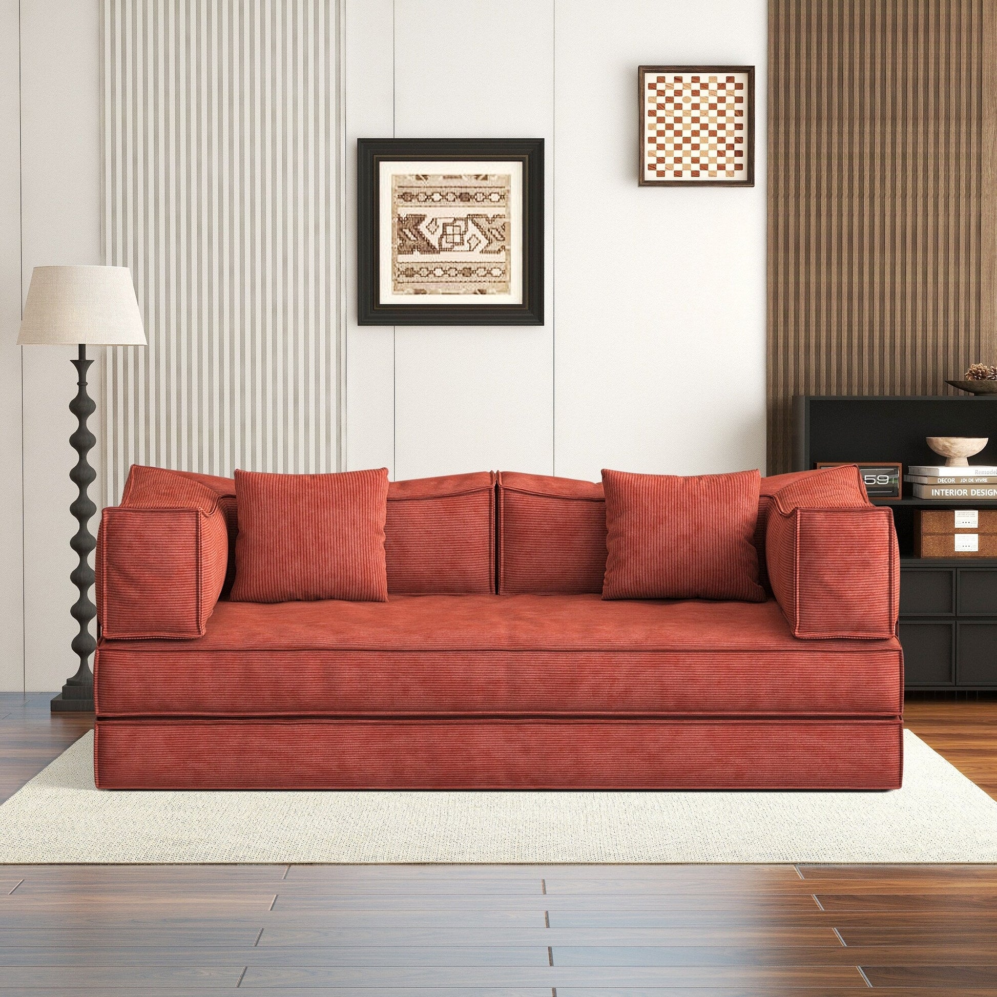 Divano letto imbottito convertibile in velluto a coste, divano futon pieghevole con 2 cuscini