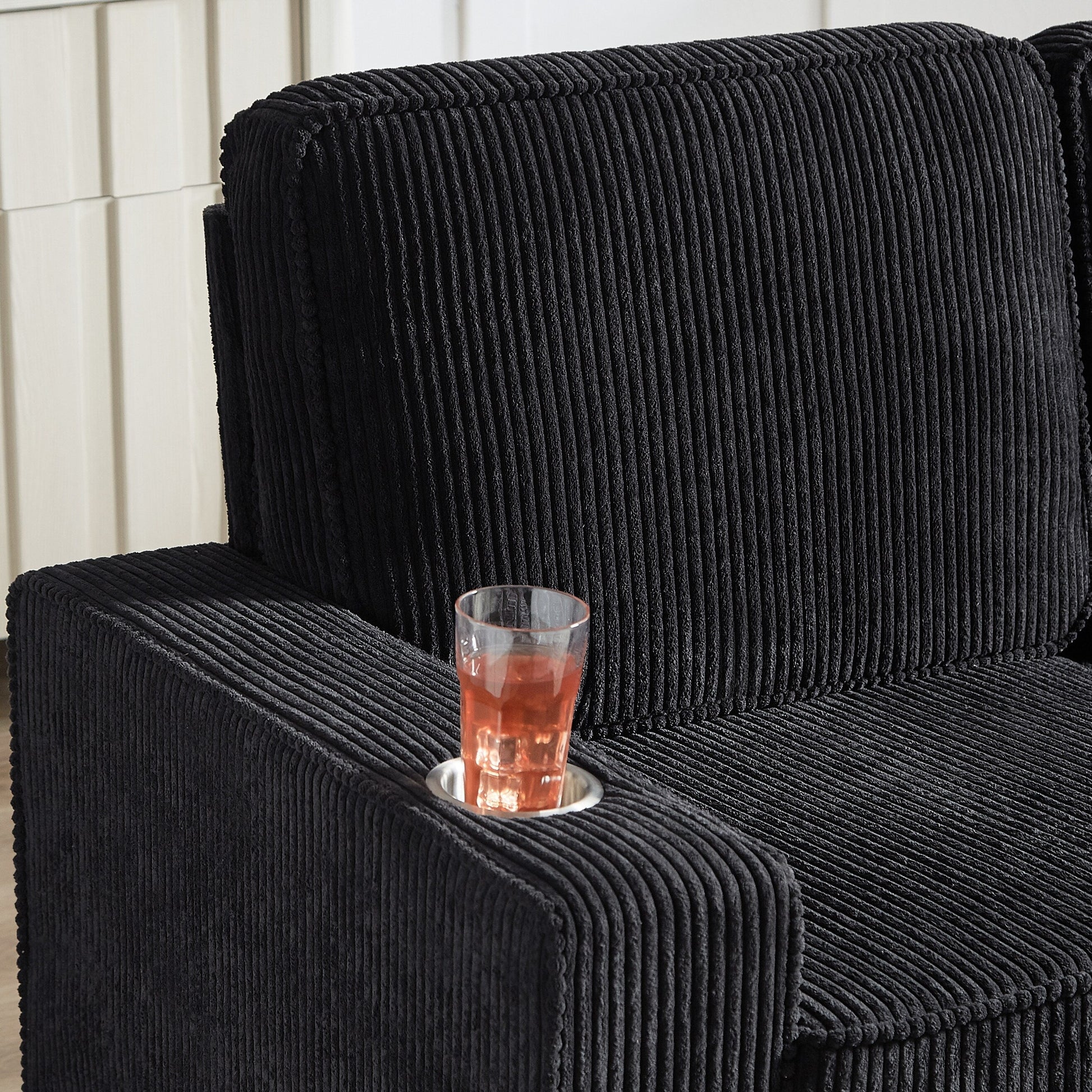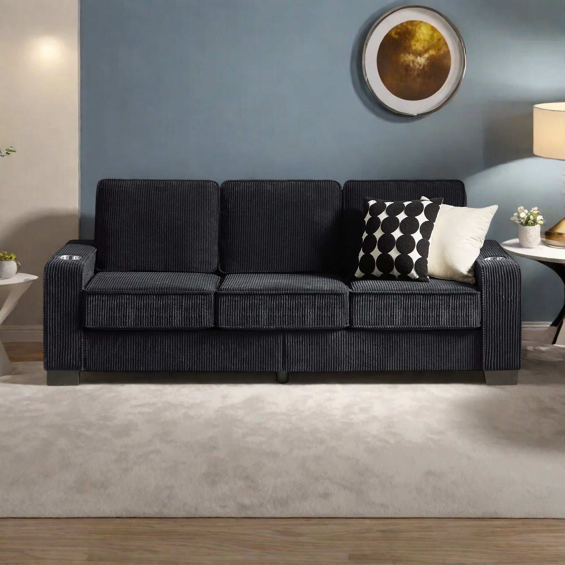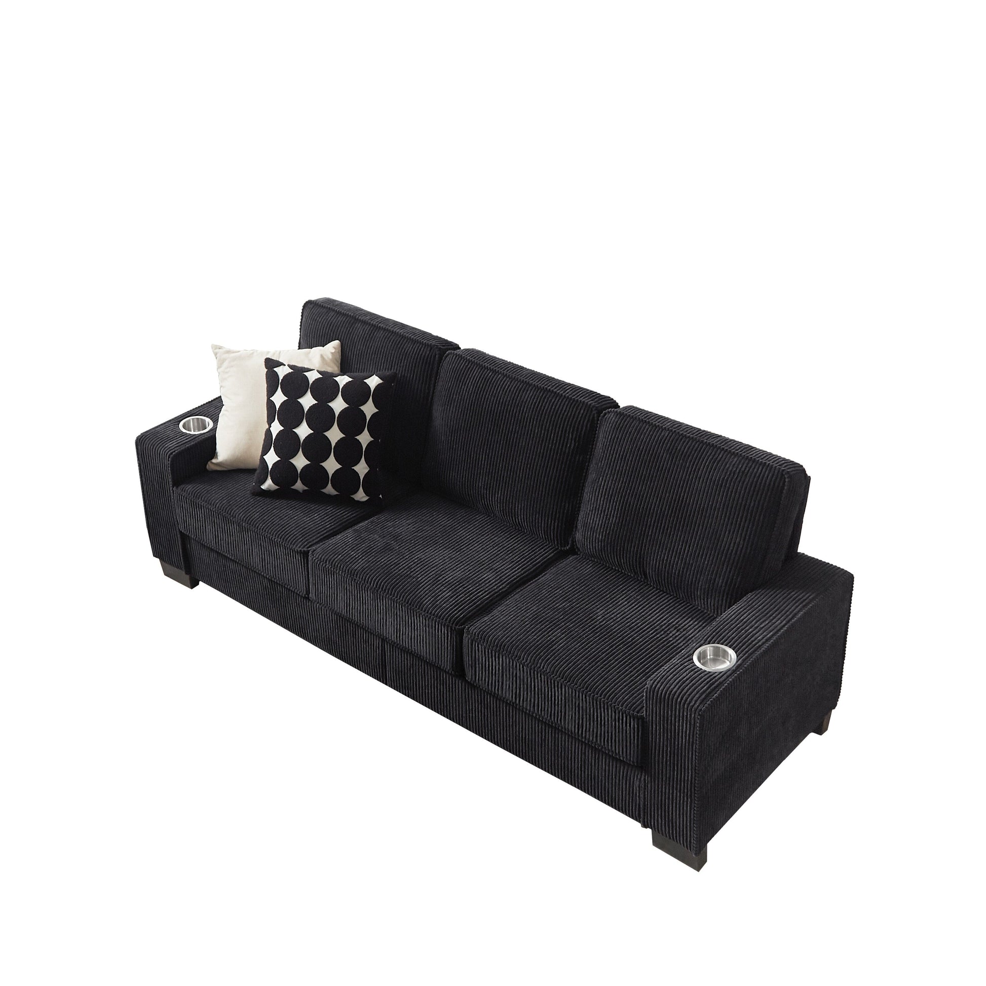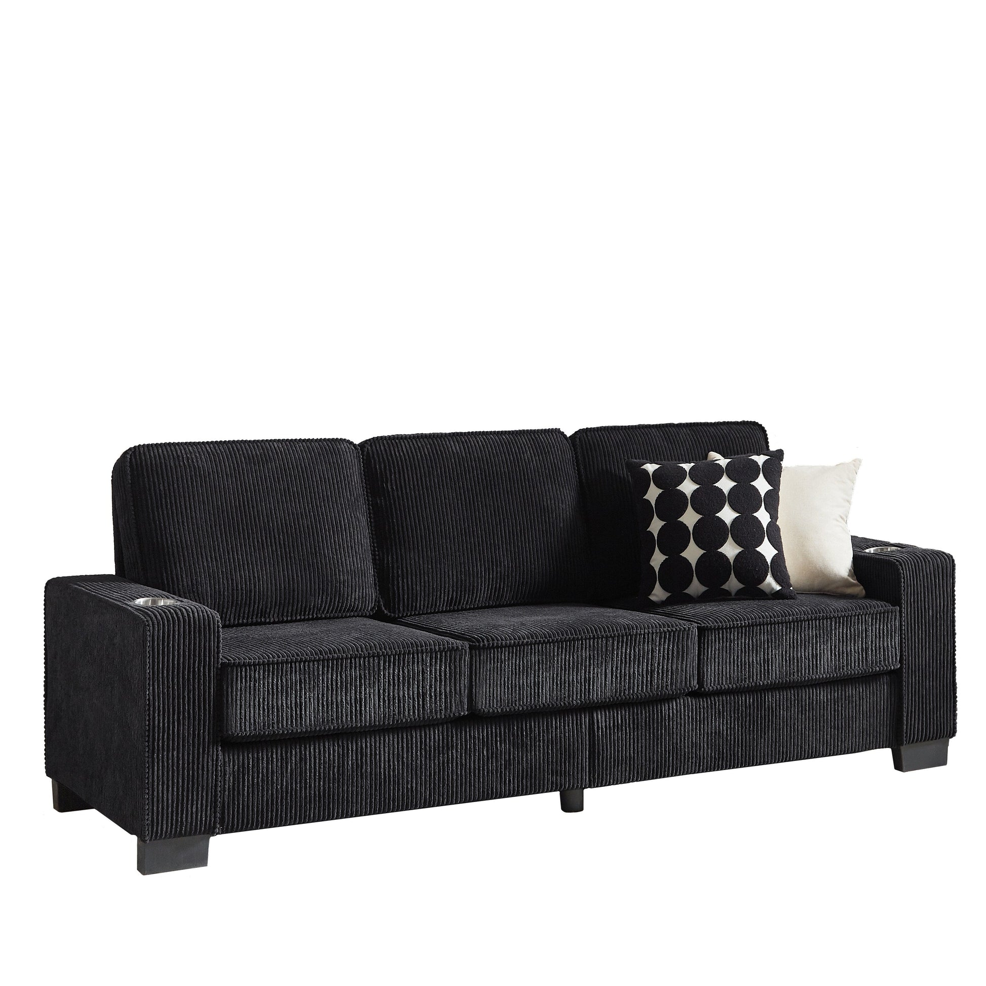 Divano a 3 posti in velluto a coste da 84,25 pollici con braccioli portabicchieri - Cuscini in spugna ad alta densità e molle