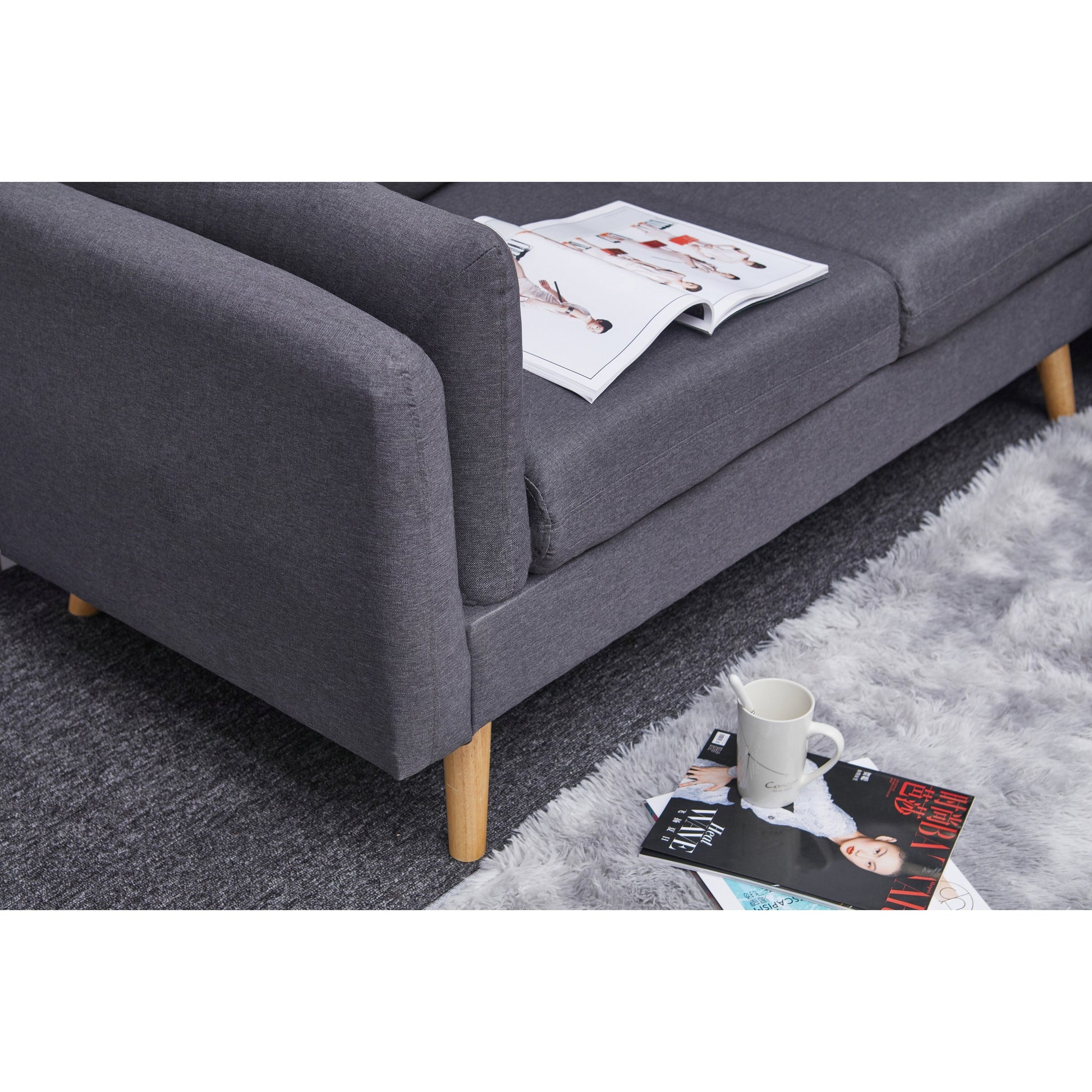Divano a L in lino da 84,6'' con...