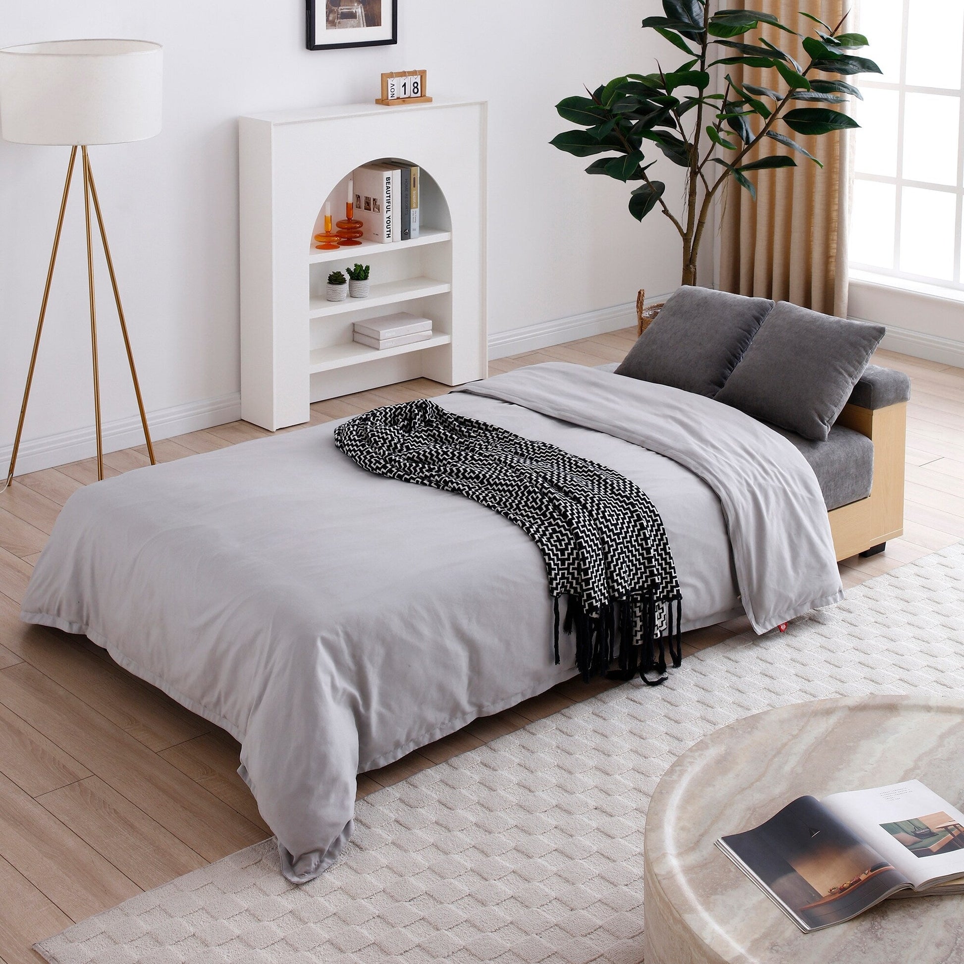 Divano letto trasformabile in lino e cotone a...