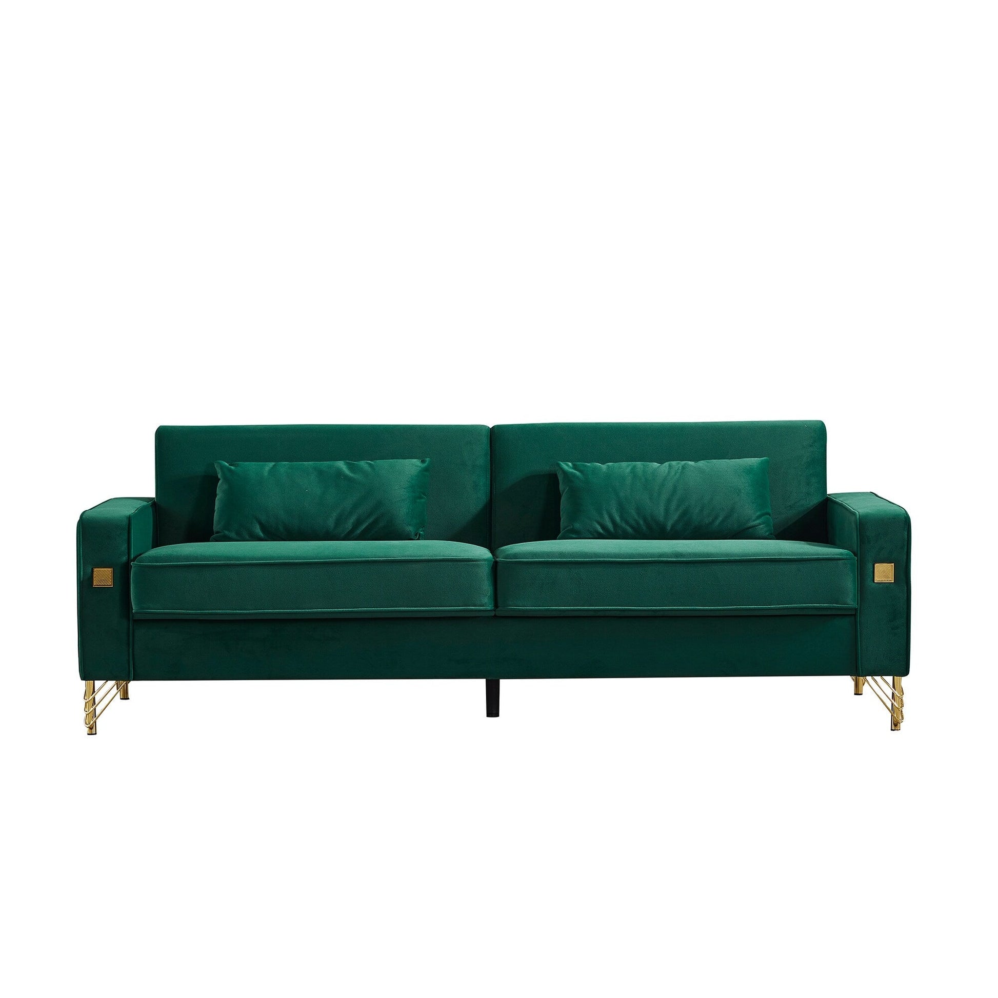 Divano moderno a 3 posti in velluto da 85,44 pollici con 2 cuscini, gambe in metallo dorato, eleganza senza tempo, schiuma ad alta densità