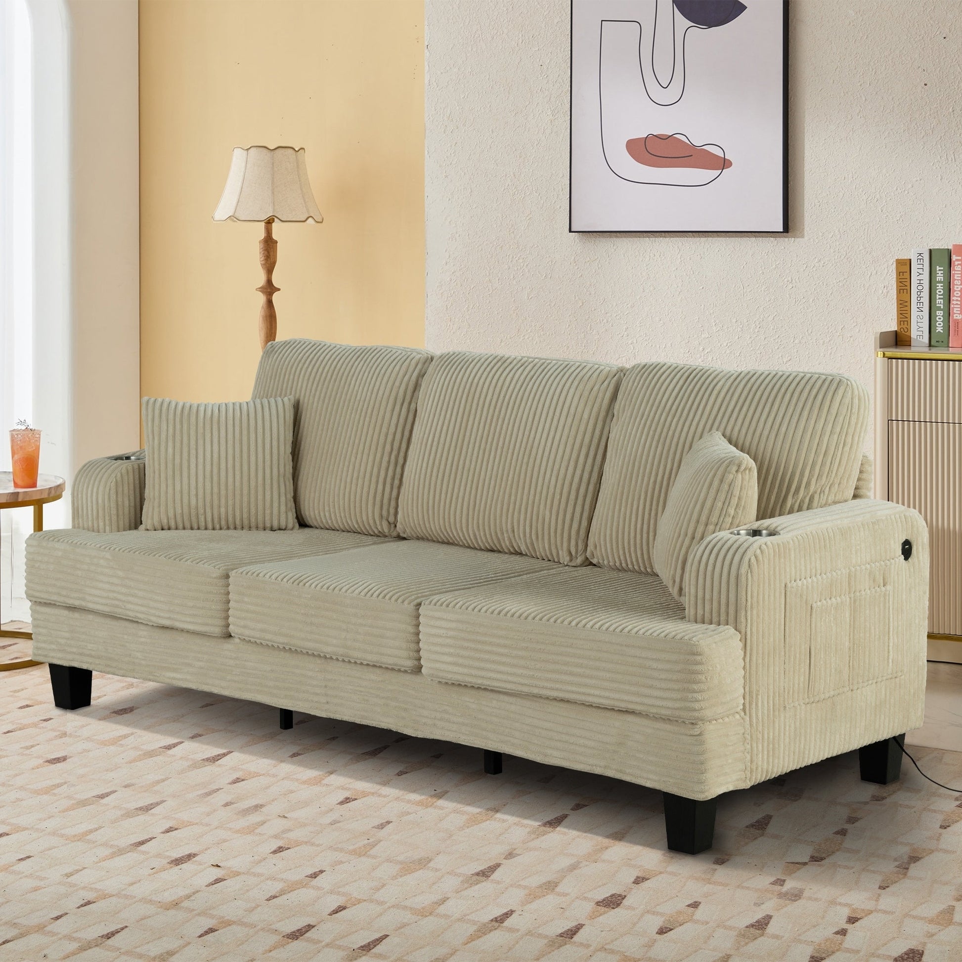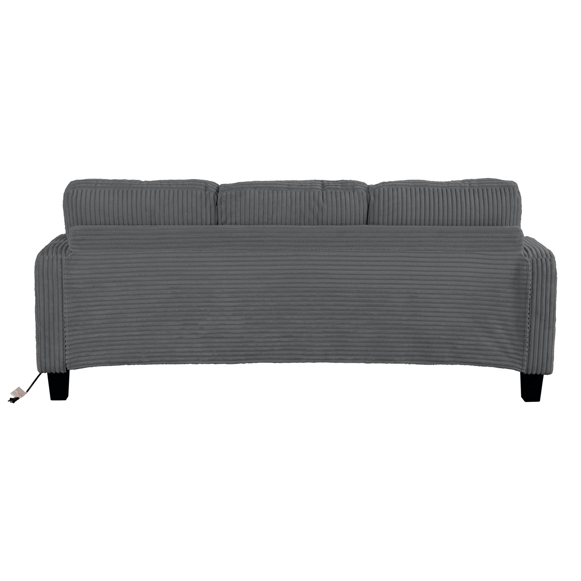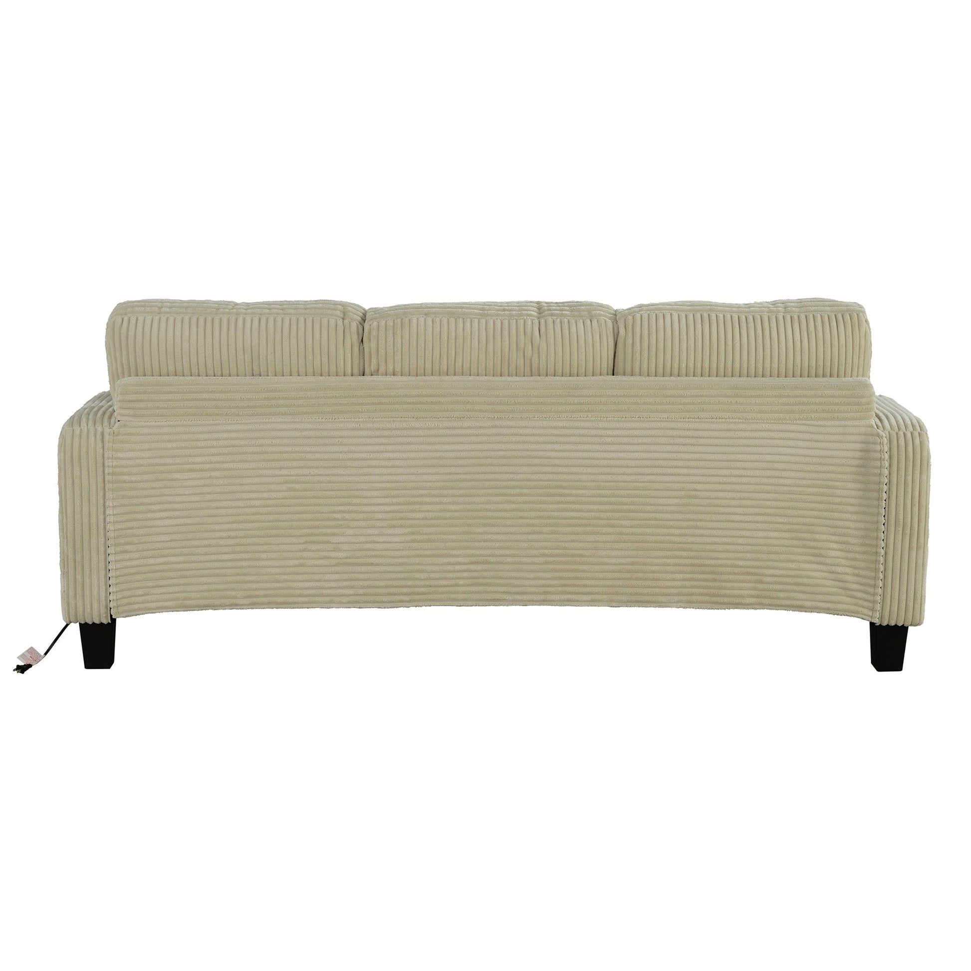 Divano moderno rettangolare in velluto a coste a 3 posti con USB e 2 cuscini