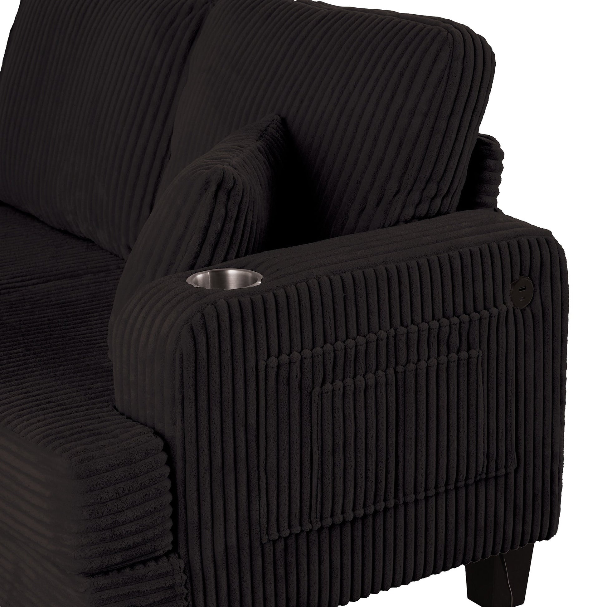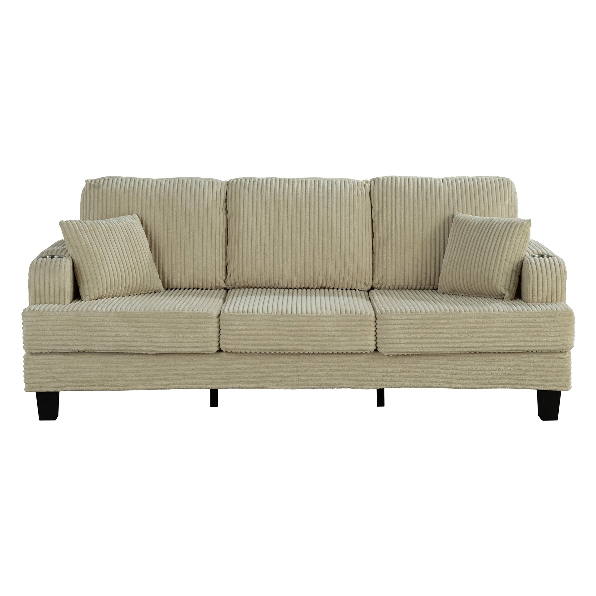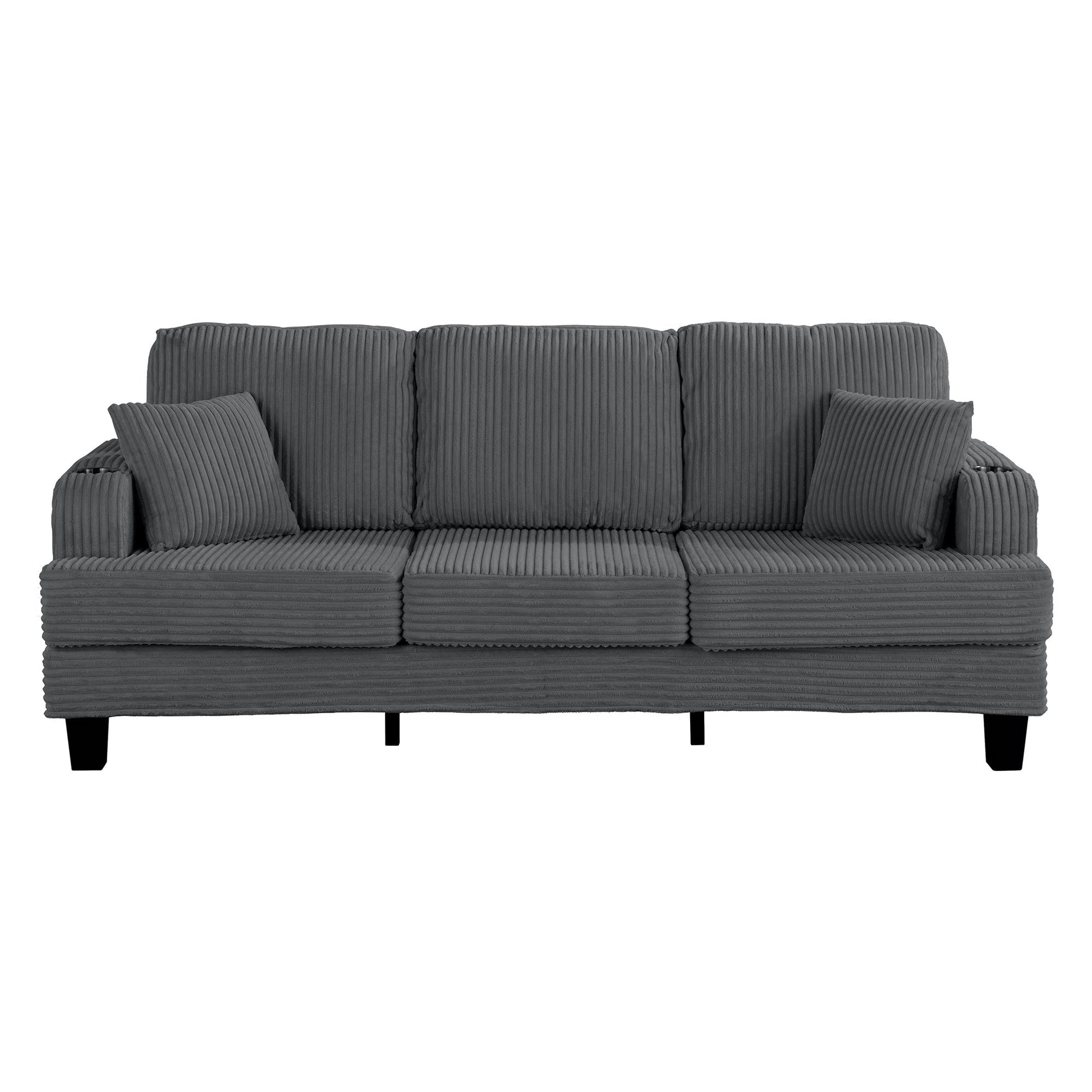 Divano moderno rettangolare in velluto a coste a 3 posti con USB e 2 cuscini